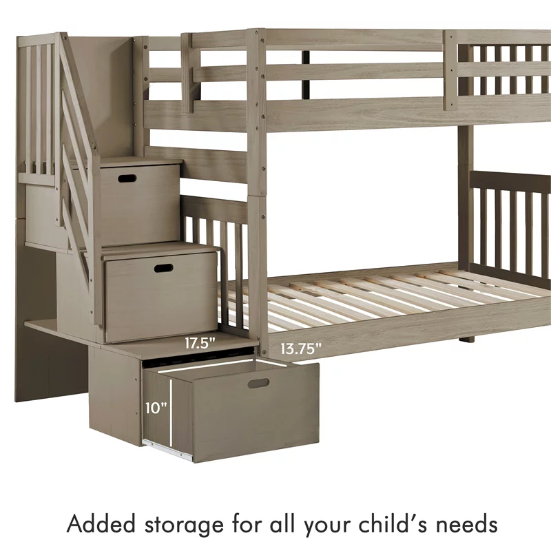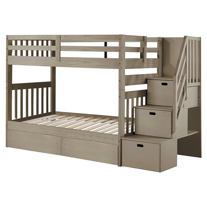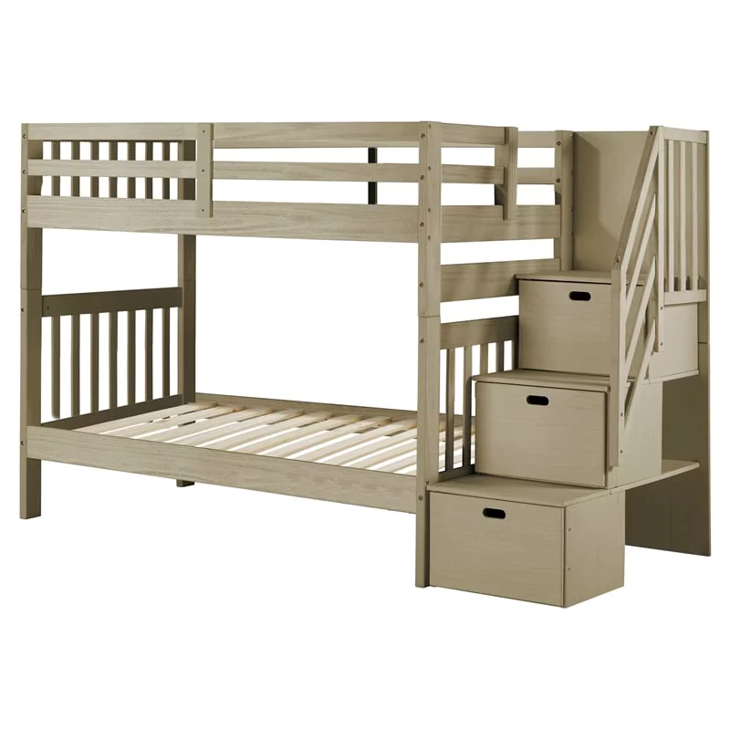 My Bed Now Everest Twin-over-Twin Solid Wood Bunk Bed with Staircase in Brown