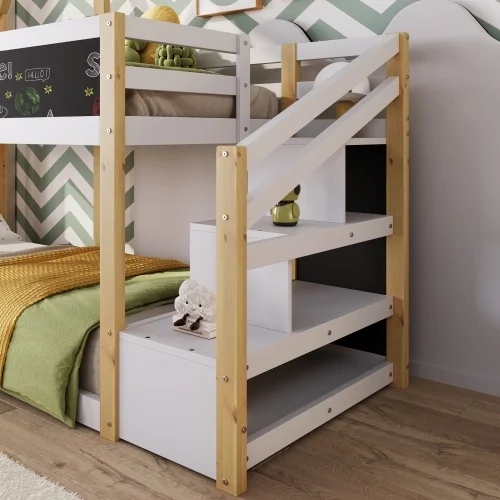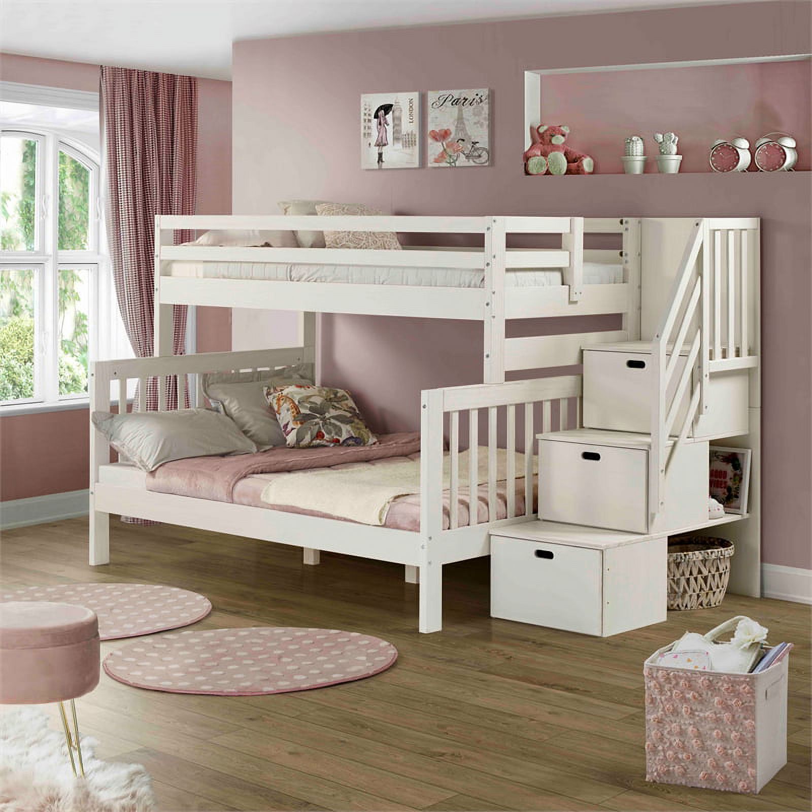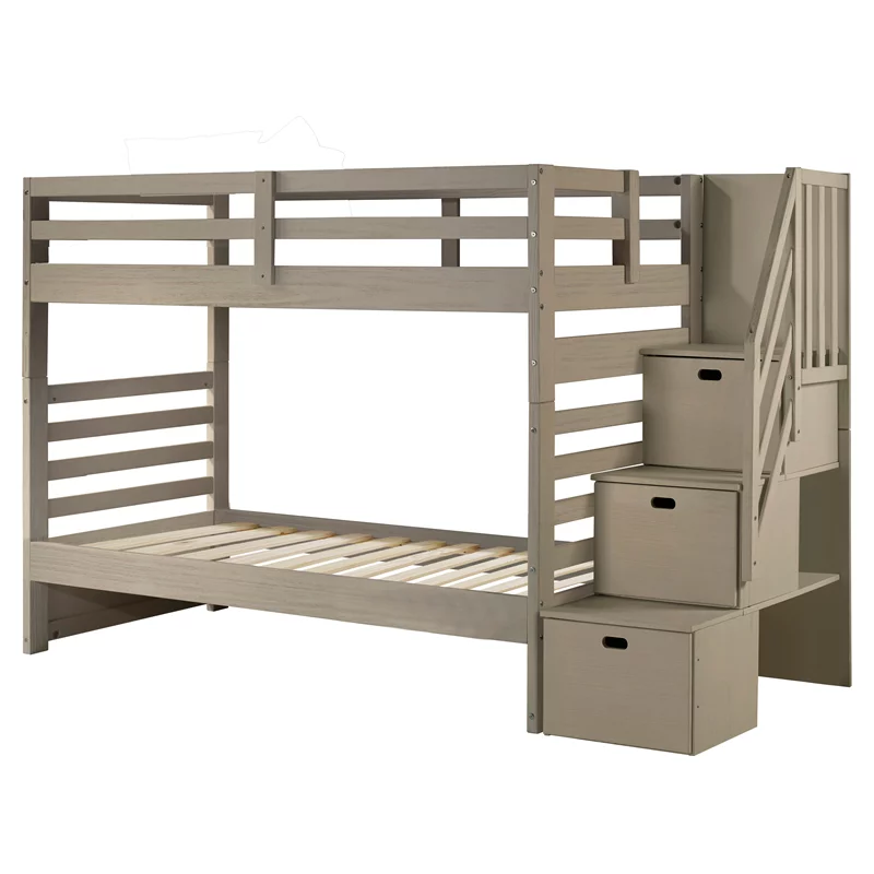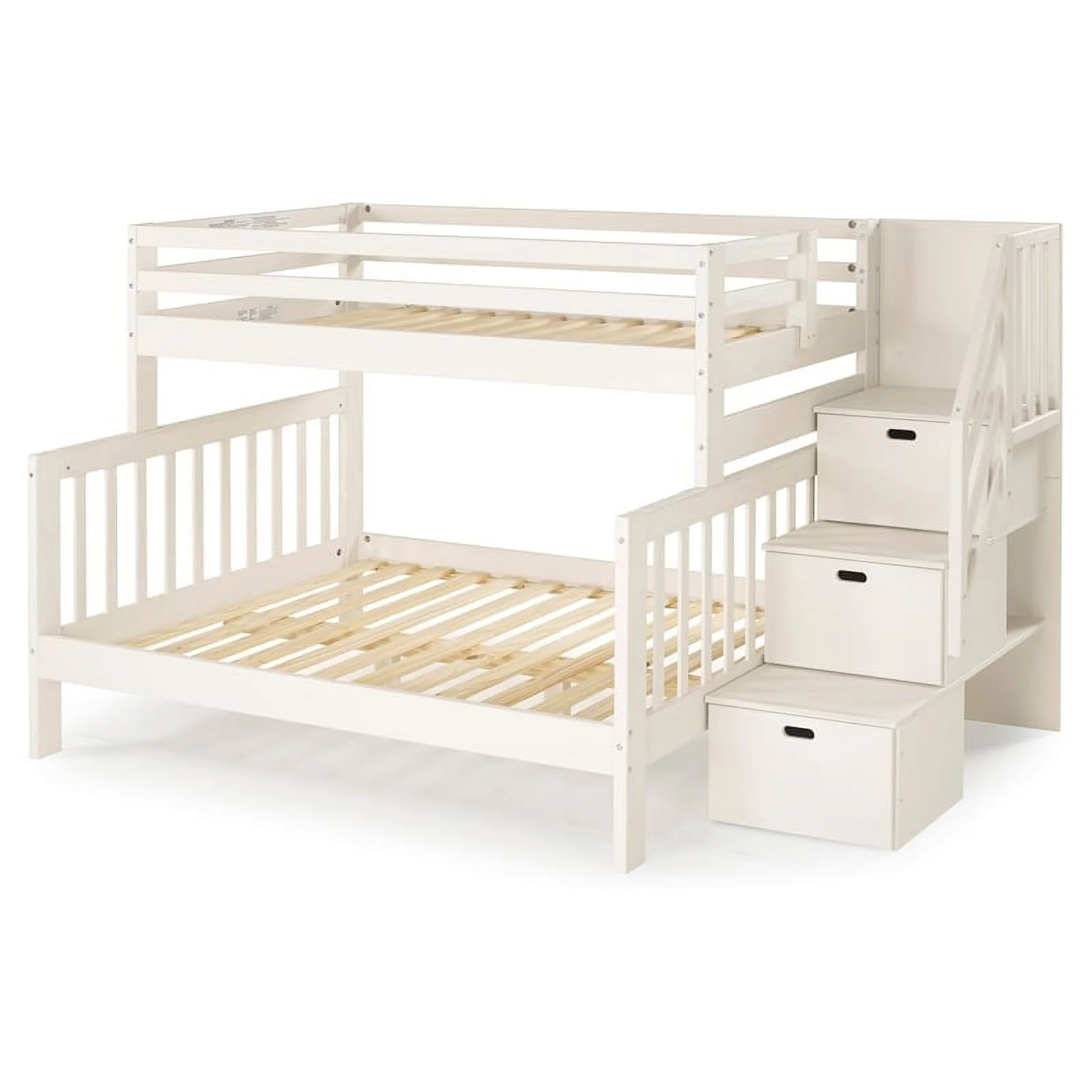 My Bed Now Acadia Twin-over-Full Wood Bunk Bed with Staircase in Mist Cream