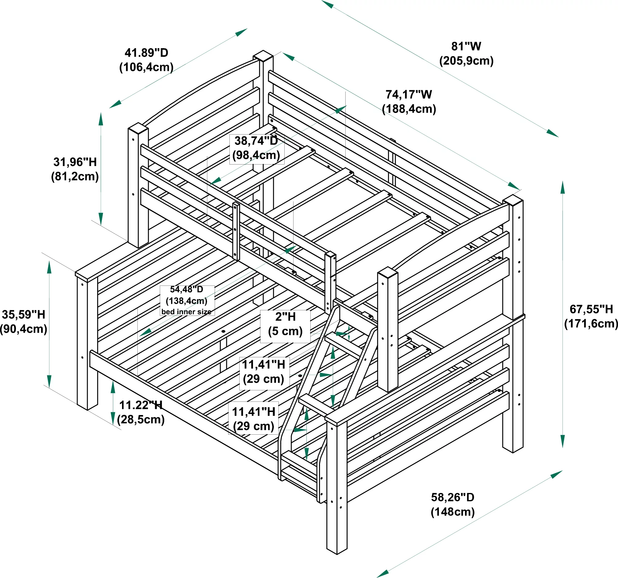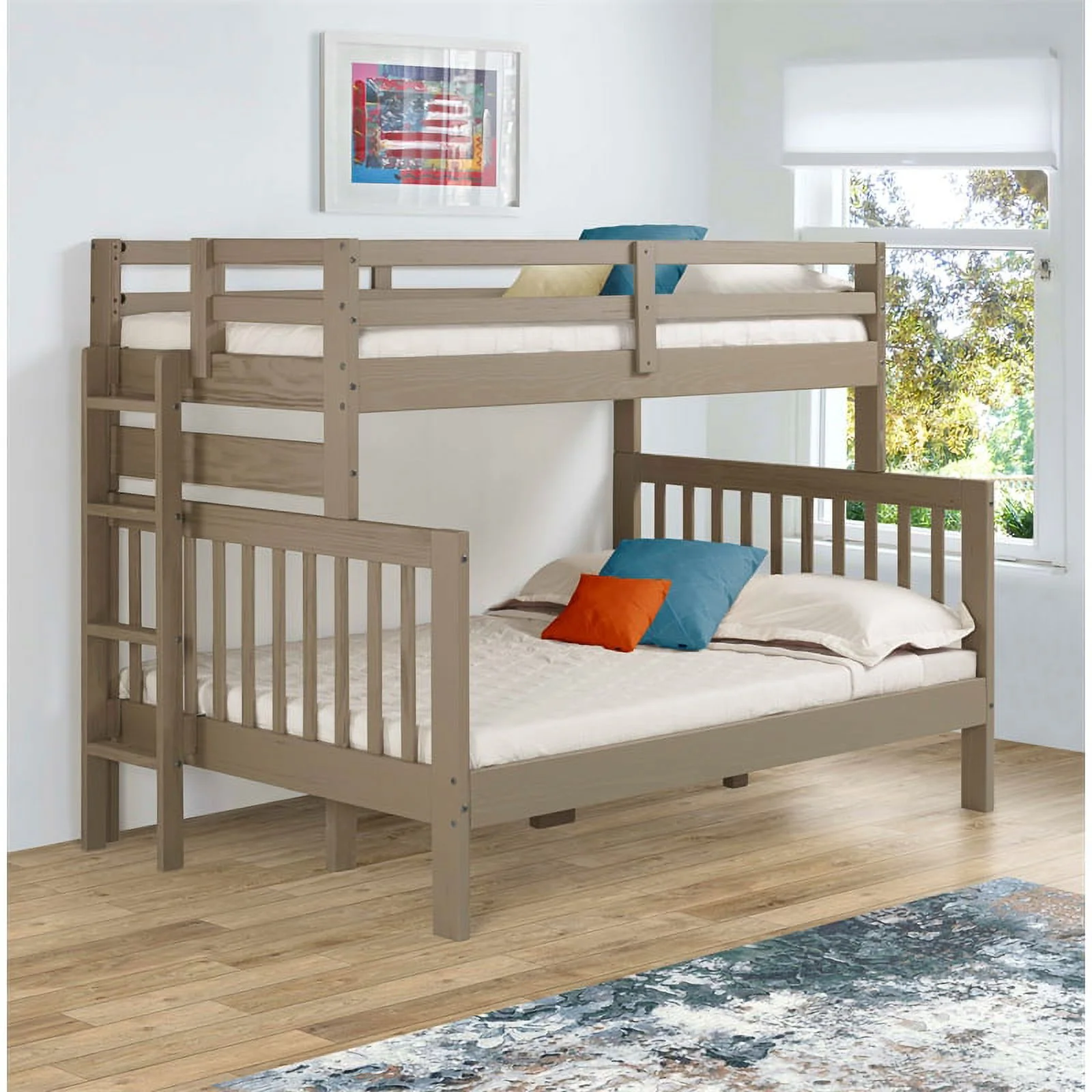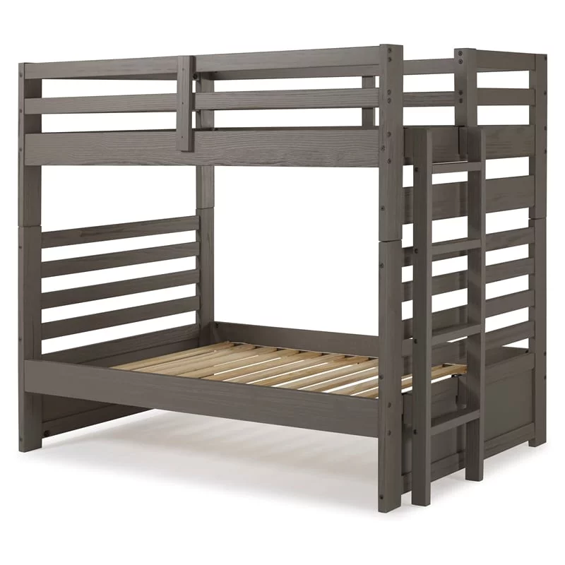 My Bed Now Acadia Twin-over-Full Solid Wood Bunk Bed with Ladder in Slate Brown