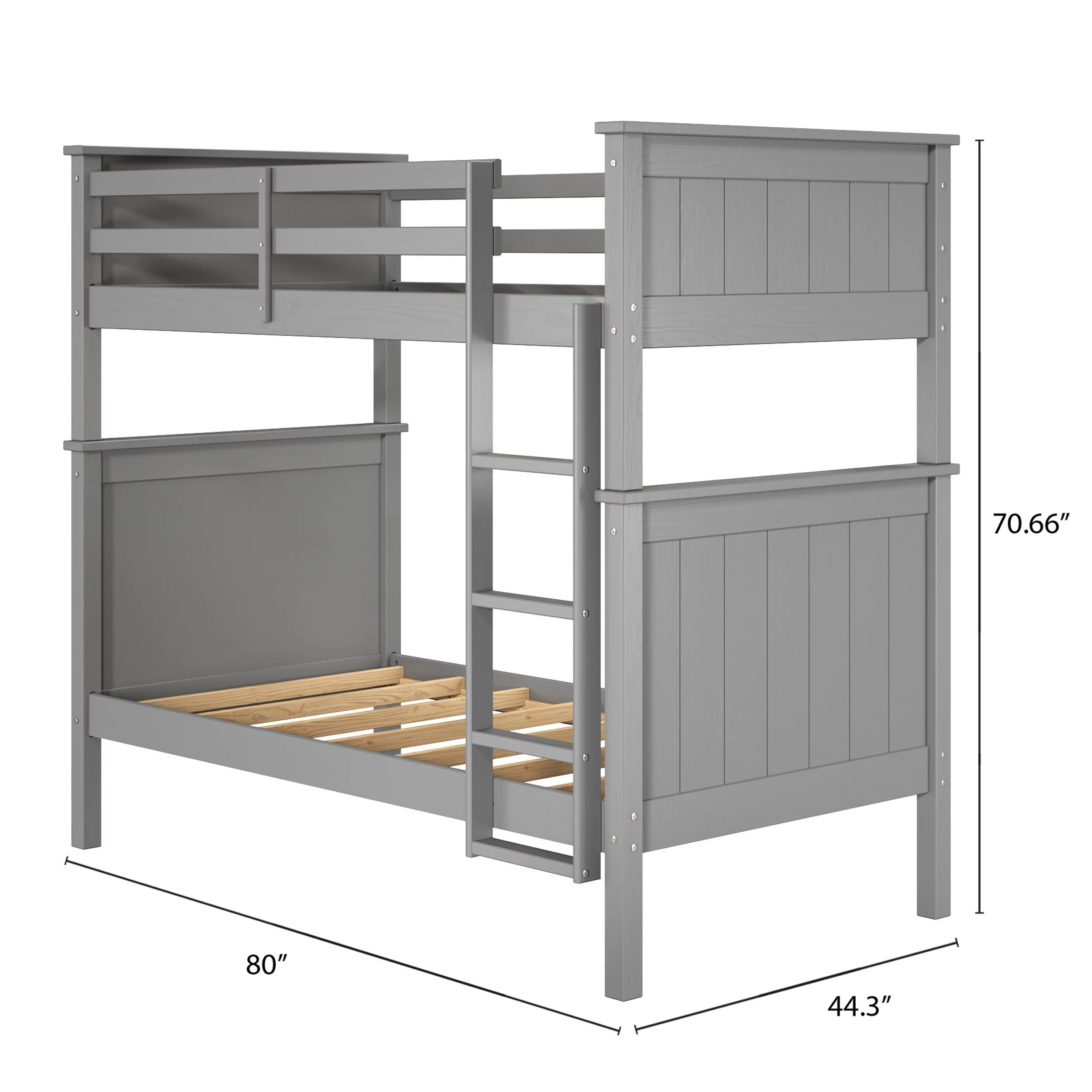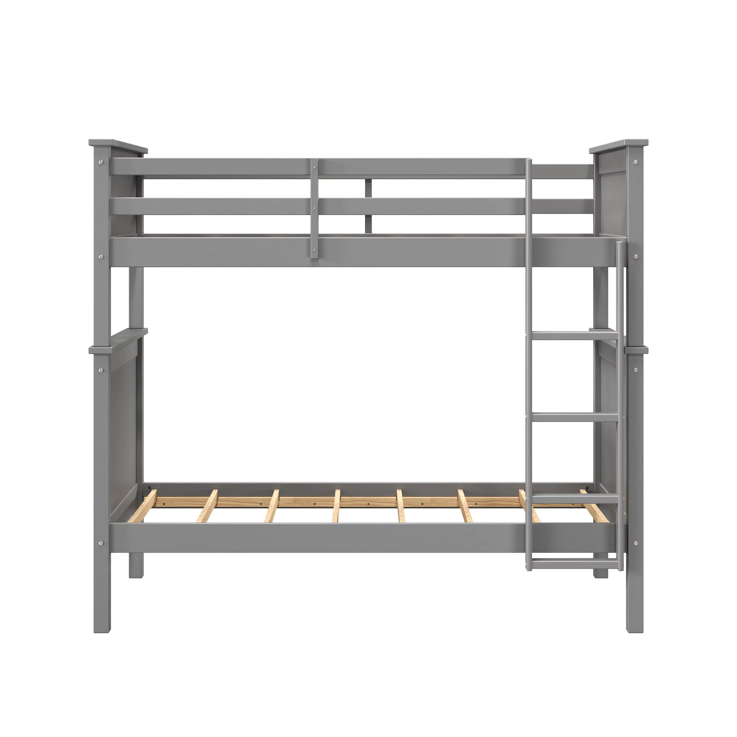 Linon Brigitte Kid's Twin over Twin Convertible Bunk Bed with Built-In Ladder, Gray