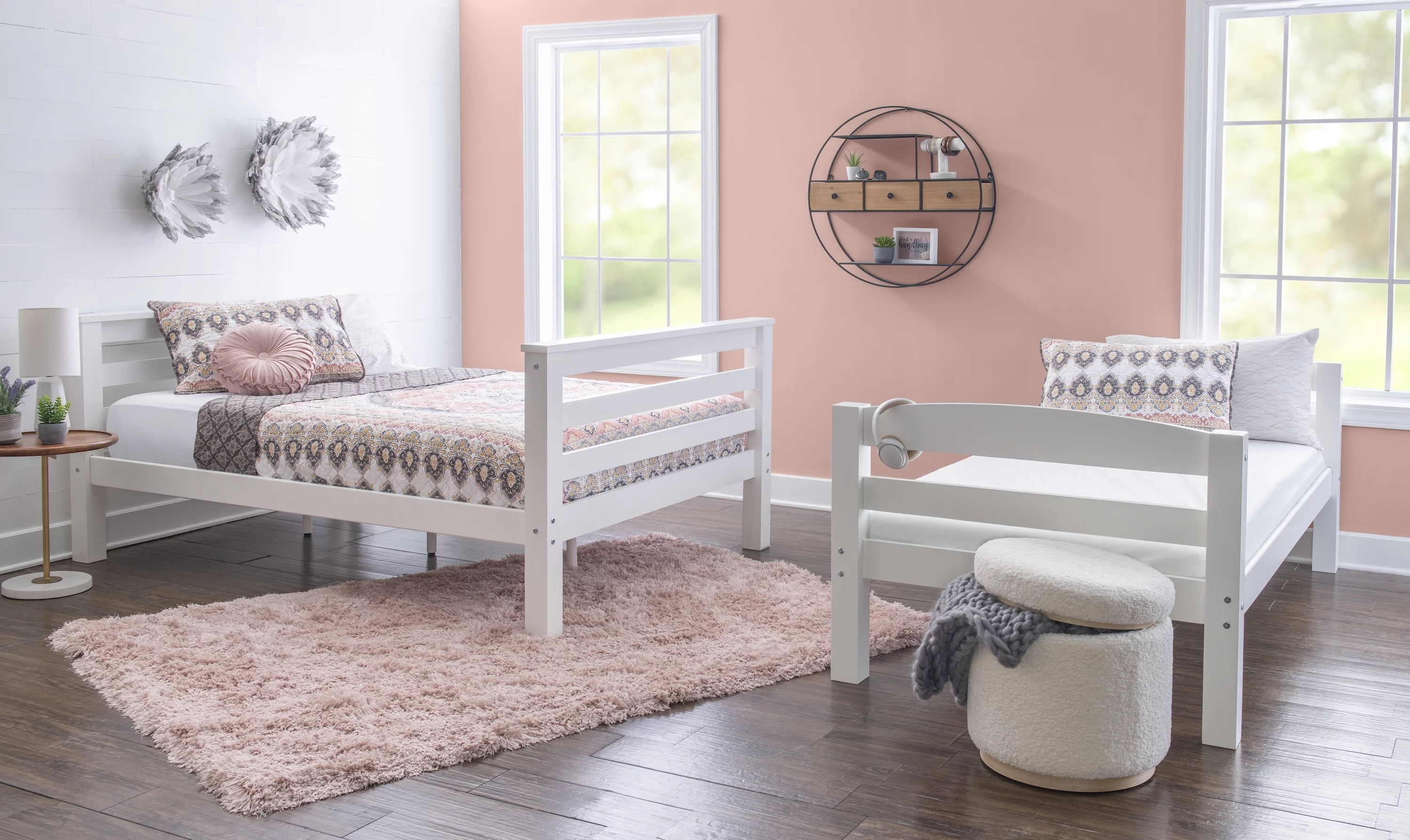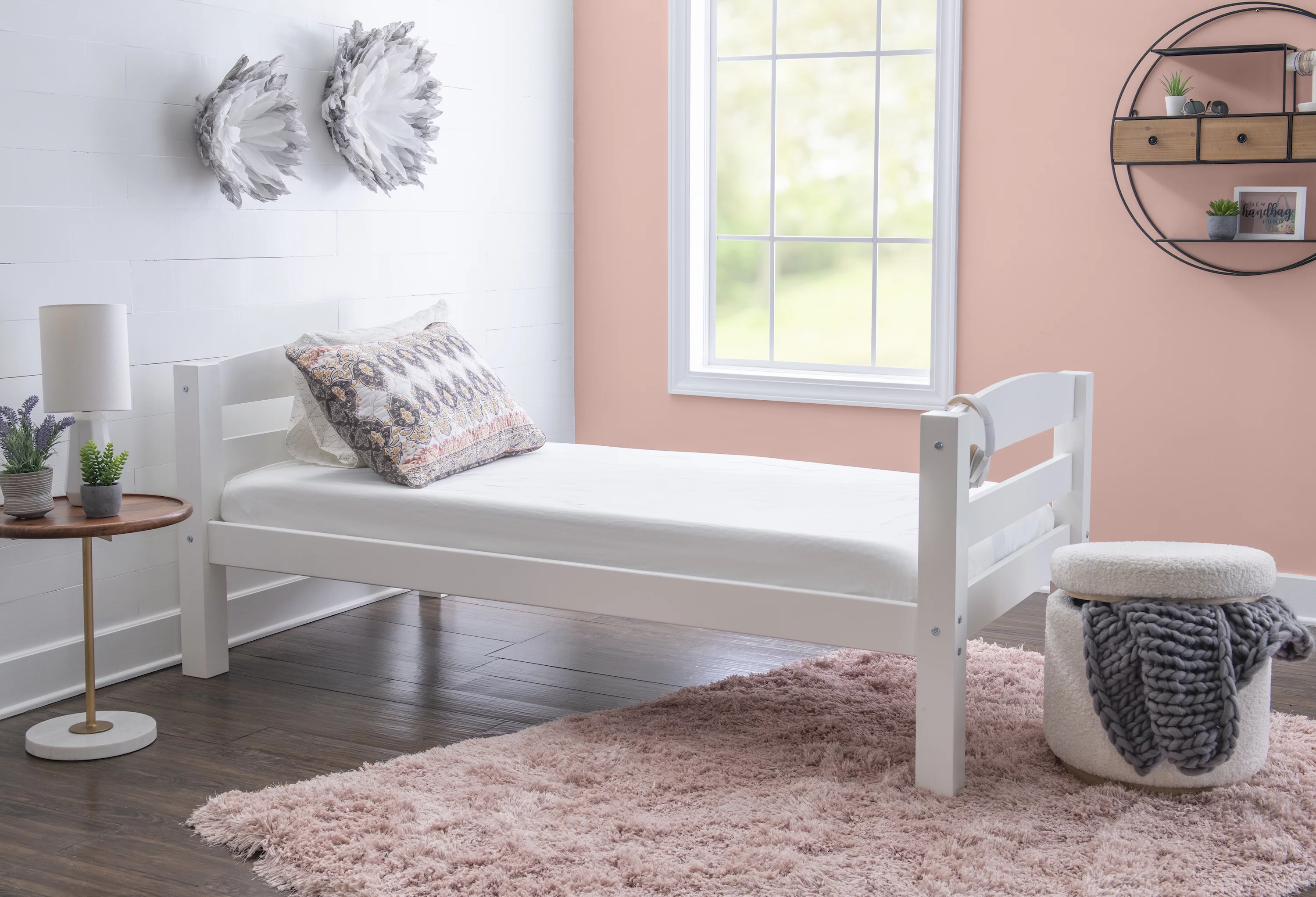 My Bed Now Everest Twin-over-Twin Solid Wood Bunk Bed with Ladder in White Mist
