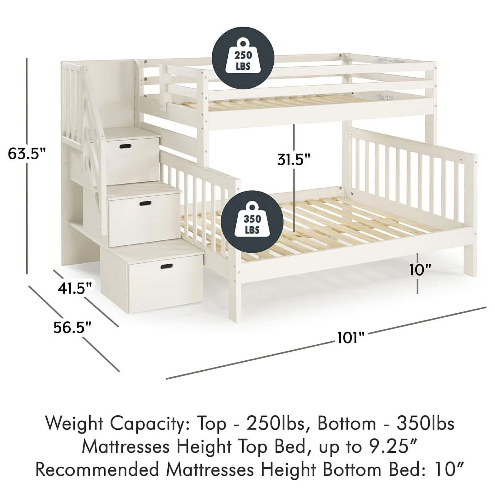 My Bed Now Everest Twin-over-Full 2-Drawer Wood Bunk Bed with Ladder in White