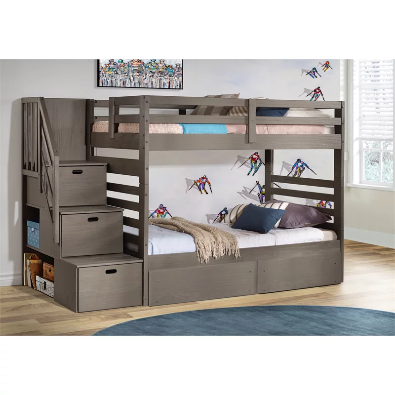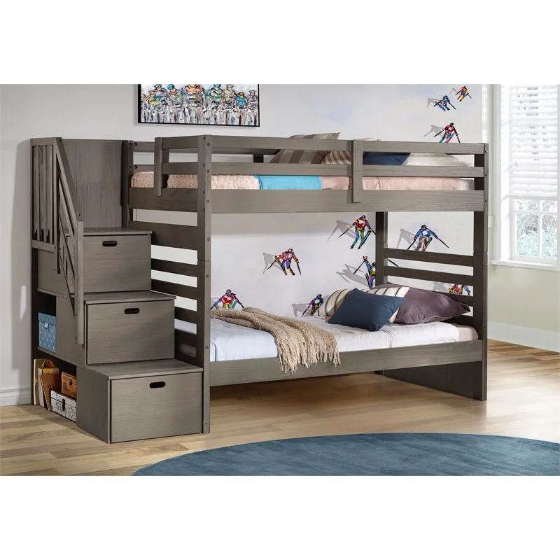 My Bed Now Everest Twin-over-Twin 2-Drawer Wood Bunk Bed w/ Staircase in Brown