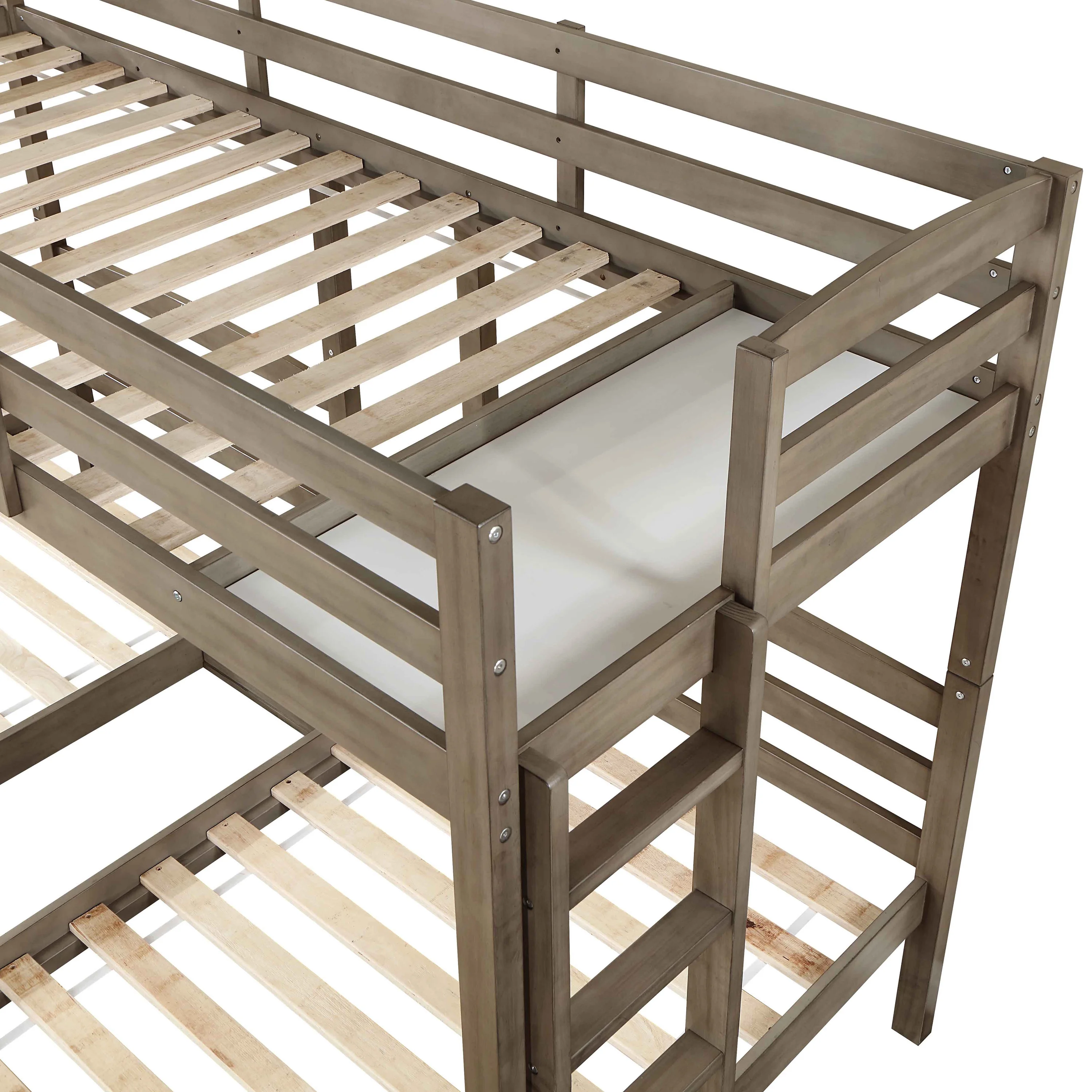 Furniture of America Roligt Wood Triple Twin Bunk Bed with USB, Gray