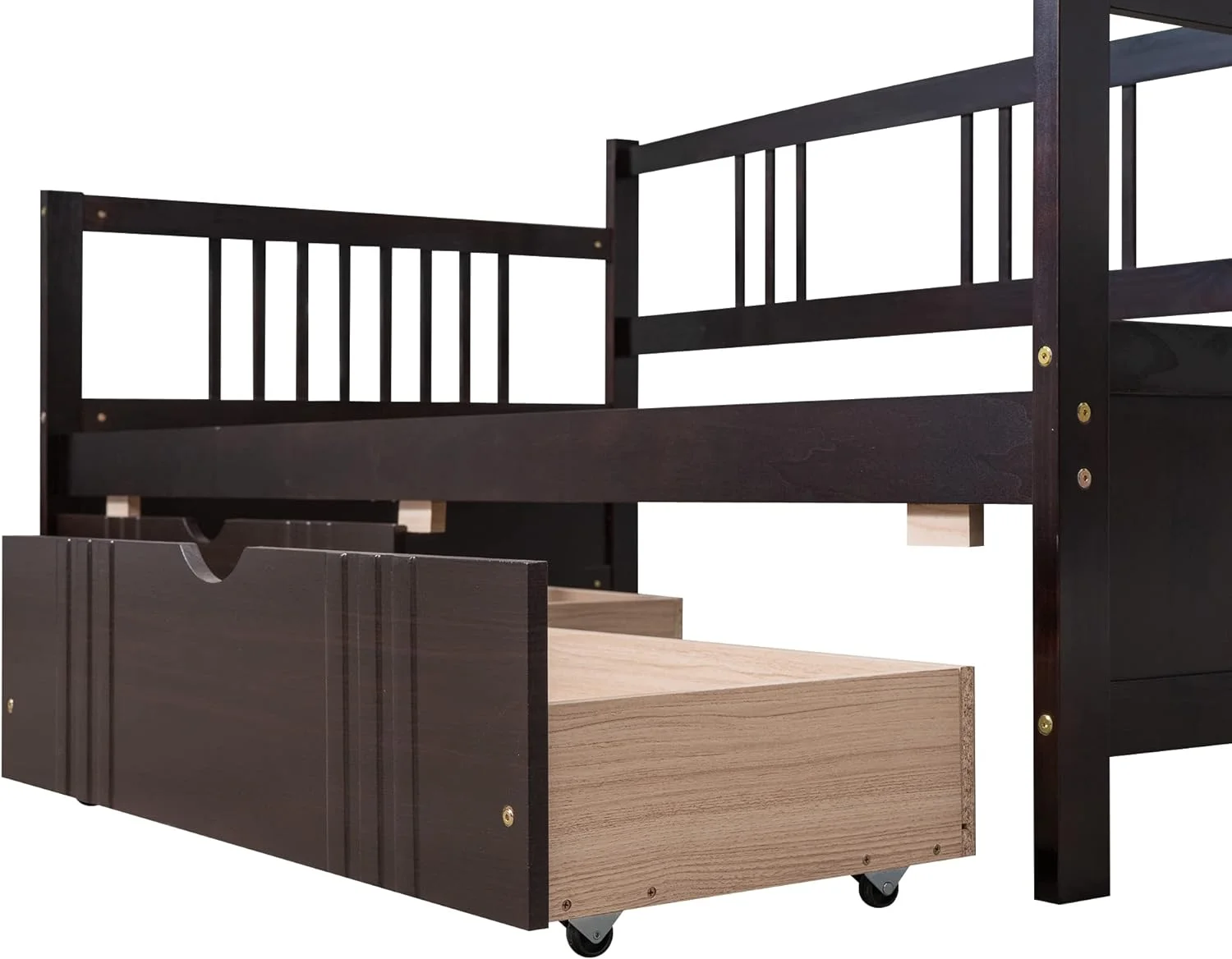Size Daybed, Wood Daybed With Drawers, Daybed With Storage Drawers , Teens Adults Dual Use Sofa Bed For Bedroom, Espresso ()