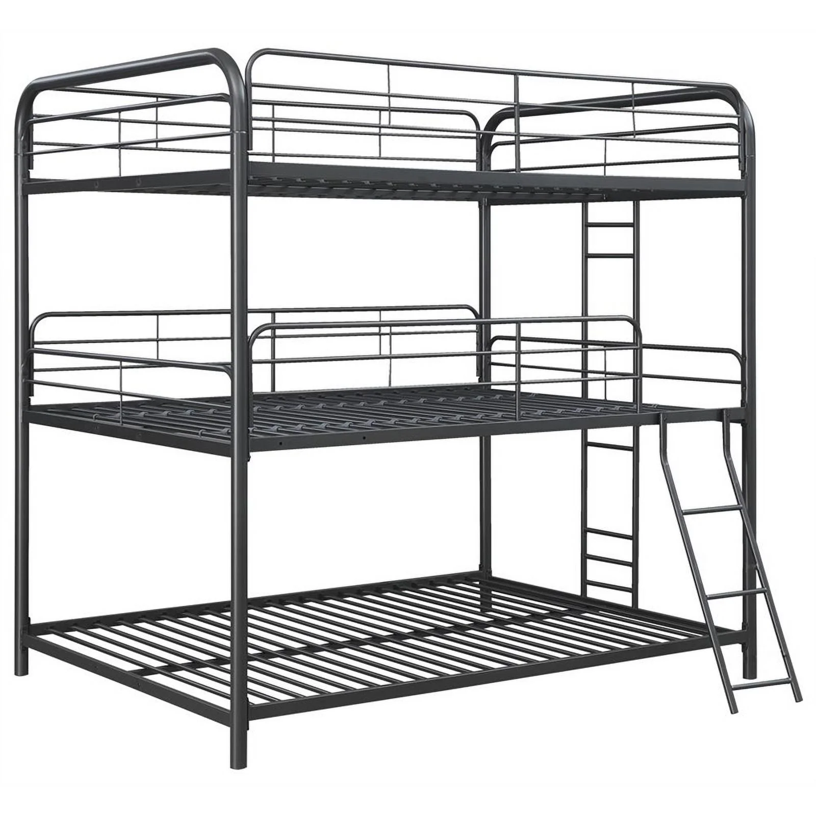 Pemberly Row Triple Full Farmhouse Metal Bunk Bed with Ladder Gunmetal