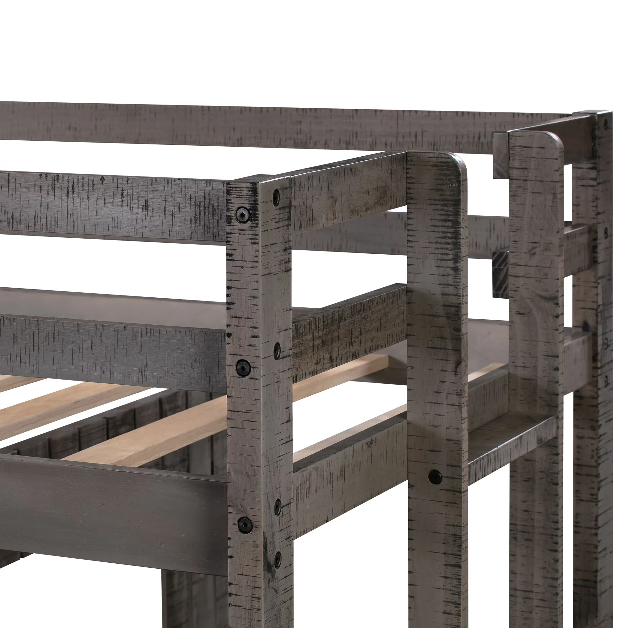 Wooden Twin Over Full Bunk Bed, Loft Bed with Playhouse, Farmhouse, Ladder and Guardrails , Gray( old sku: LT000027AAN )