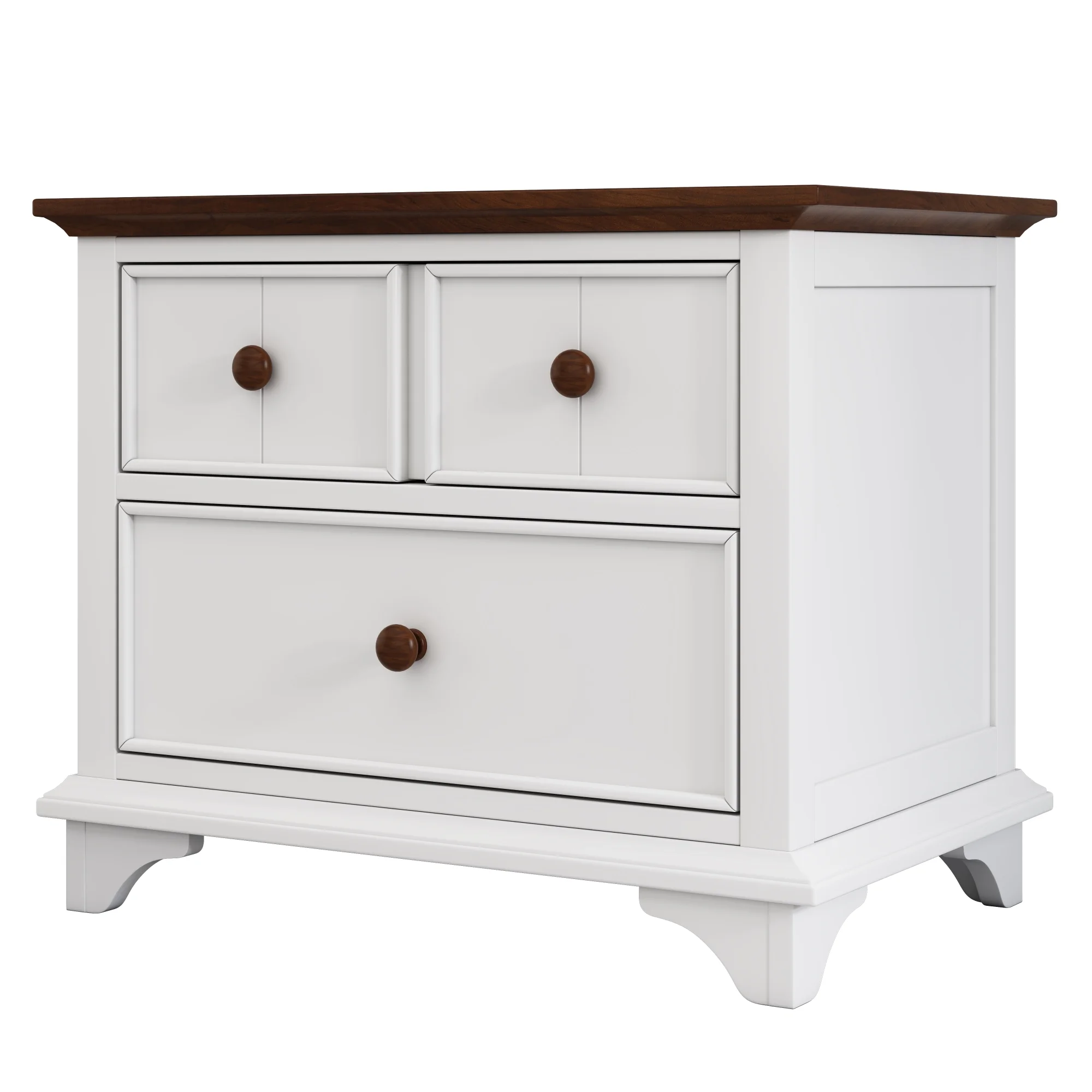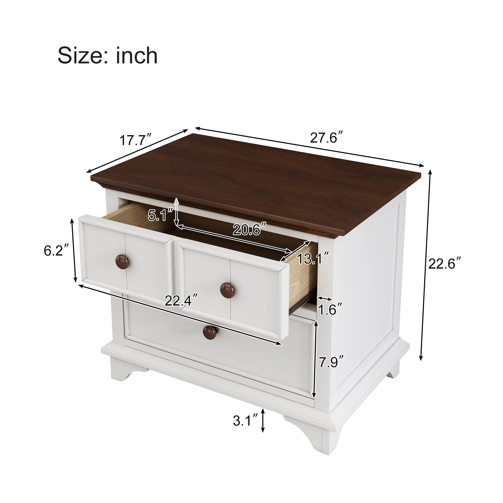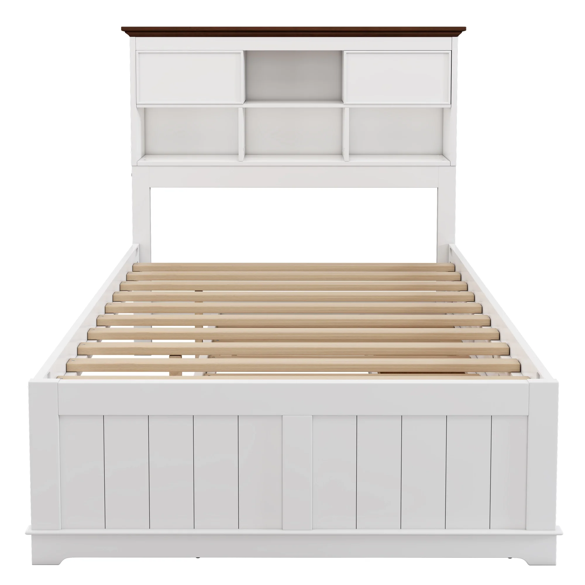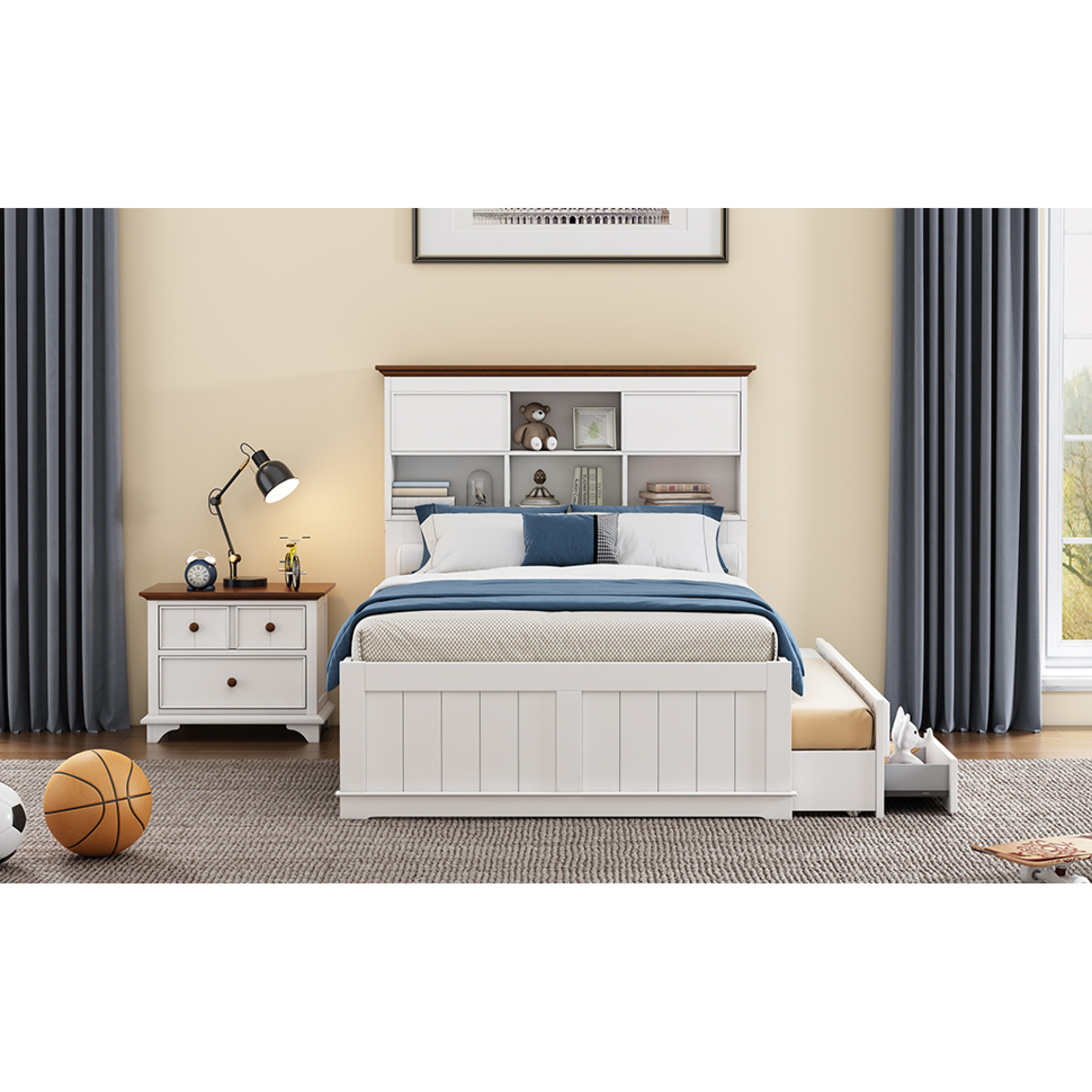 2 Pieces Wooden Captain Bedroom Set Full Bed with Trundle and Nightstand,White+Walnut