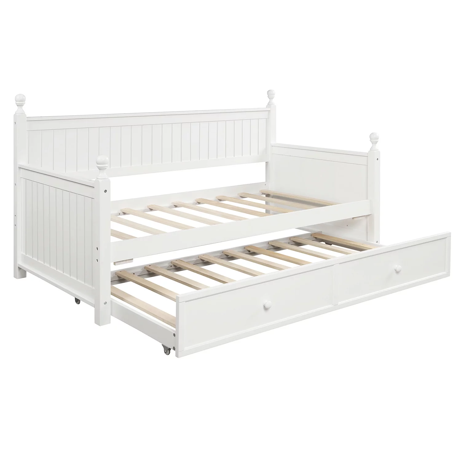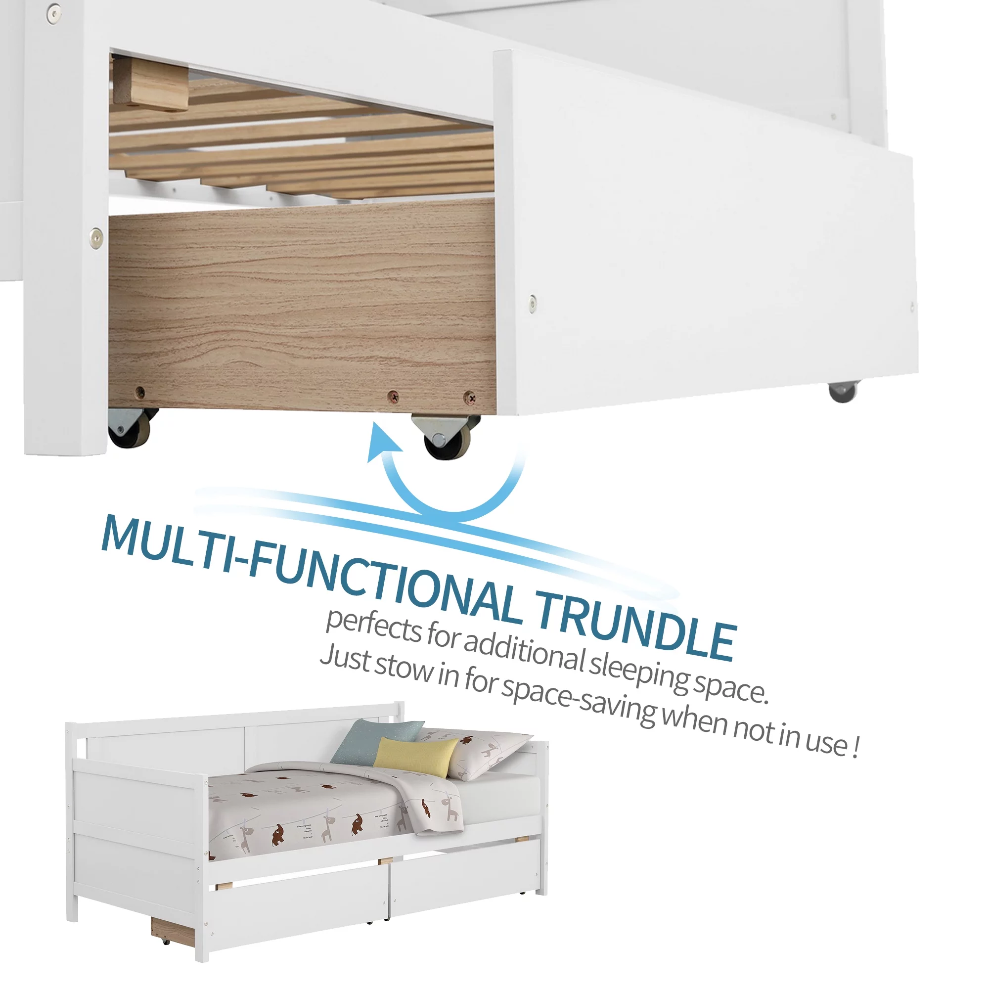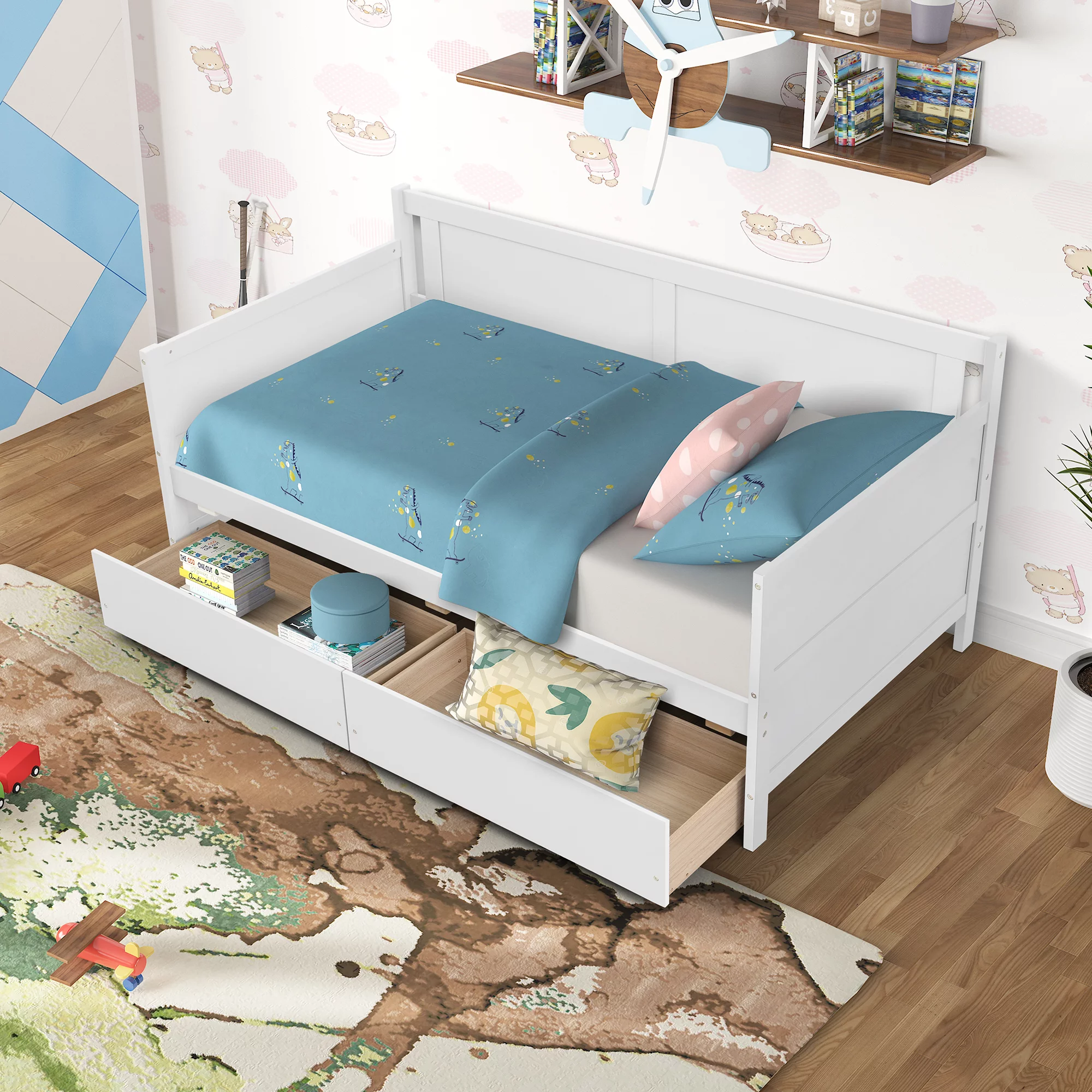 2 Pieces Wooden Captain Bedroom Set Full Bed with Trundle and Nightstand,White+Walnut