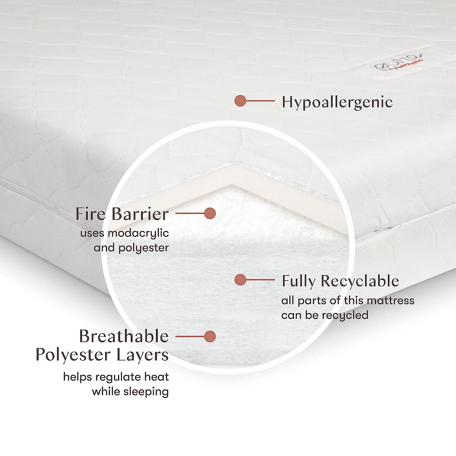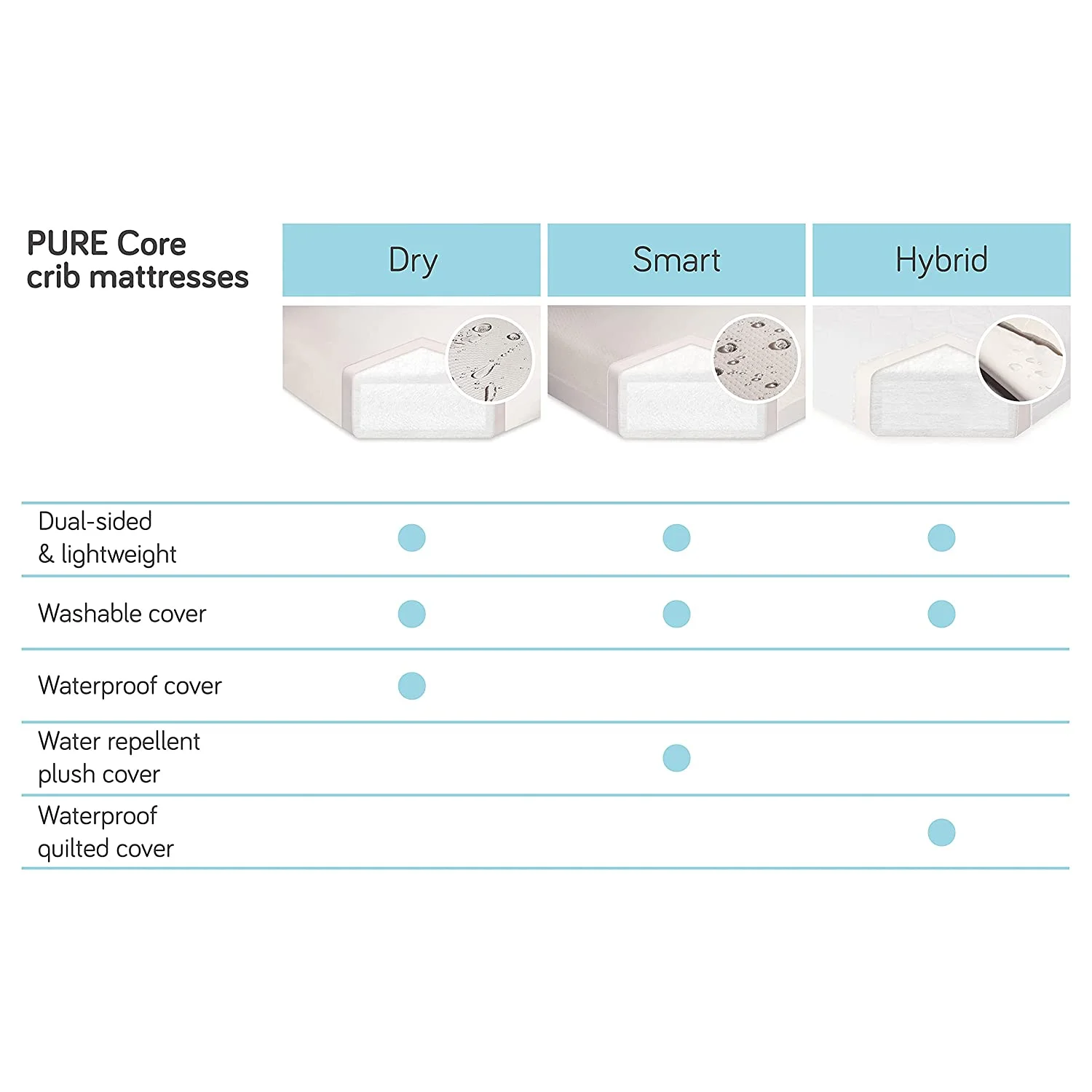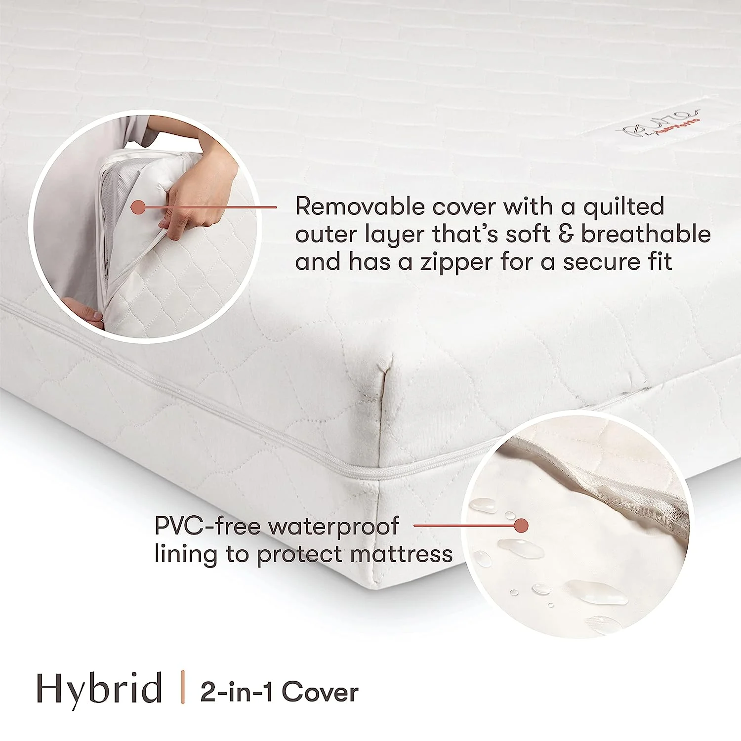 Babyletto Pure Core Crib Mattress with Hybrid Quilted Cover - 2-Stage White