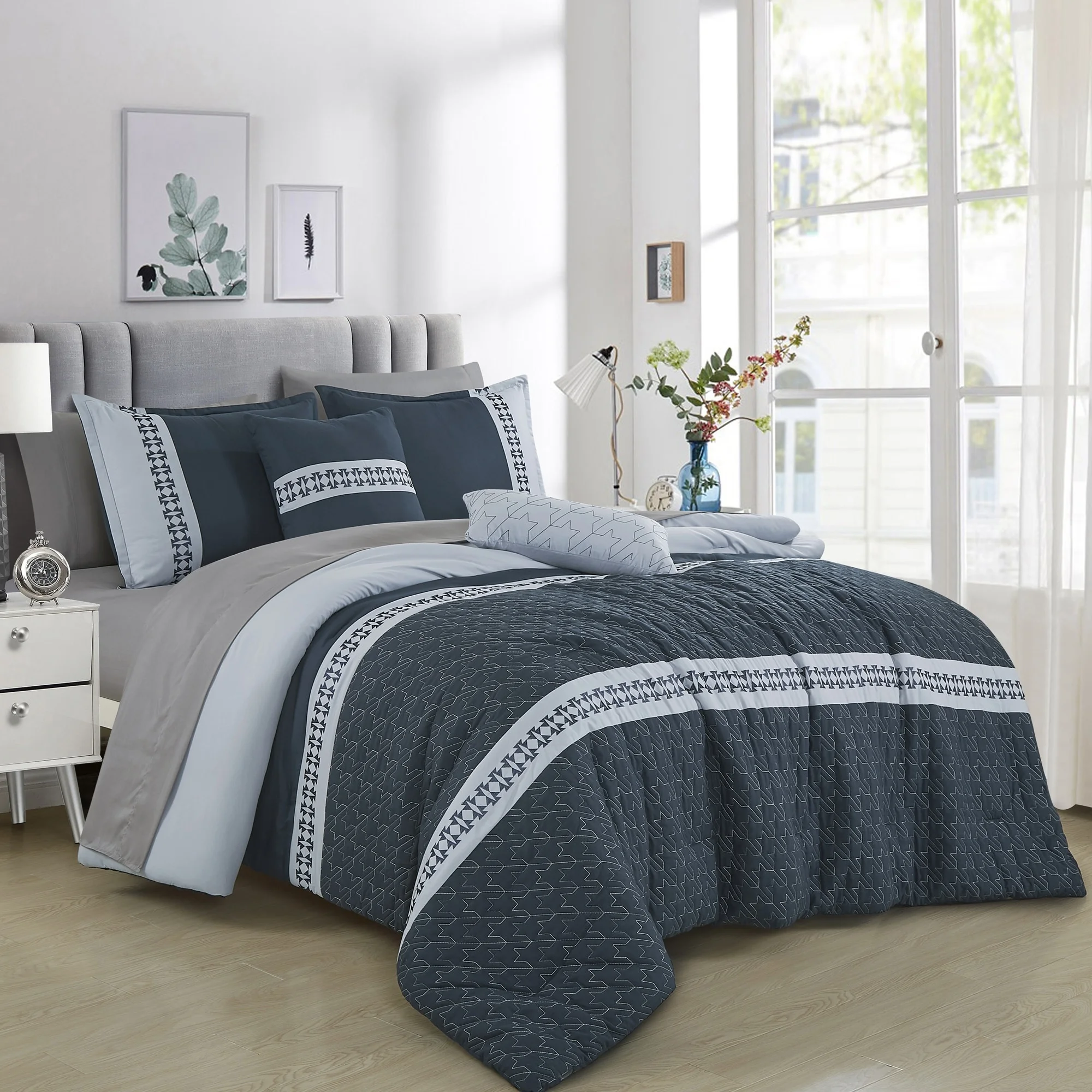 Chic Home 24 Piece Quilted Embroidered Complete Comforter Bed Set, Navy - Queen