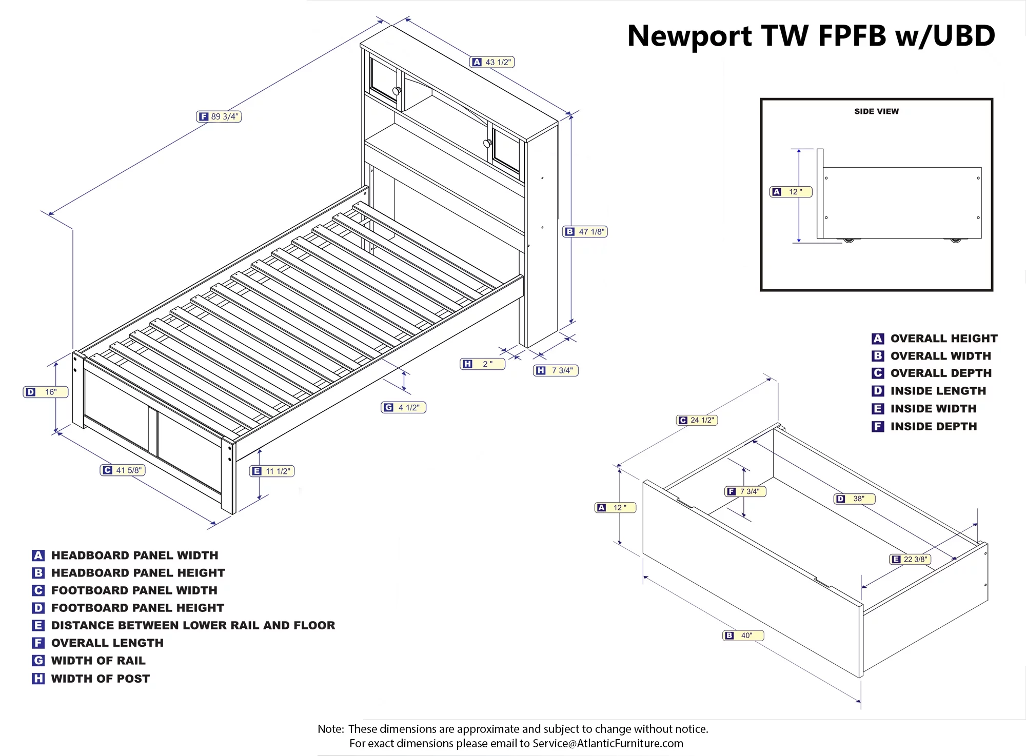 Newport Platform Bed with Flat Panel Foot Board and 2 Urban Bed Drawers, Multiple Sizes, Multiple Colors
