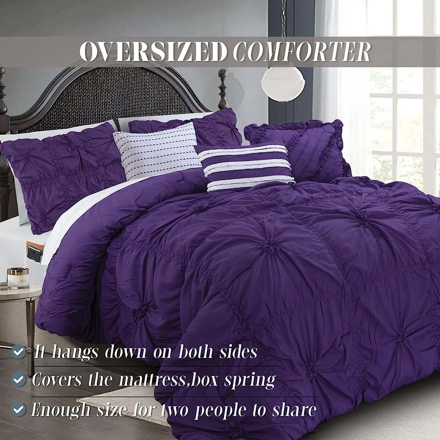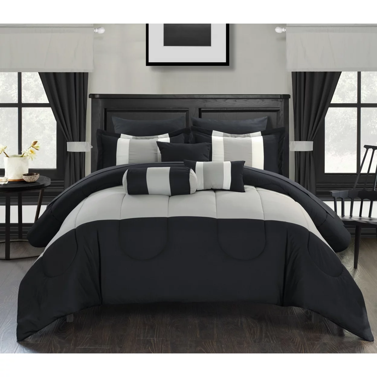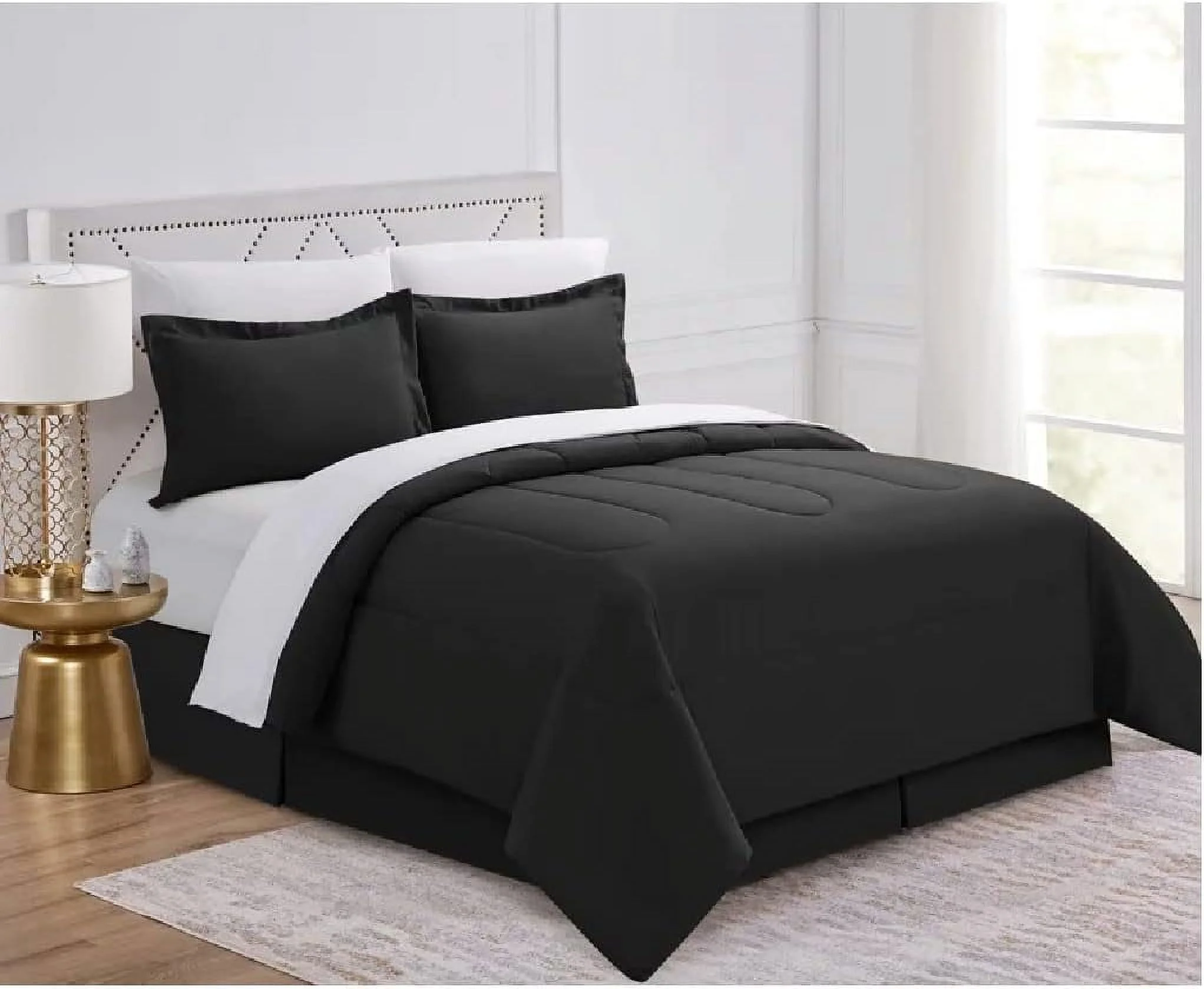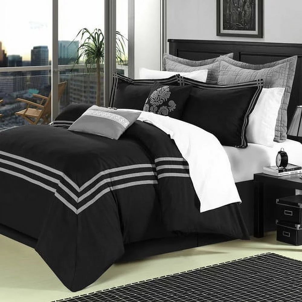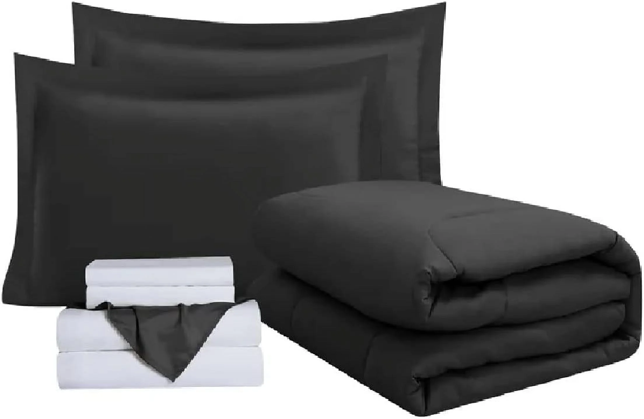 8 Piece Bed In A Bag Comforter Set Soft Complete Set Includes Bed Sheet (Queen, Black)