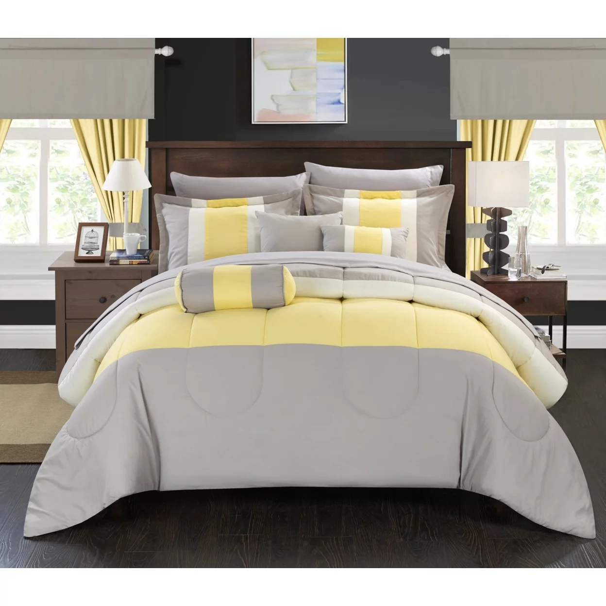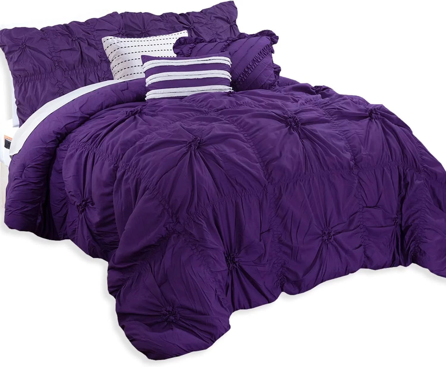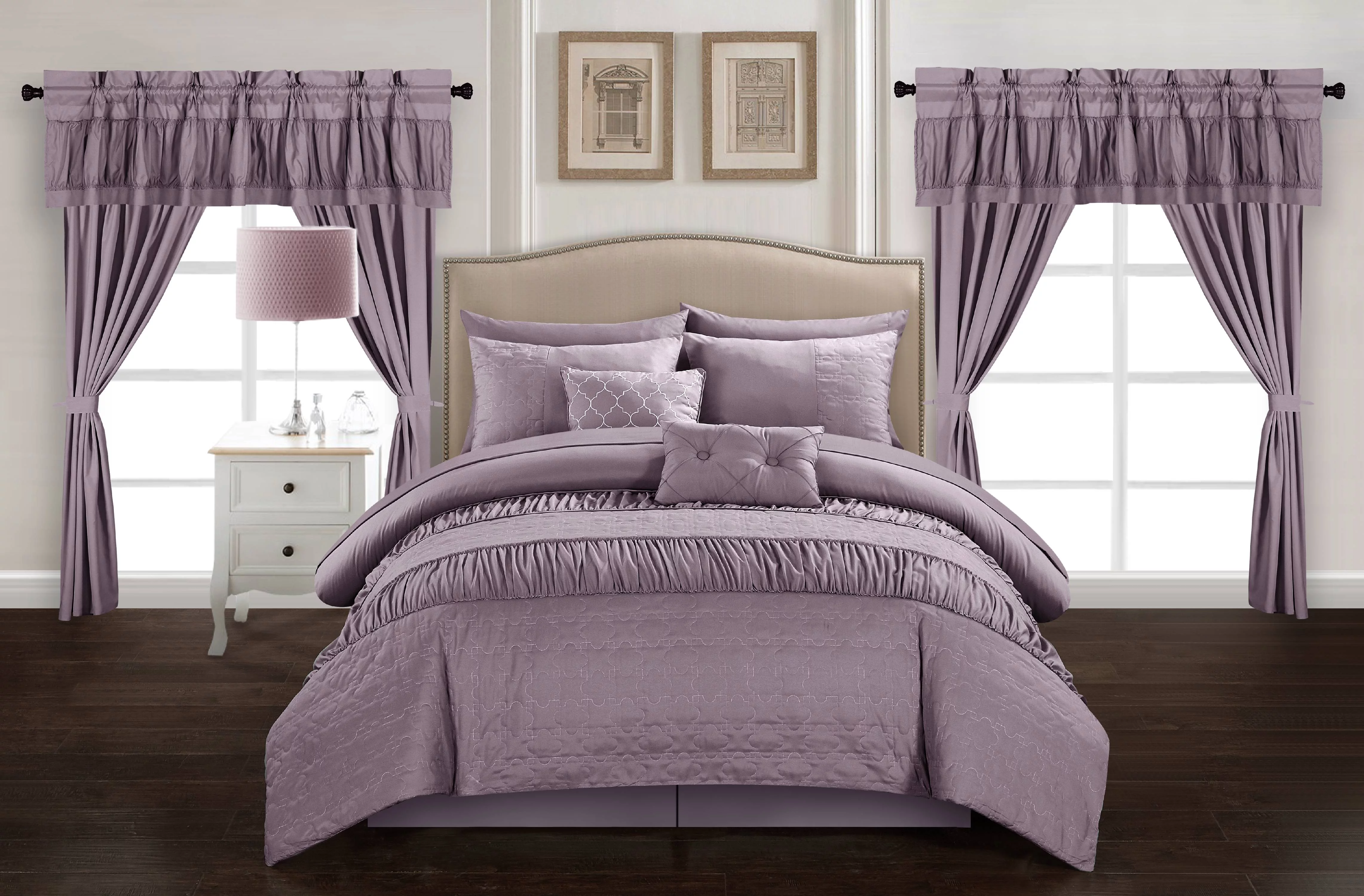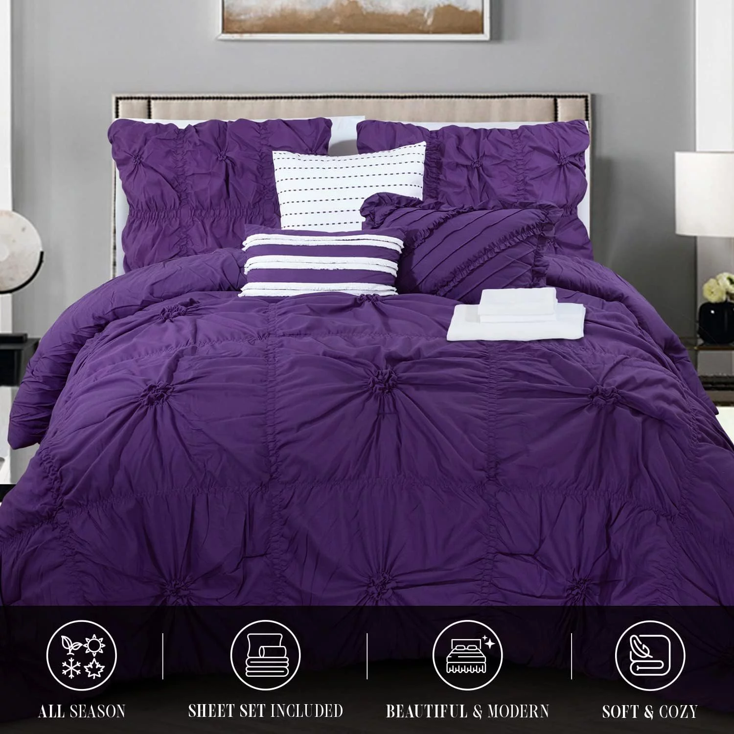 Penelope Pleated & Ruffled Bed in a Bag Comforter Set with Sheets - Grey - Queen - 10 Piece
