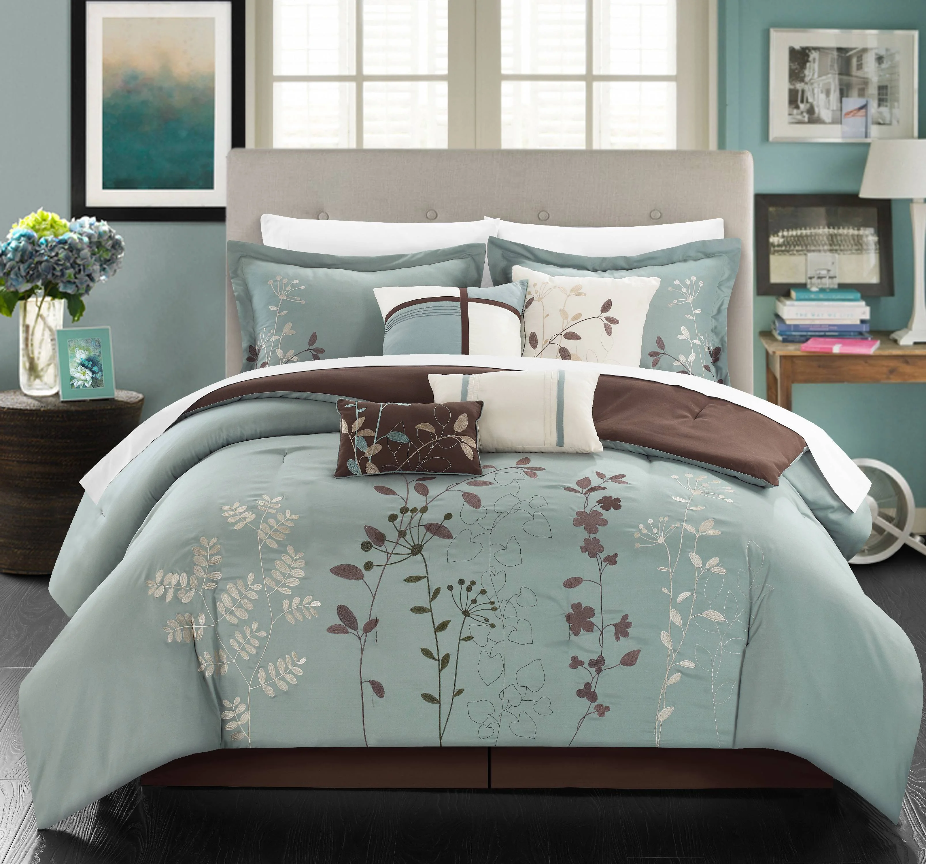 Chic Home Ruth Ruffled 12 Pieces Comforter Bed In A Bag Set - Queen 90x92, Turquoise