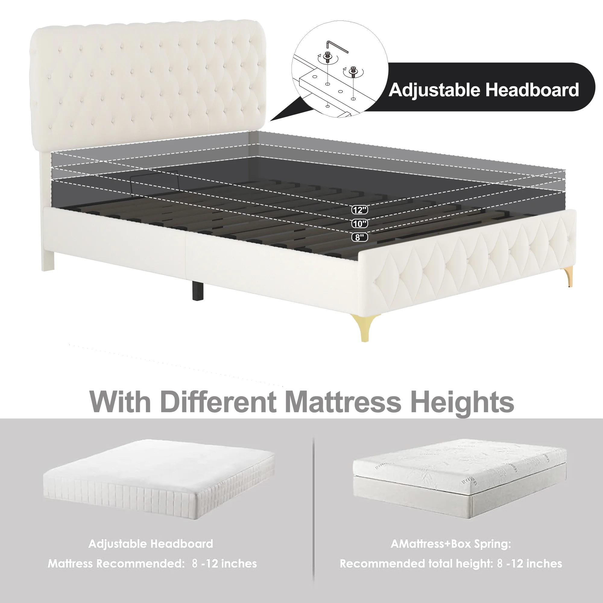 Bestco Adjustable Queen Size Electric Bed Frame with Head Foot Elevating Base