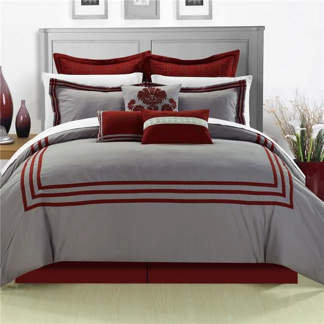 Chic Home 126-154-Q-11-US Cosmo Red Queen 12 Piece Bed in a Bag Embroidered Comforter Set with 4 Piece Sheet Set
