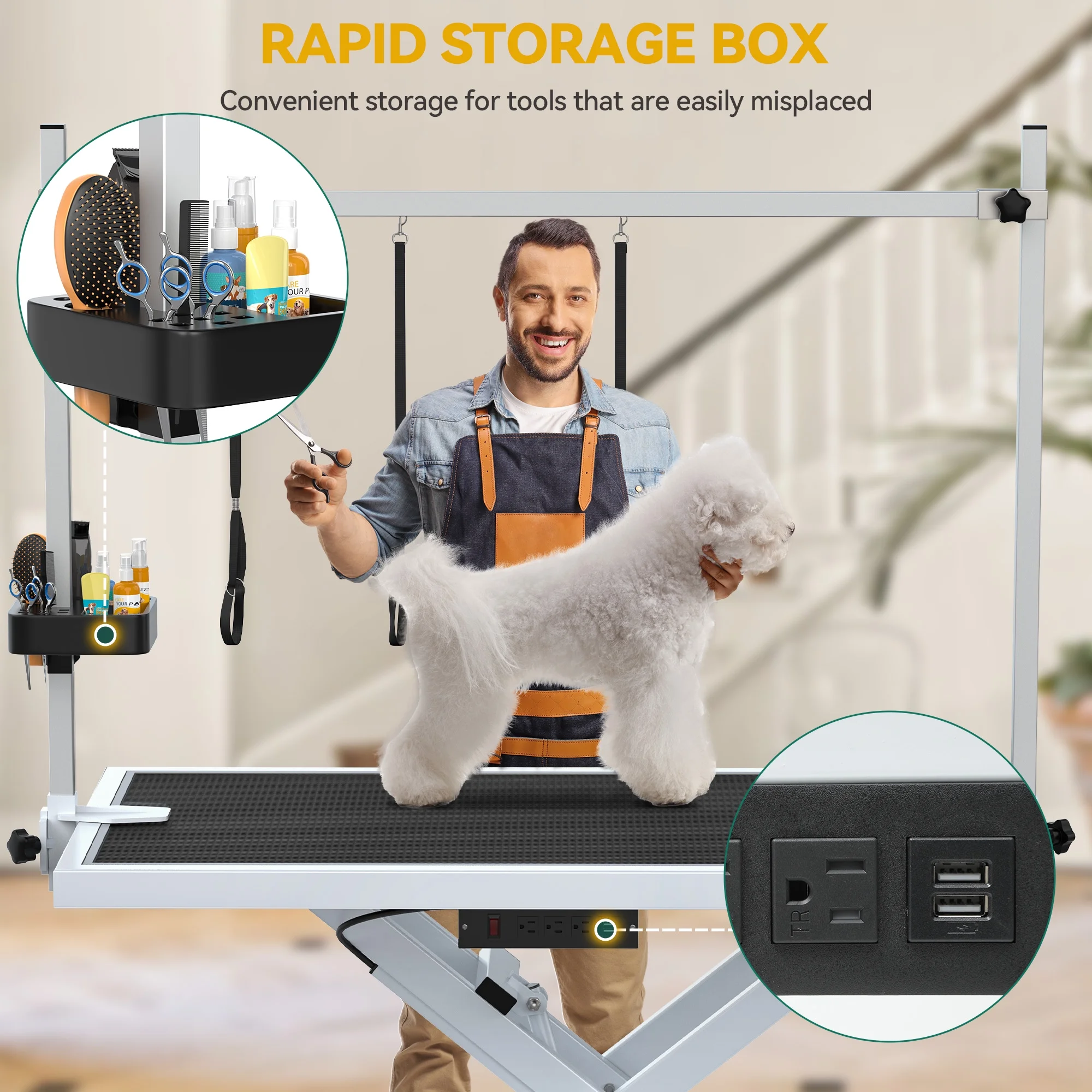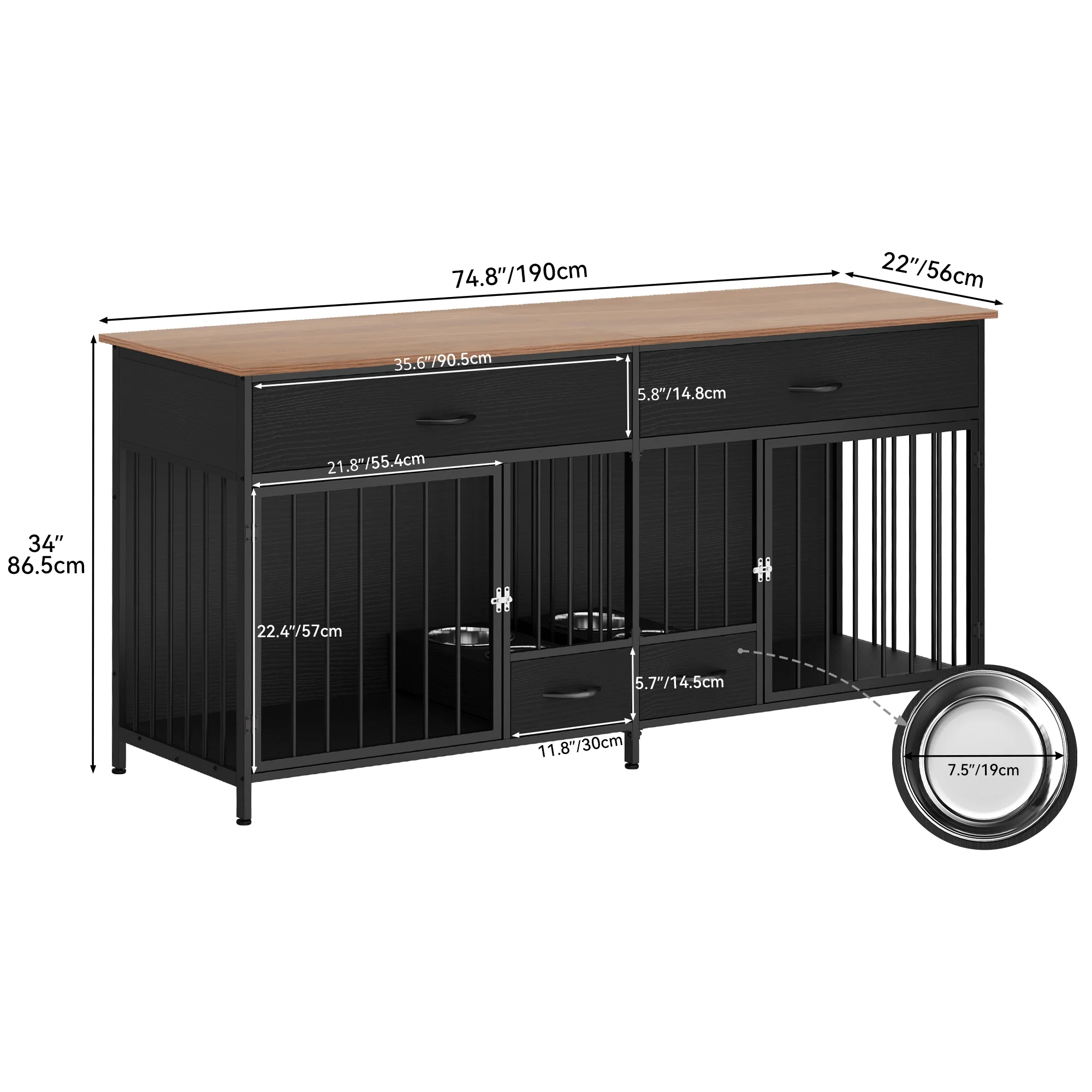 Wooden Double Dog Crate Kennel Furniture with 2 Drawers & Divider White