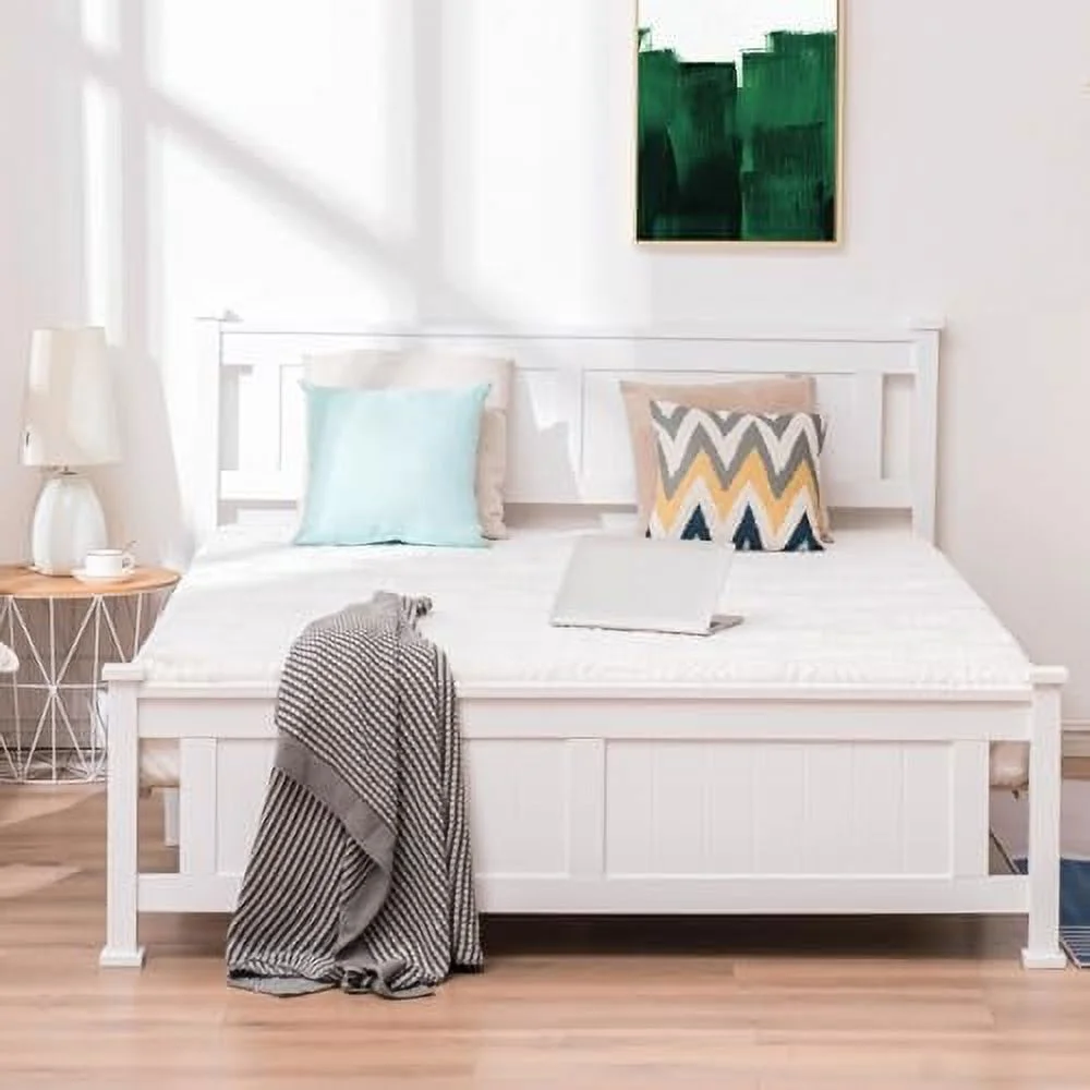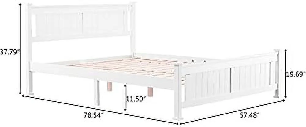 GEROBOOM White Full Bed Frame with Headboard Wood Platform No Box Spring Needed