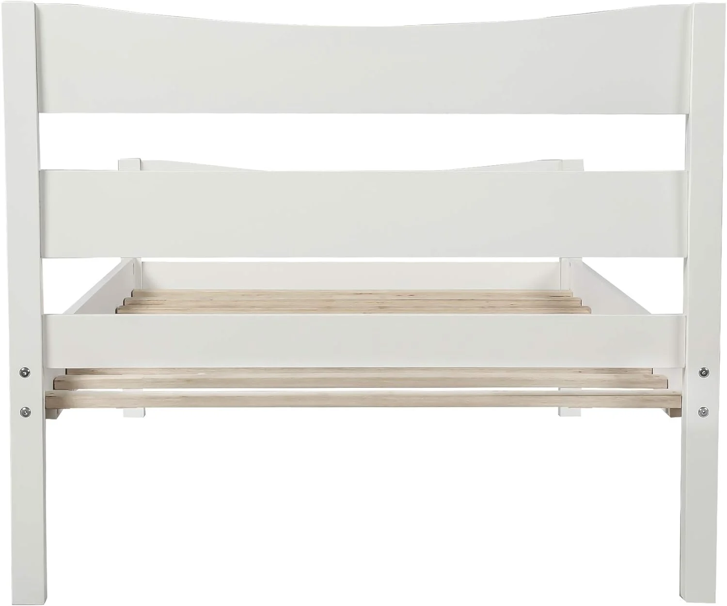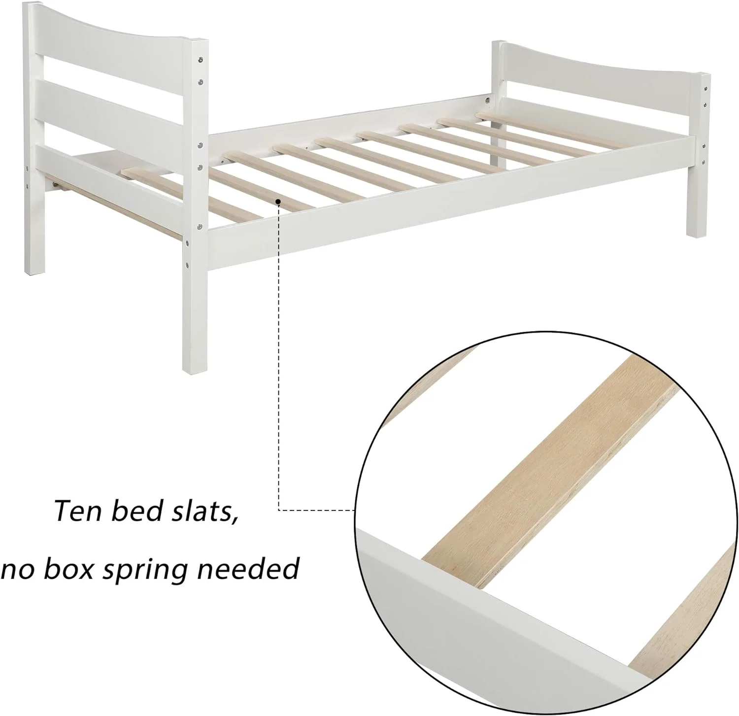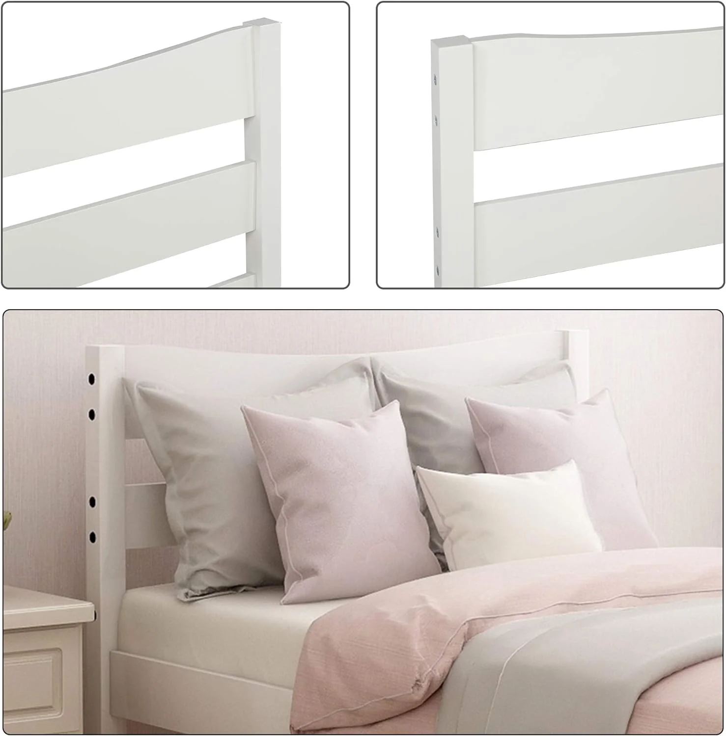 Leadzm Platform Bed Frame with Headboard Wood Slat Support No Box Spring Needed Twin White