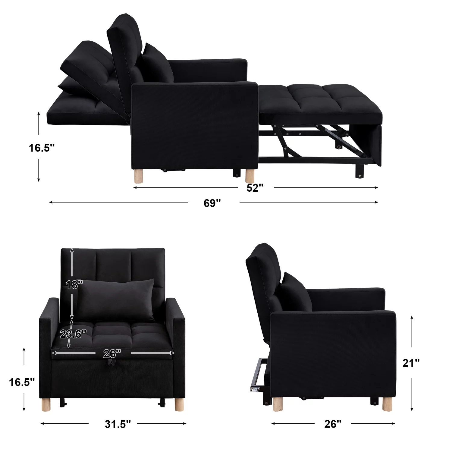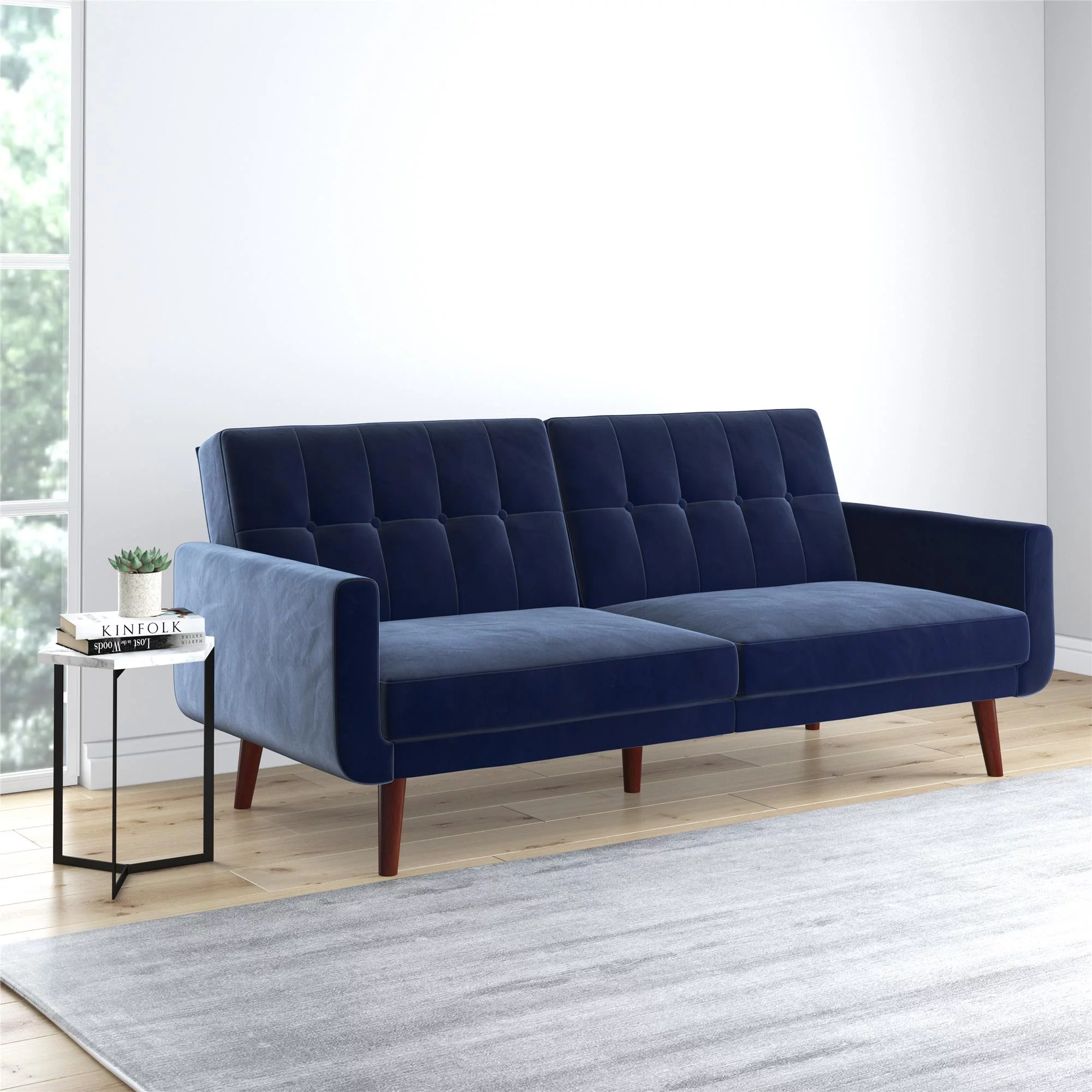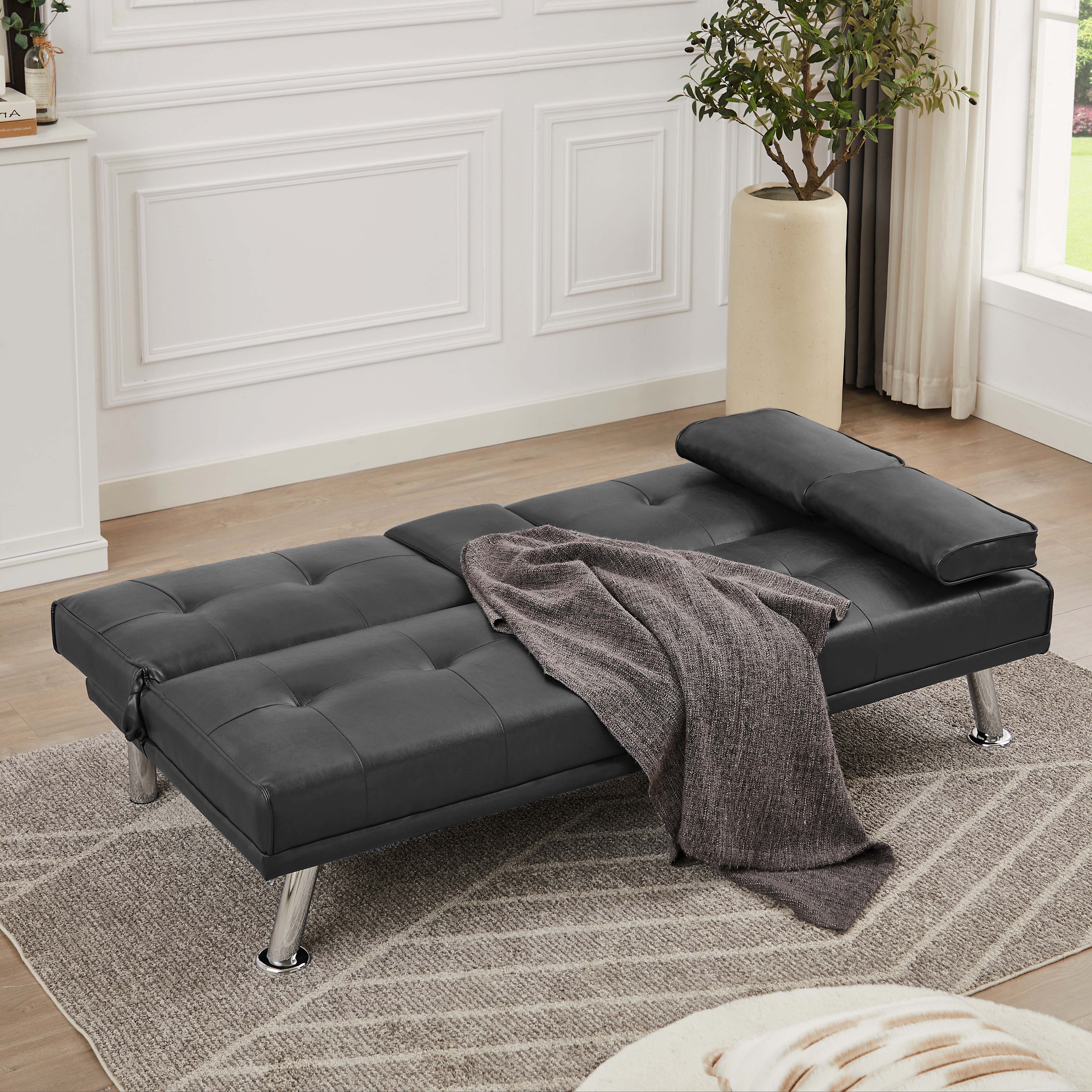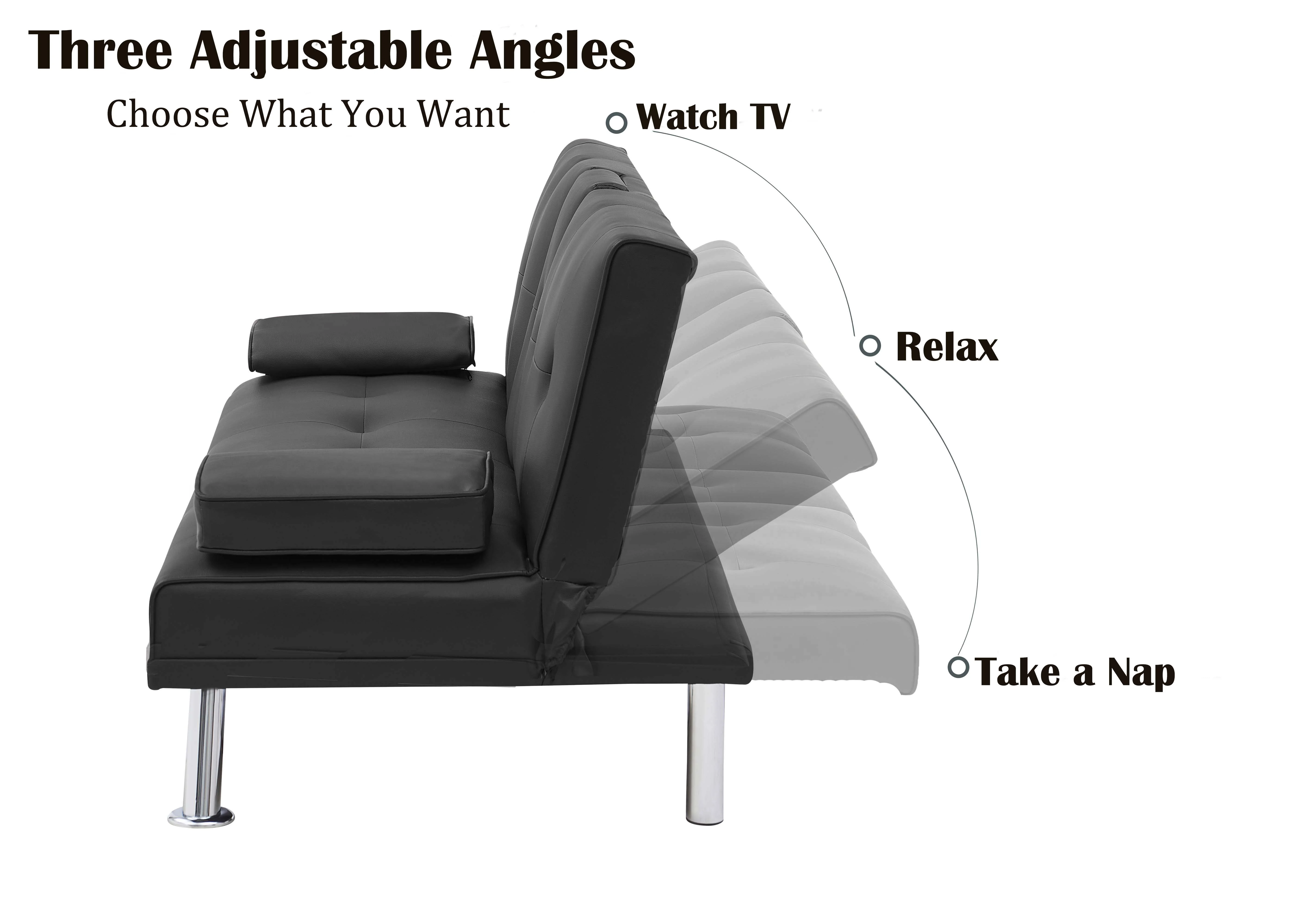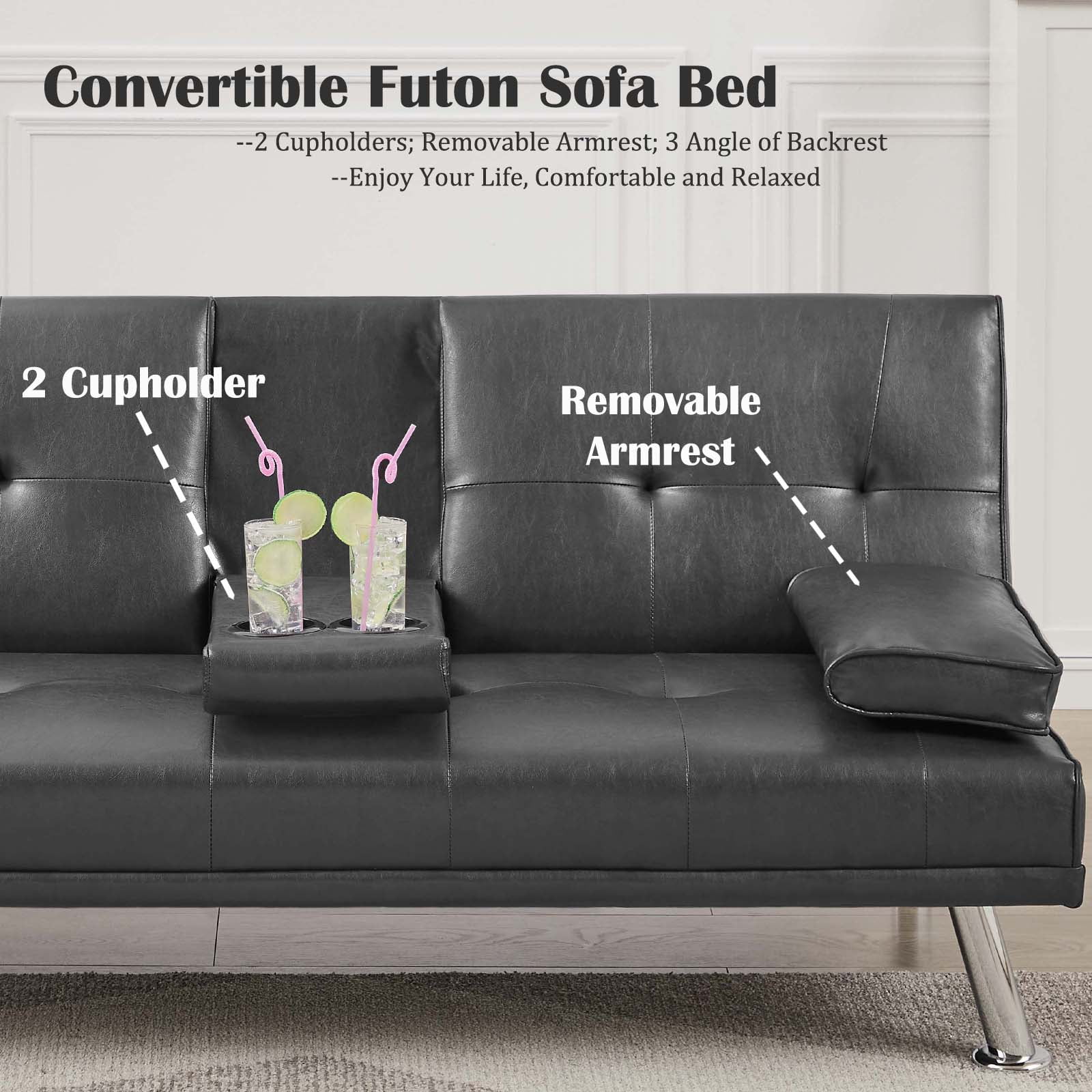BMMB PU Leather Convertible Futon Sofa Bed Modern Upholstered Sleeper Couches 2 Cupholders Adult