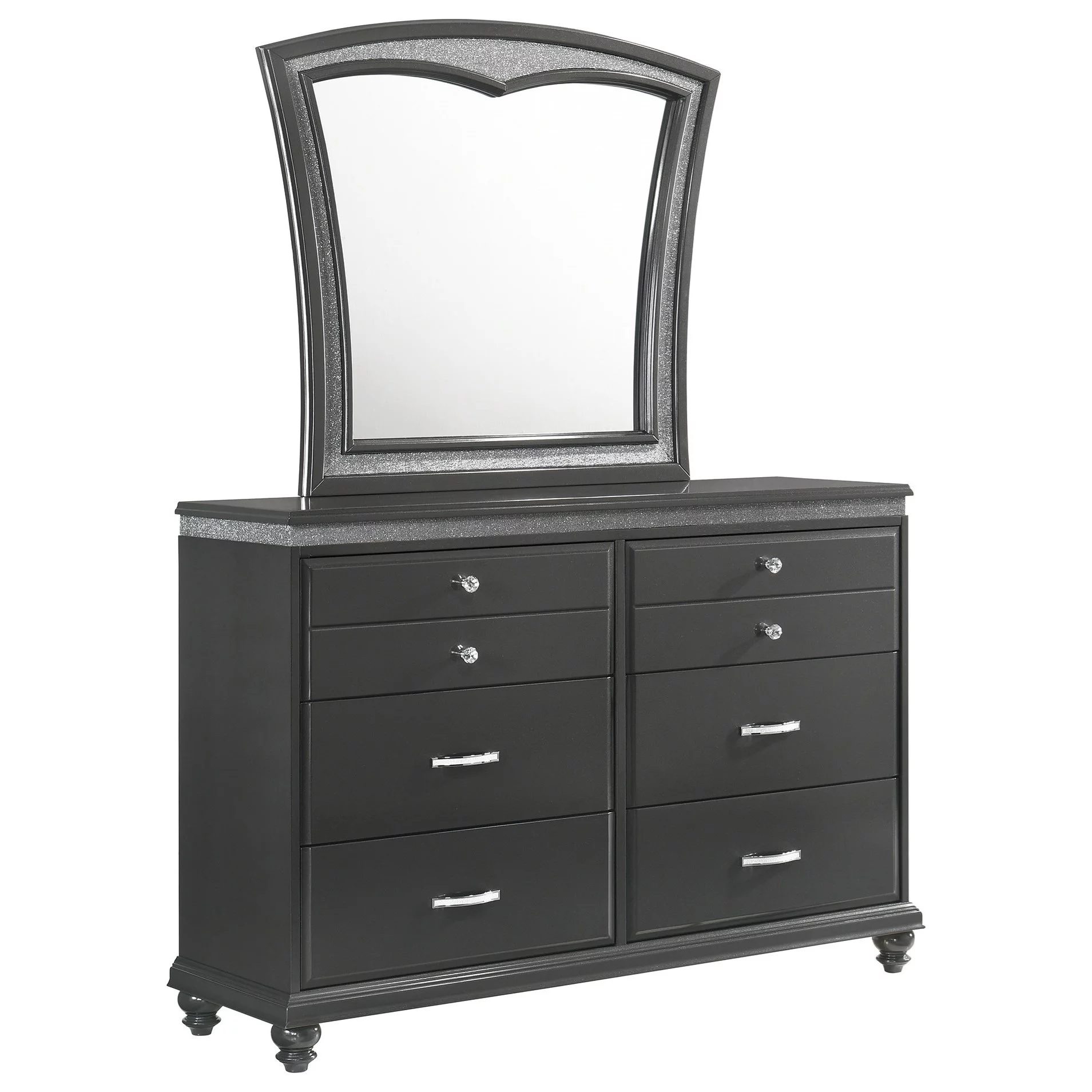 Elegant 5pc Queen Size Bed Dresser Mirror Nightstand Set Wooden Furniture Set Glam Style