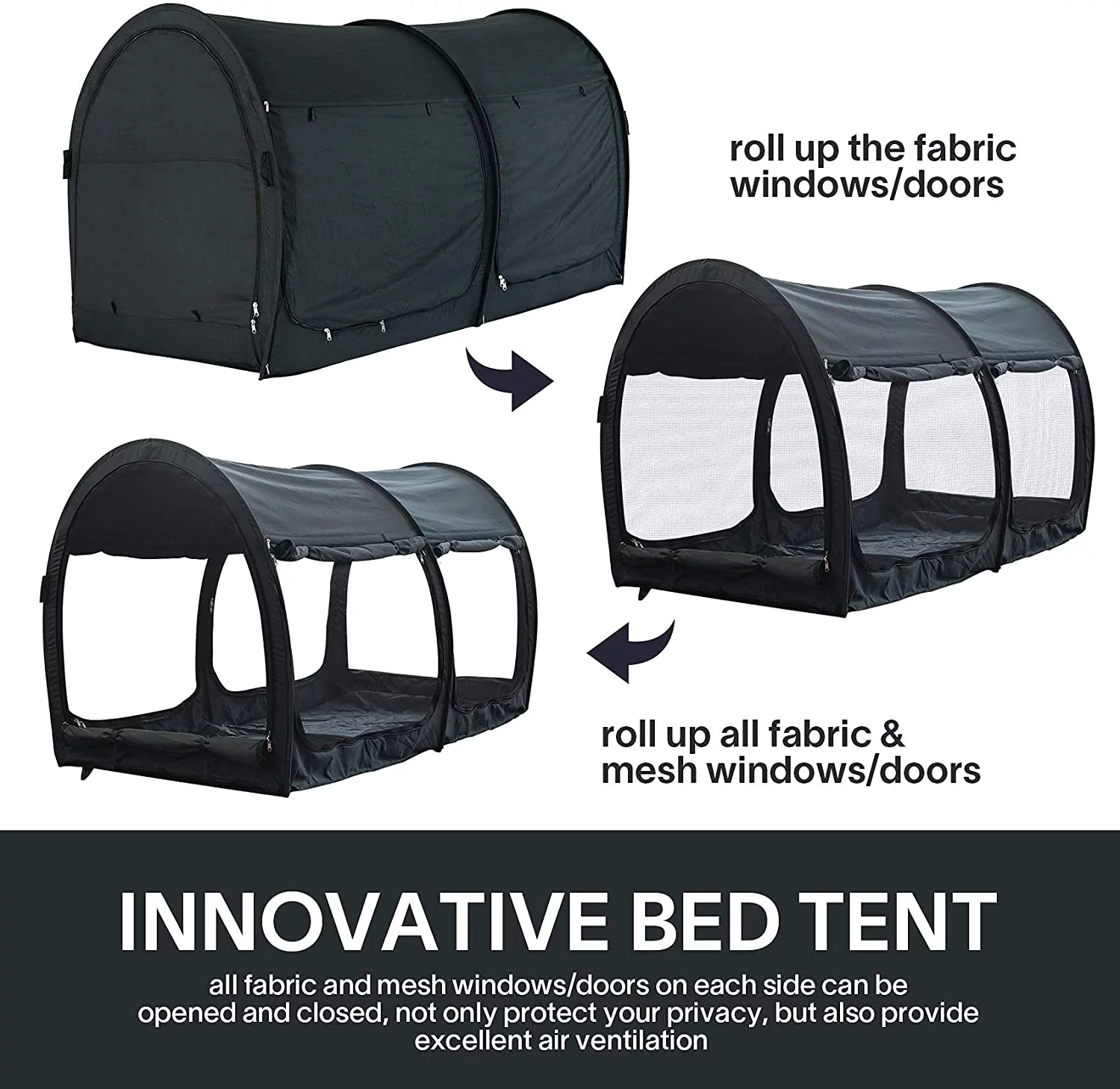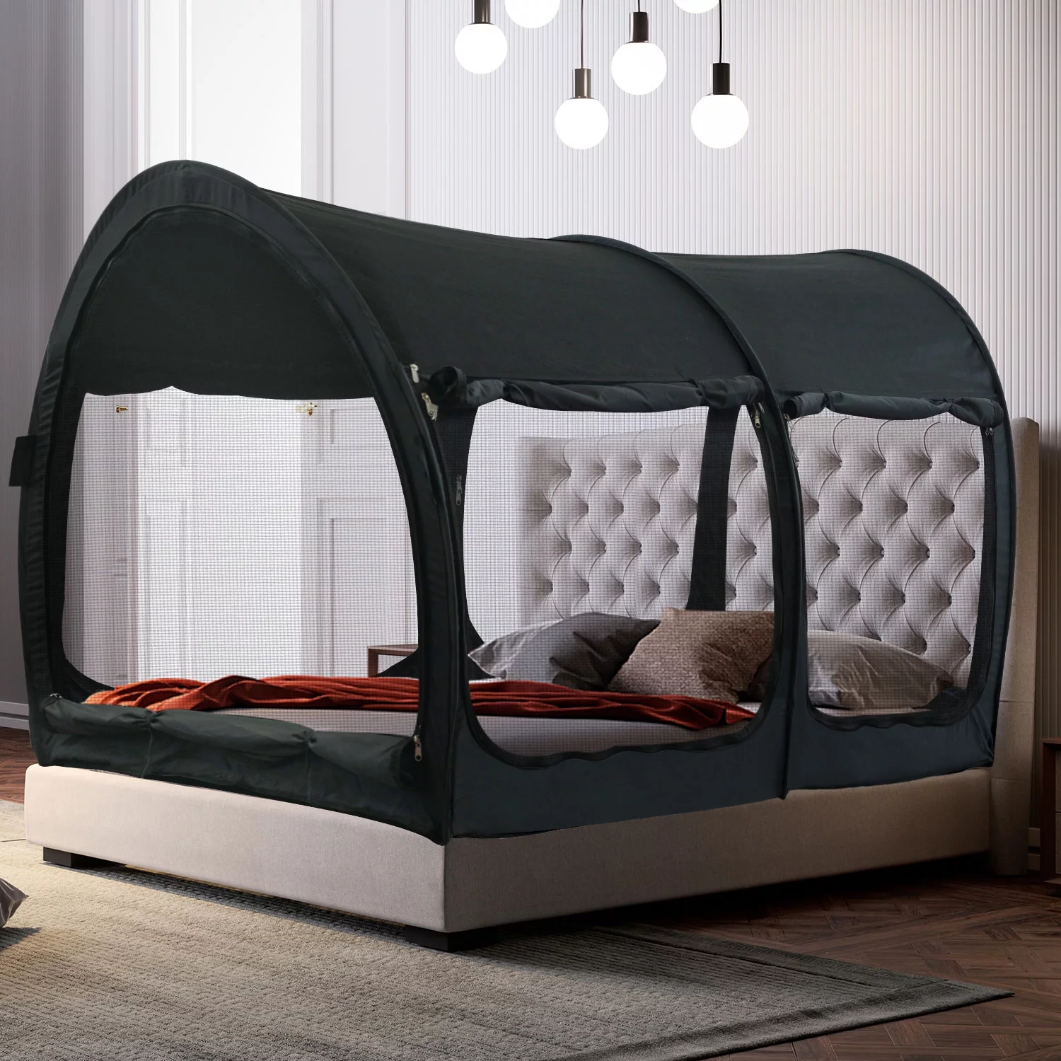 Alvantor Bed Tent Canopy Charcoal Four Doors with Neting Twin Size Privacy Space Unisex