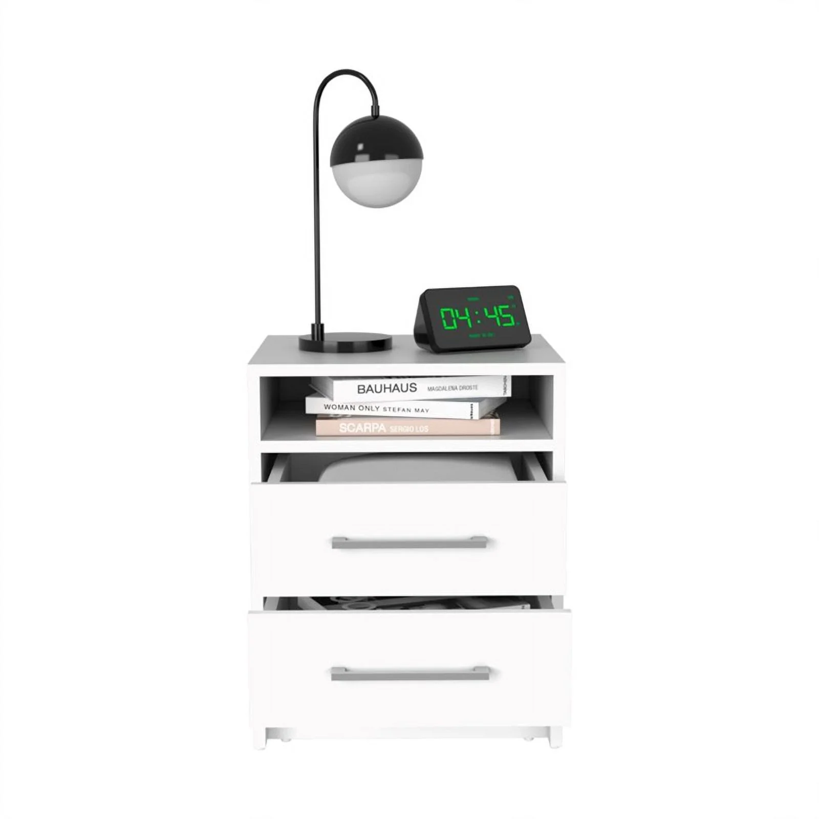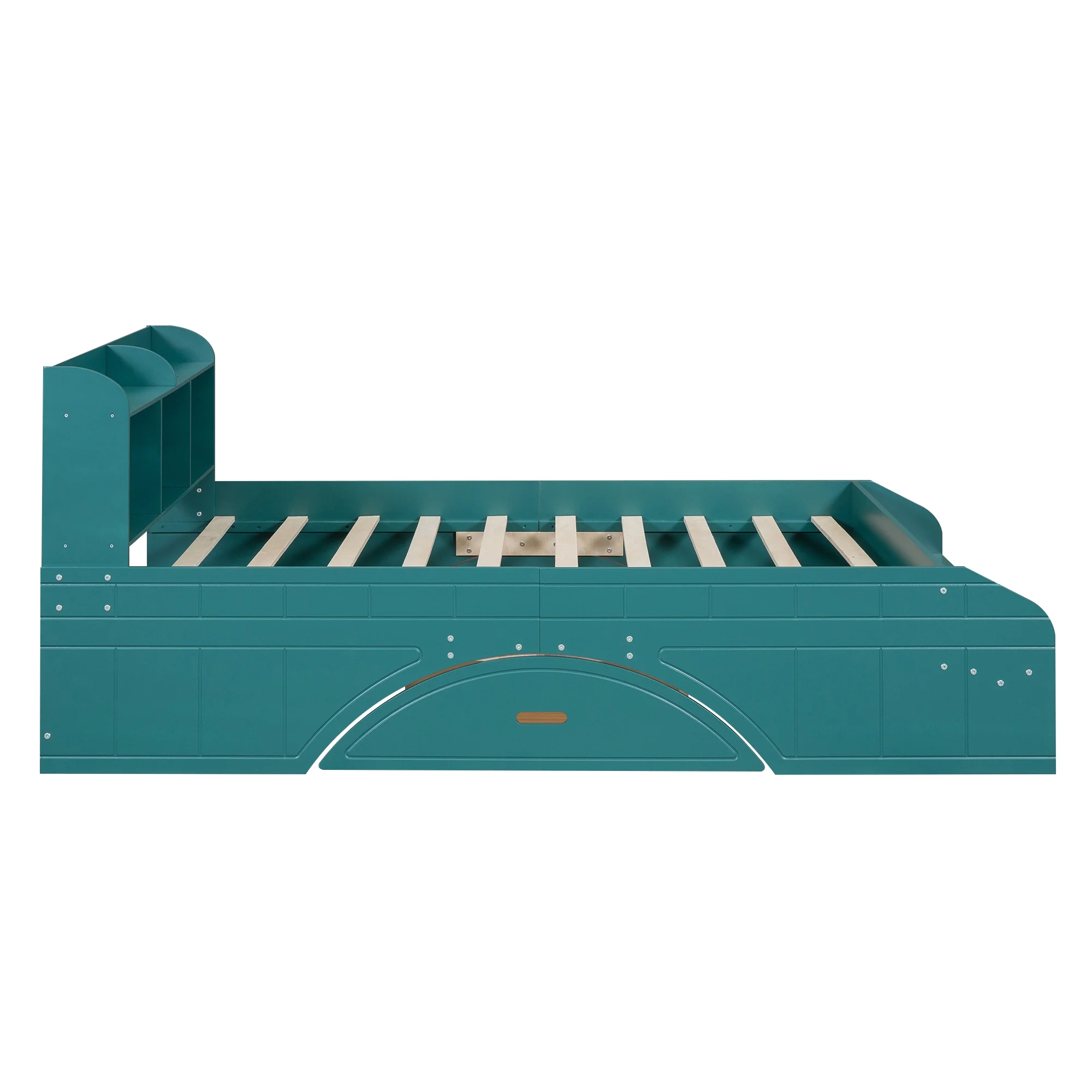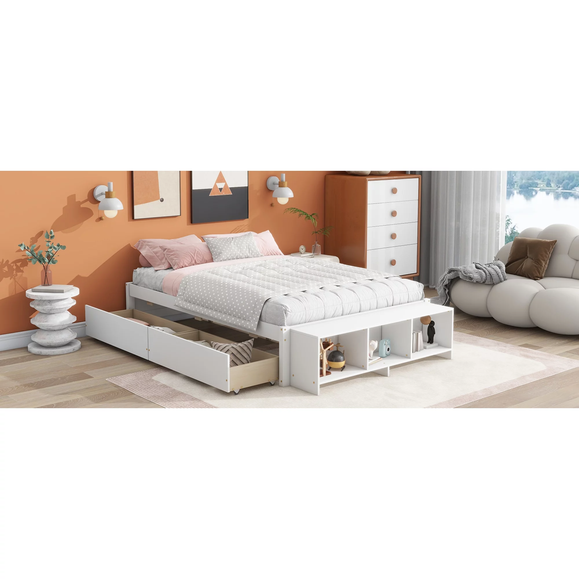 Full Size Bed with Storage Case, 2 Storage drawers, Lengthwise Support Slat,White