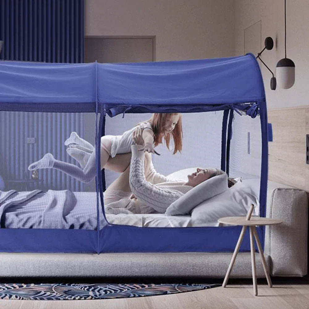 Bed Canopy Tent Privacy Space Twin Size Indoor Curtains Gray Cottage Unisex