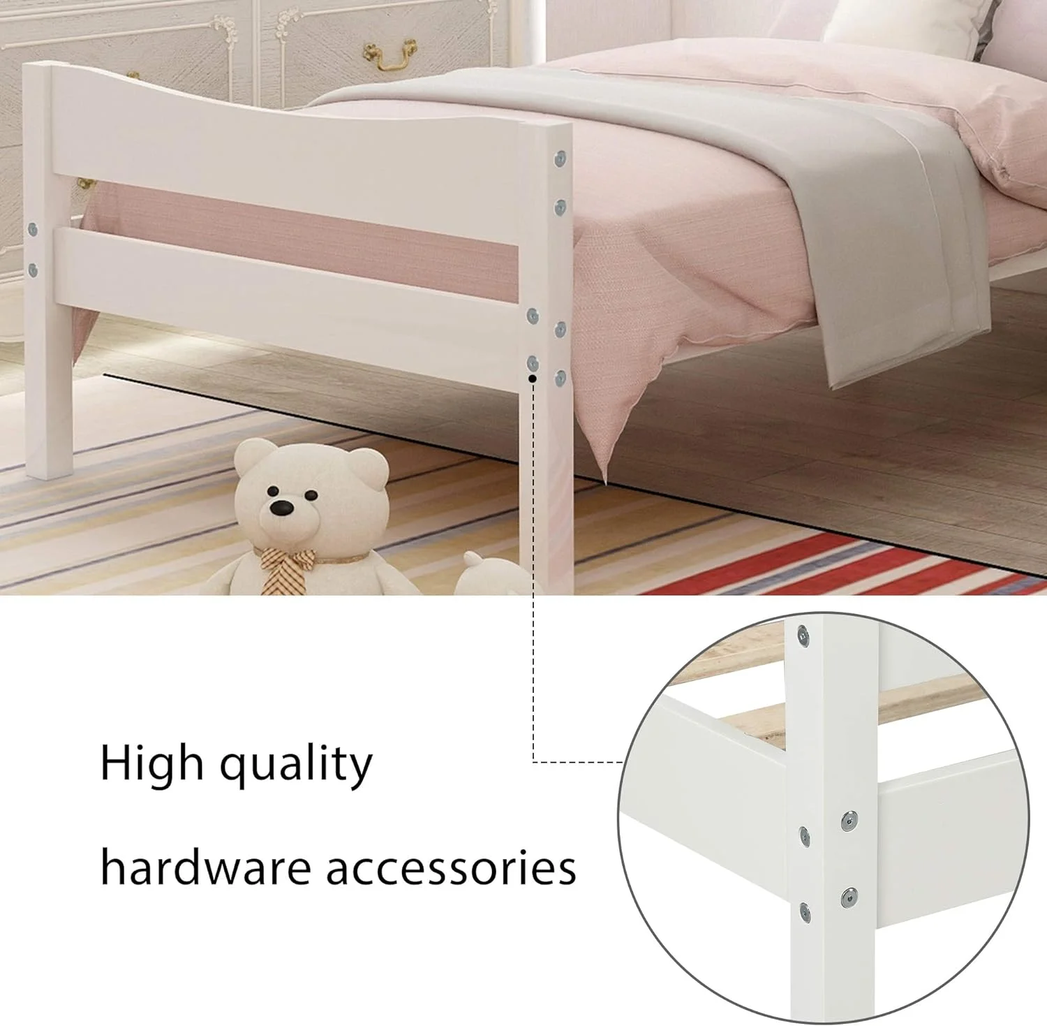 Bed Frame, Wood Platform Bed With Headboard For Kids Girls Boys, No Box Spring Needed, White