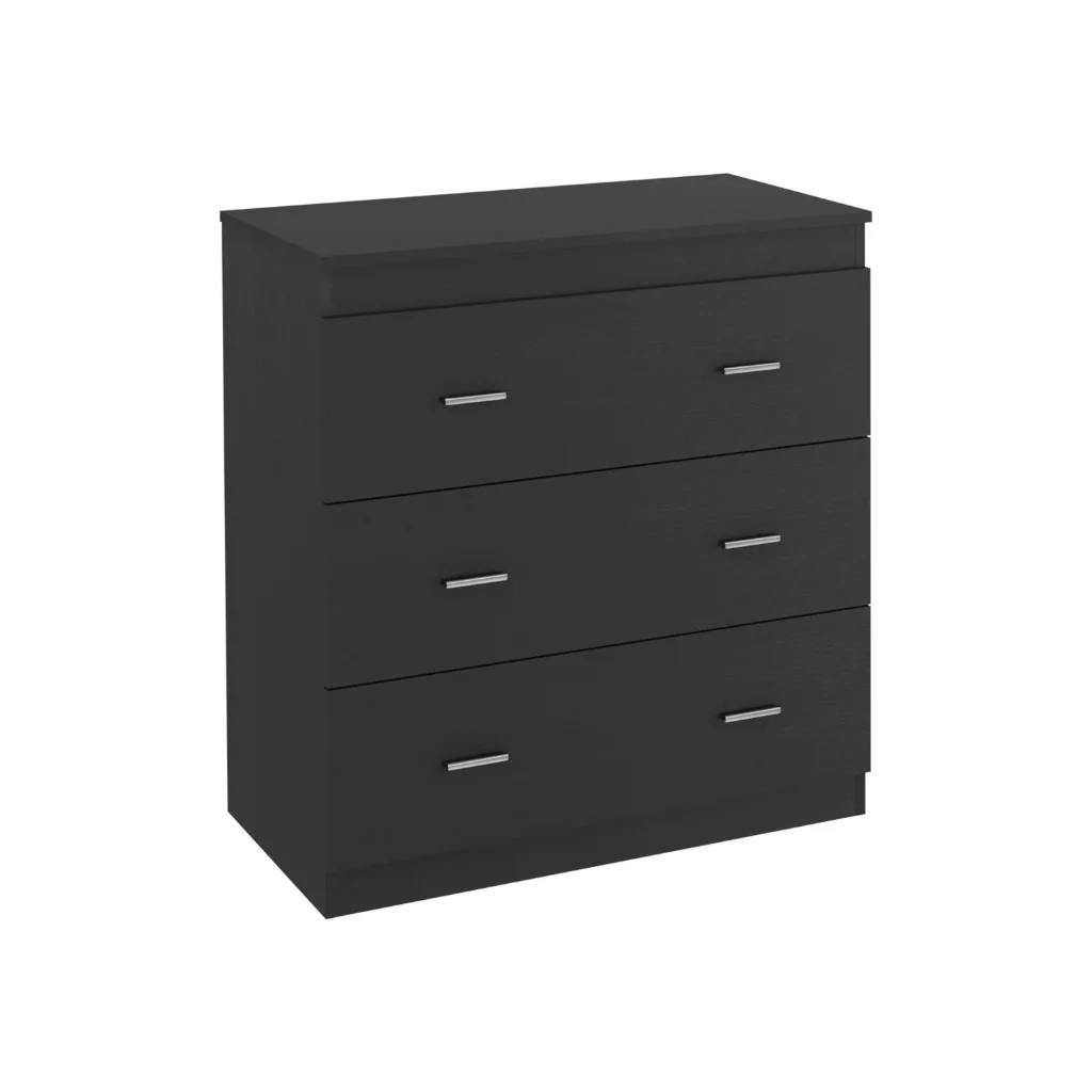 We Have Furniture Three Drawer Dresser Litress, Metal Handles, Black Wengue Finish