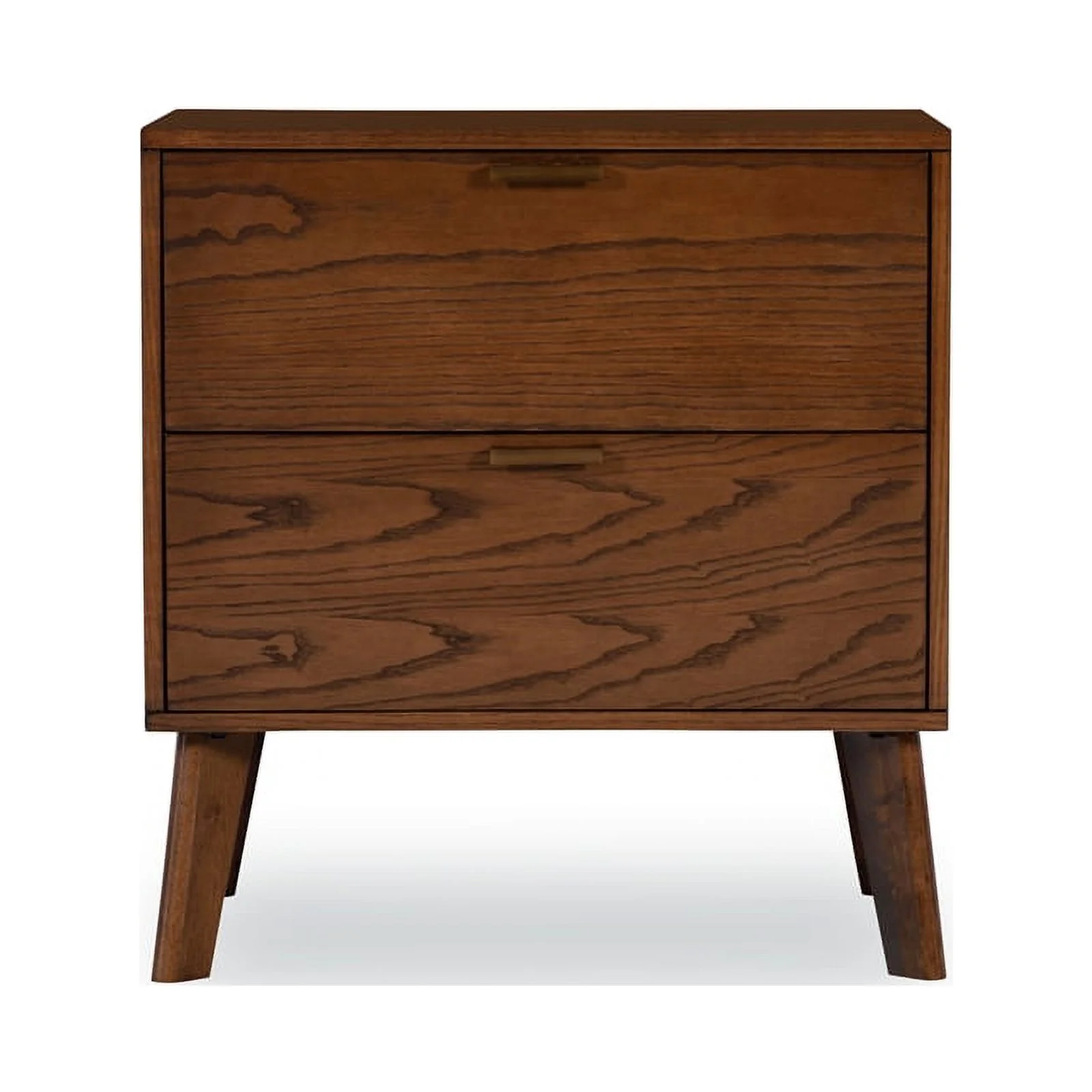 Full Size Wood Platform Bed with House-shaped Storage Headboard and 2 Drawers, Walnut