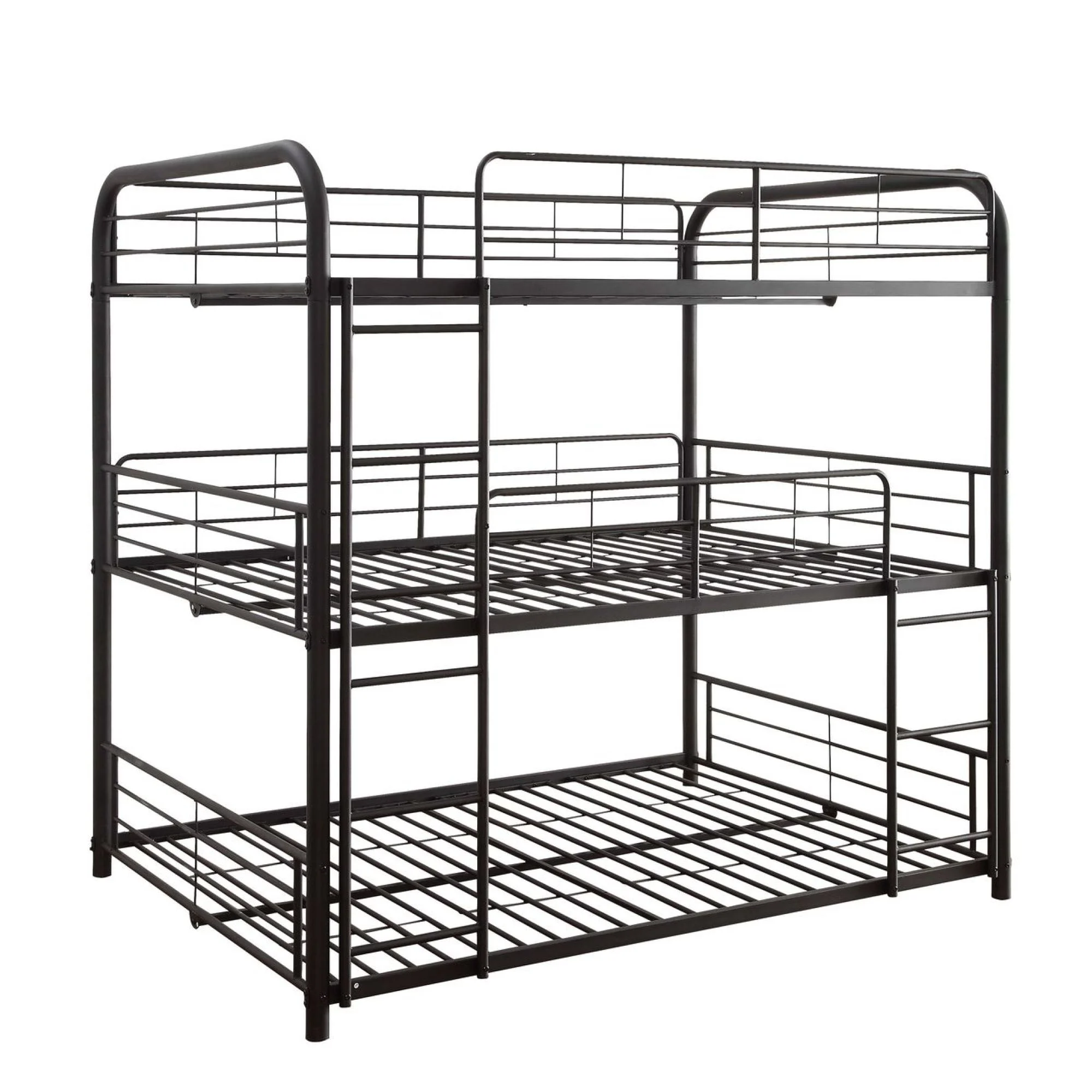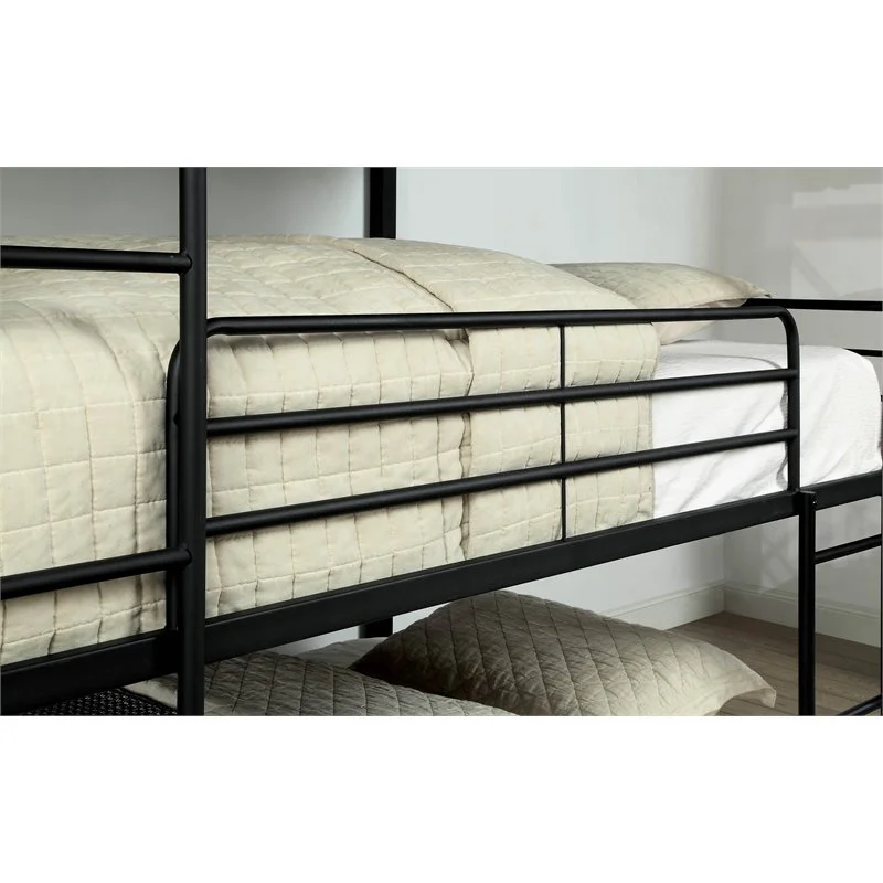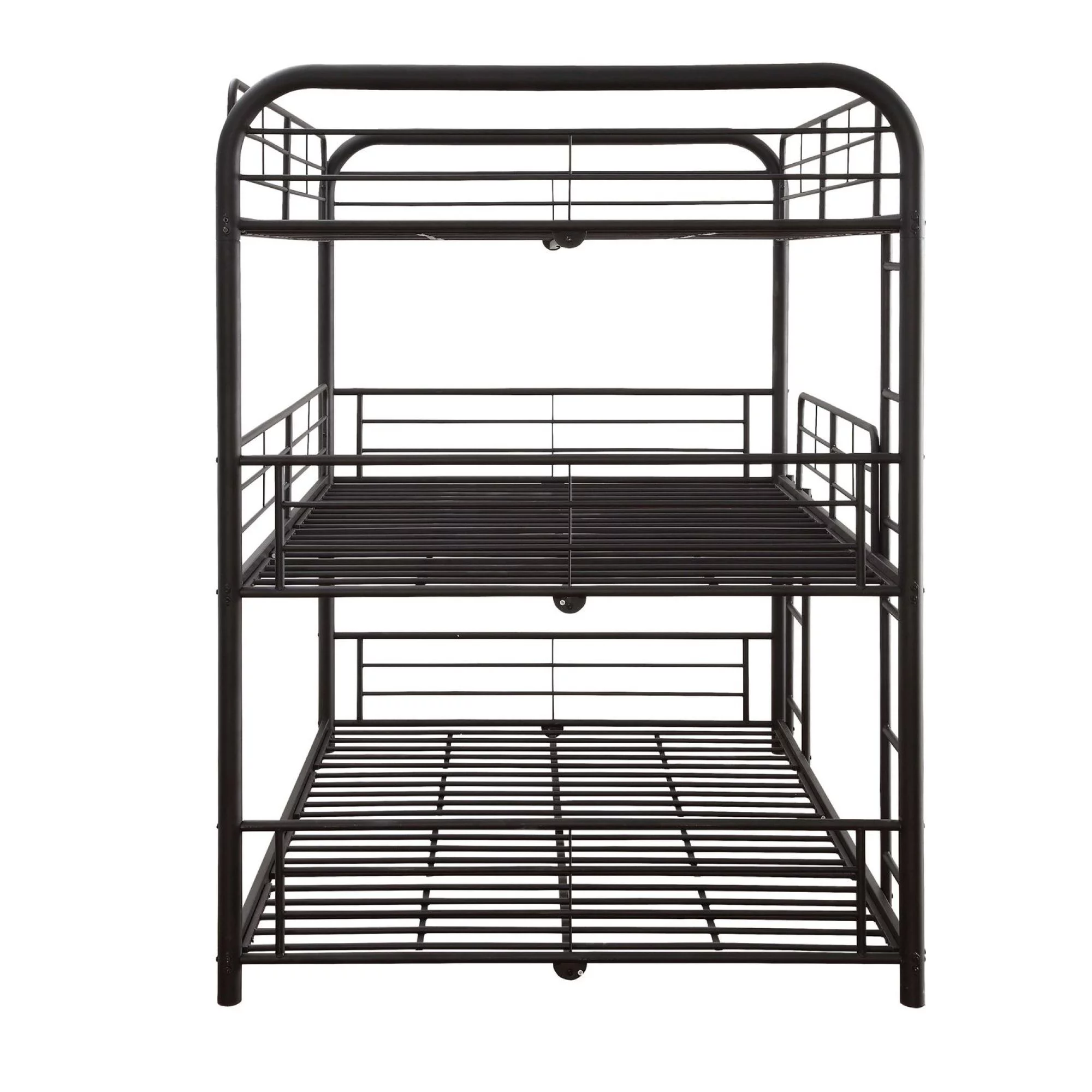 Sia 79 Inch Metal Full Triple Bunk Bed, Round Guard Rails, Ladder, Black