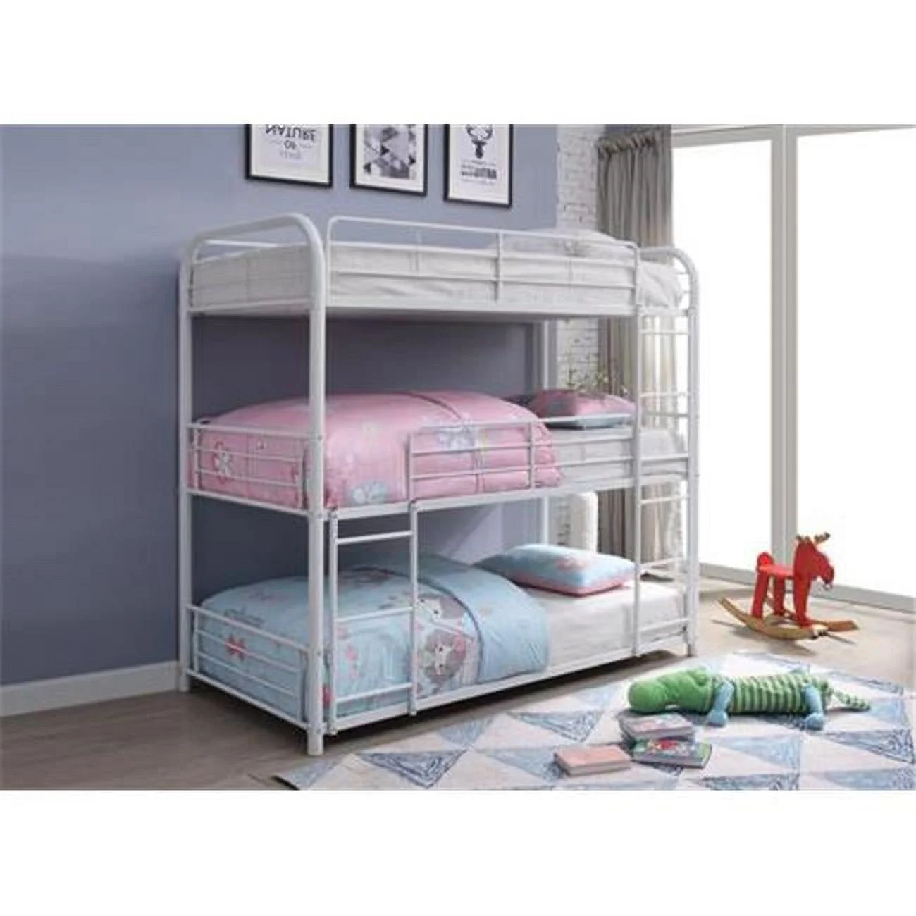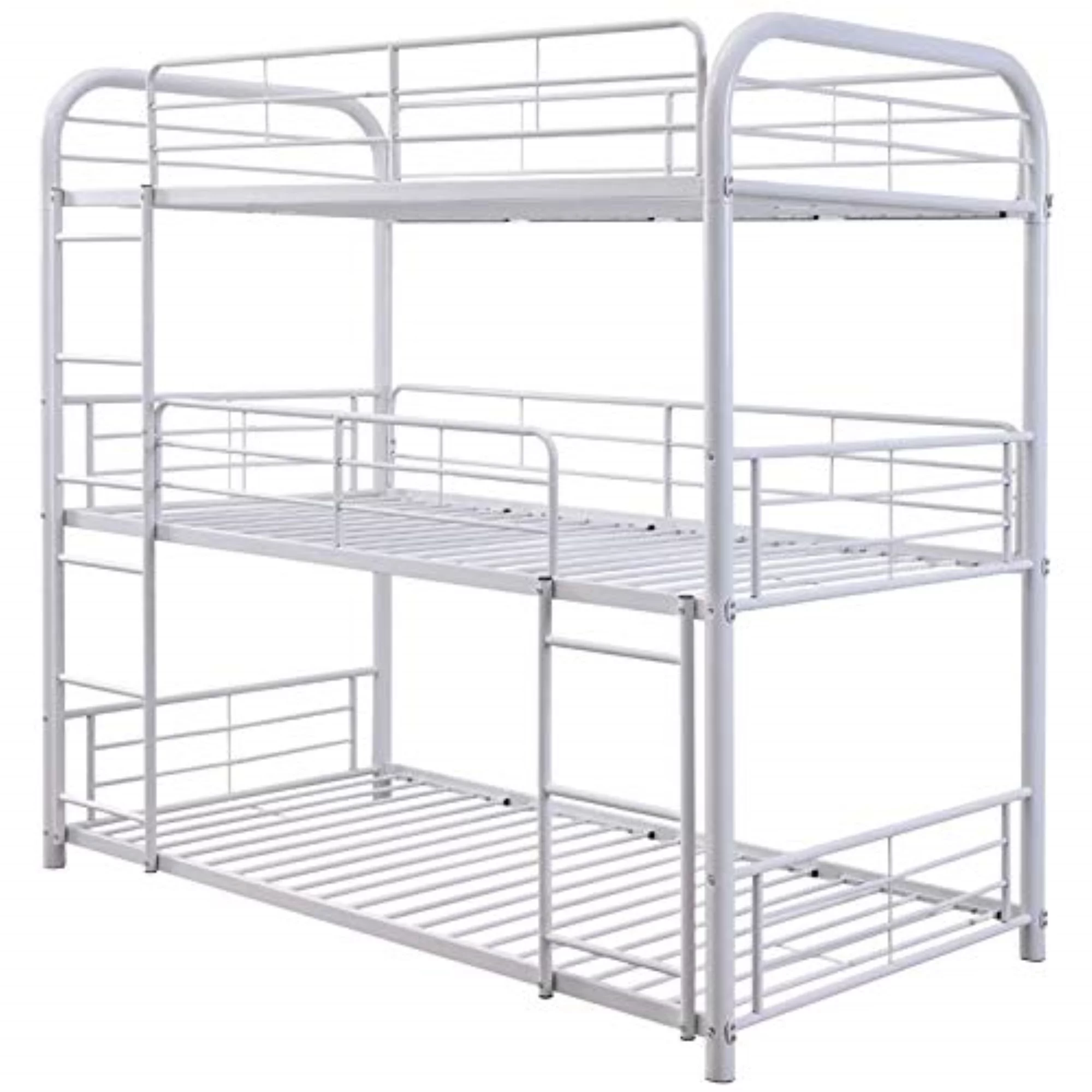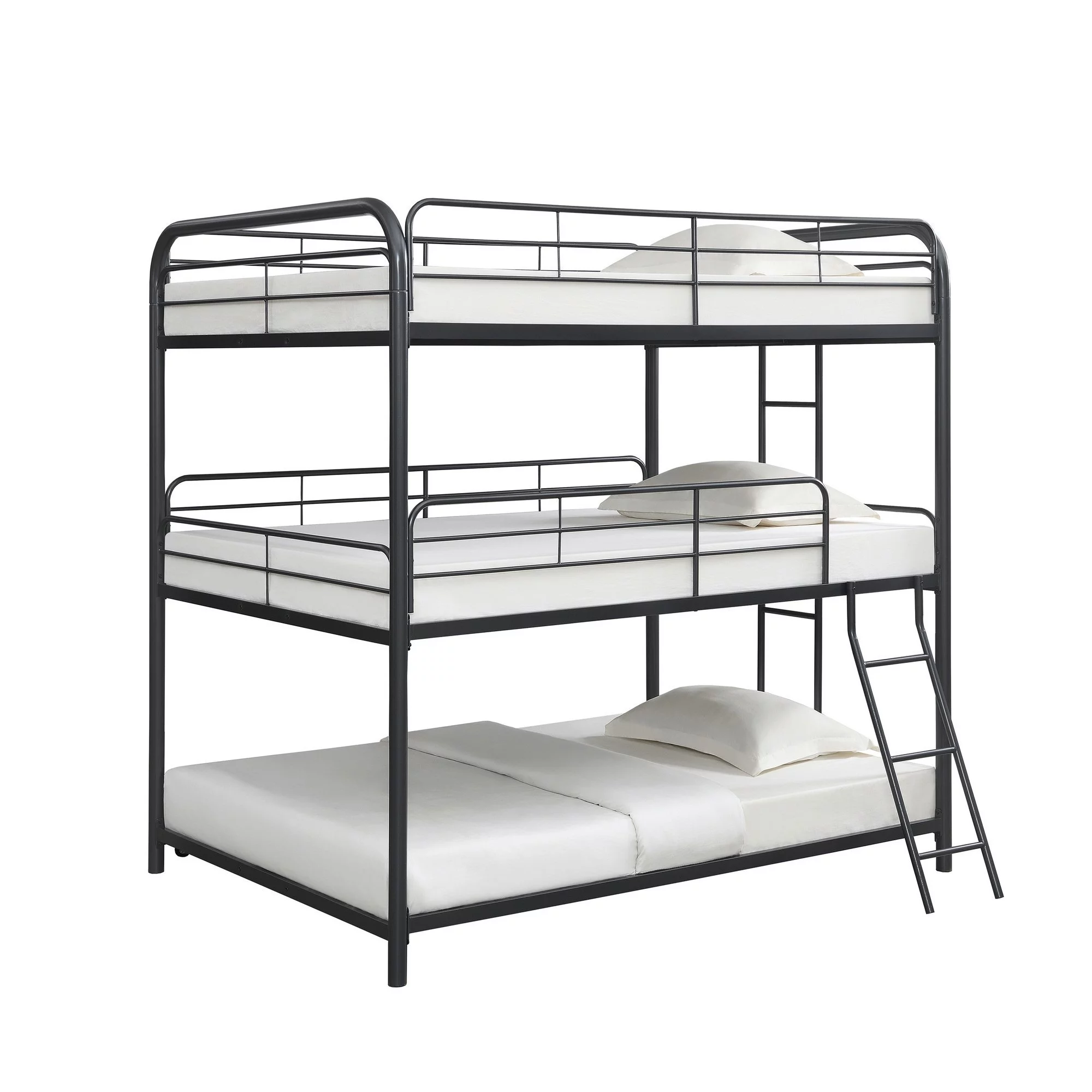 Sia 79 Inch Metal Full Triple Bunk Bed, Round Guard Rails, Ladder, Black