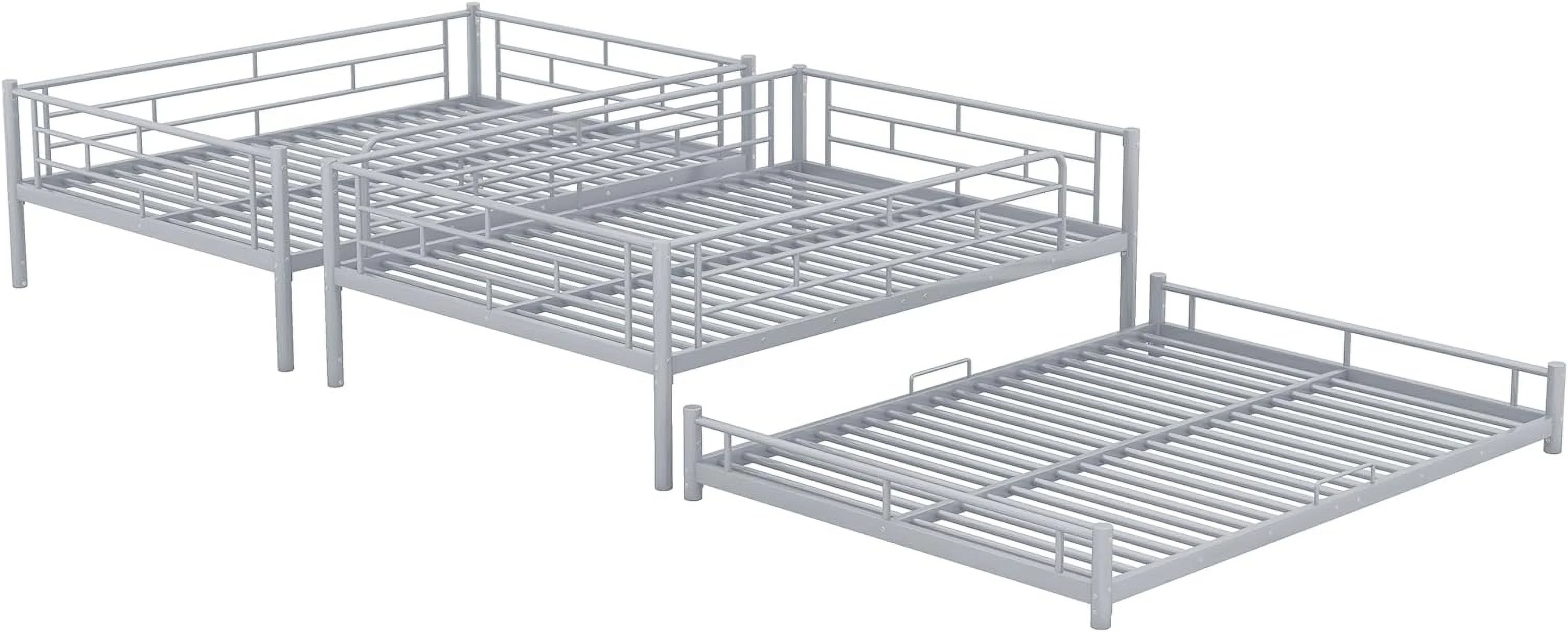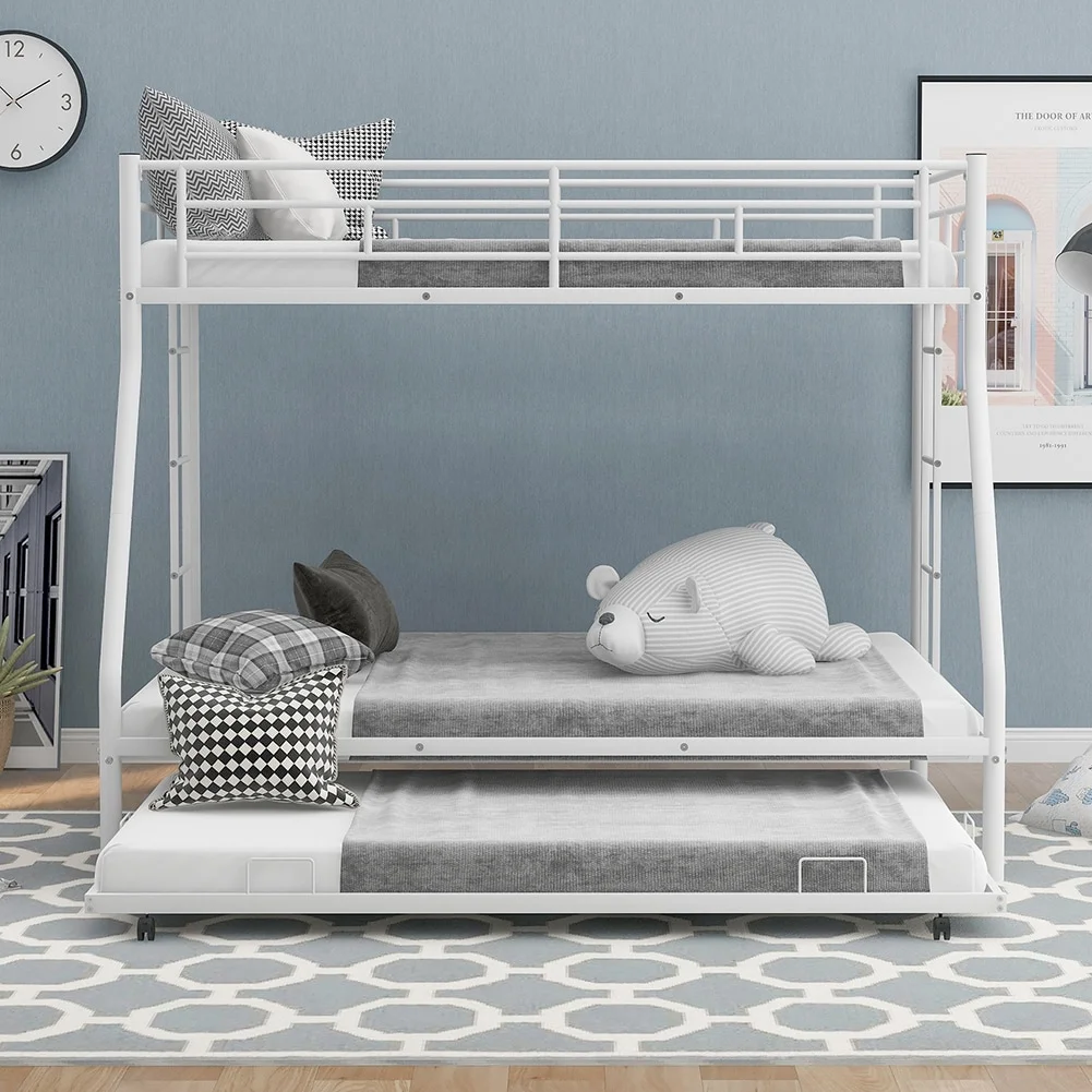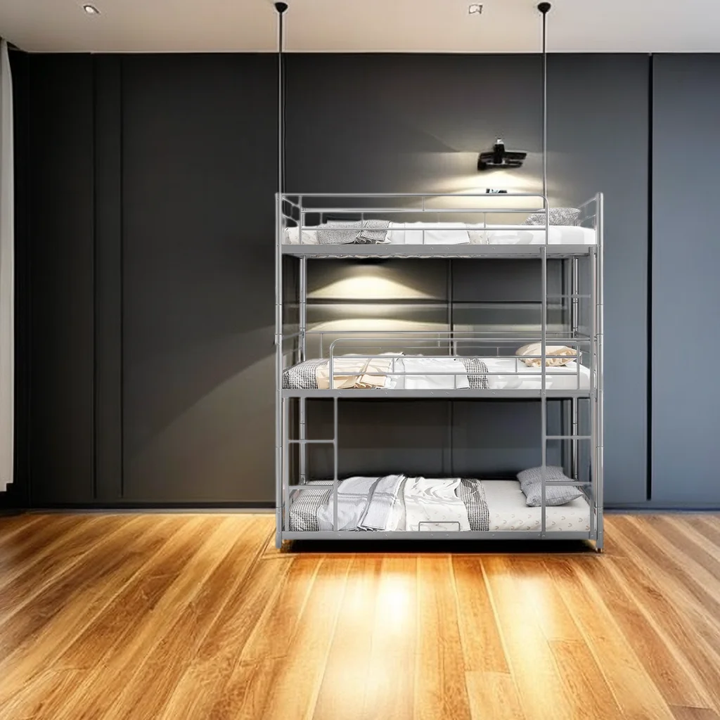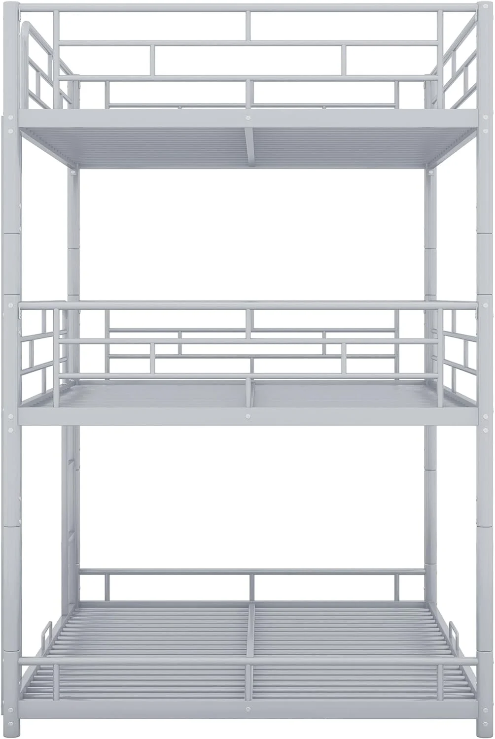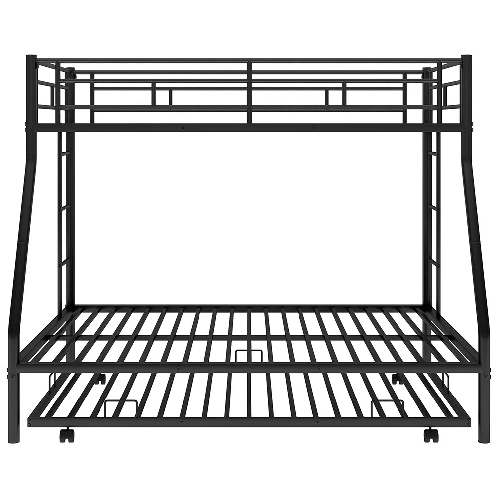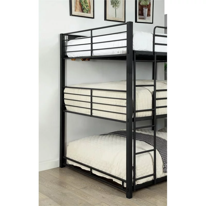 "Black Metal Full-Size Triple Bunk Bed - Space-Saving Design for Maximum Comfort and Utility"