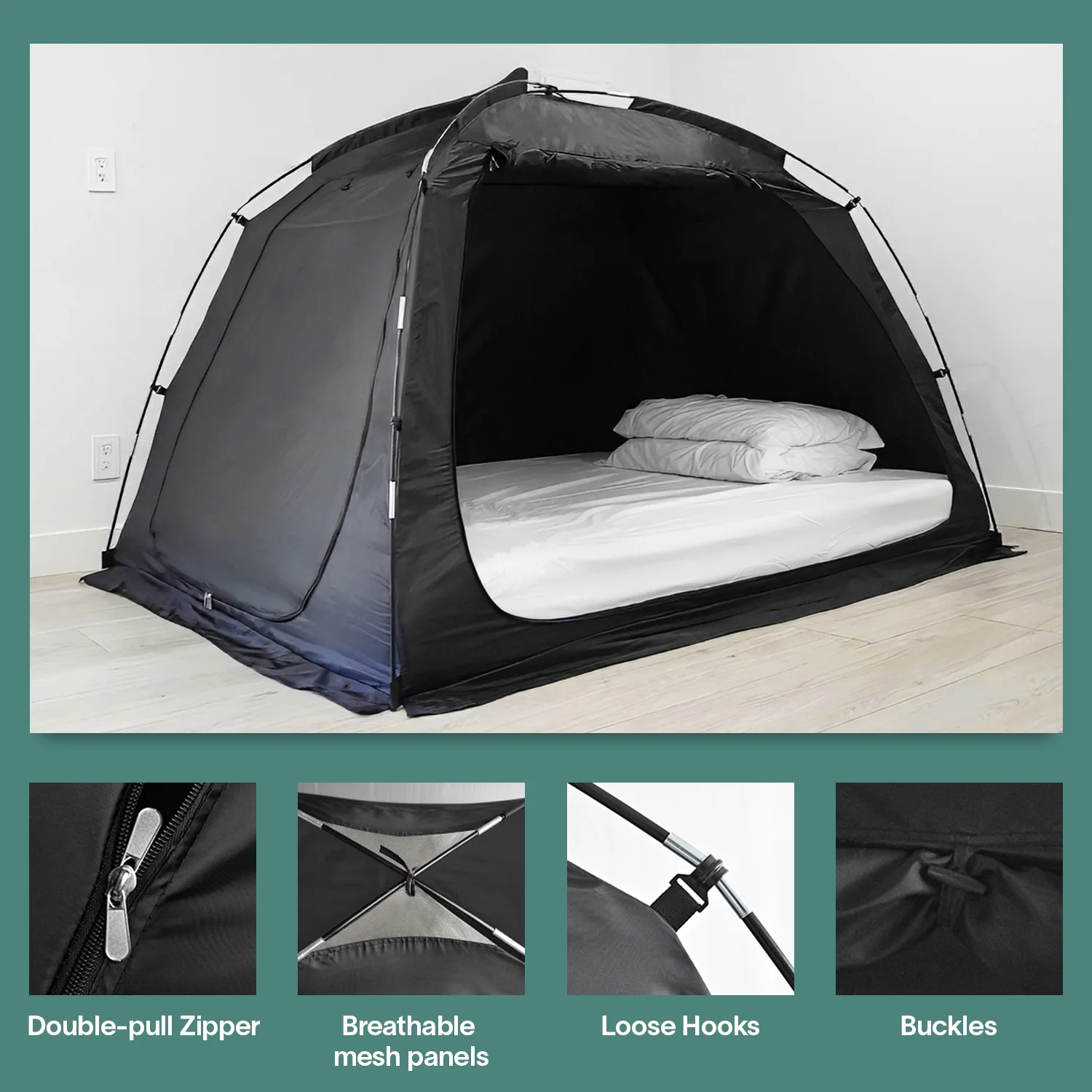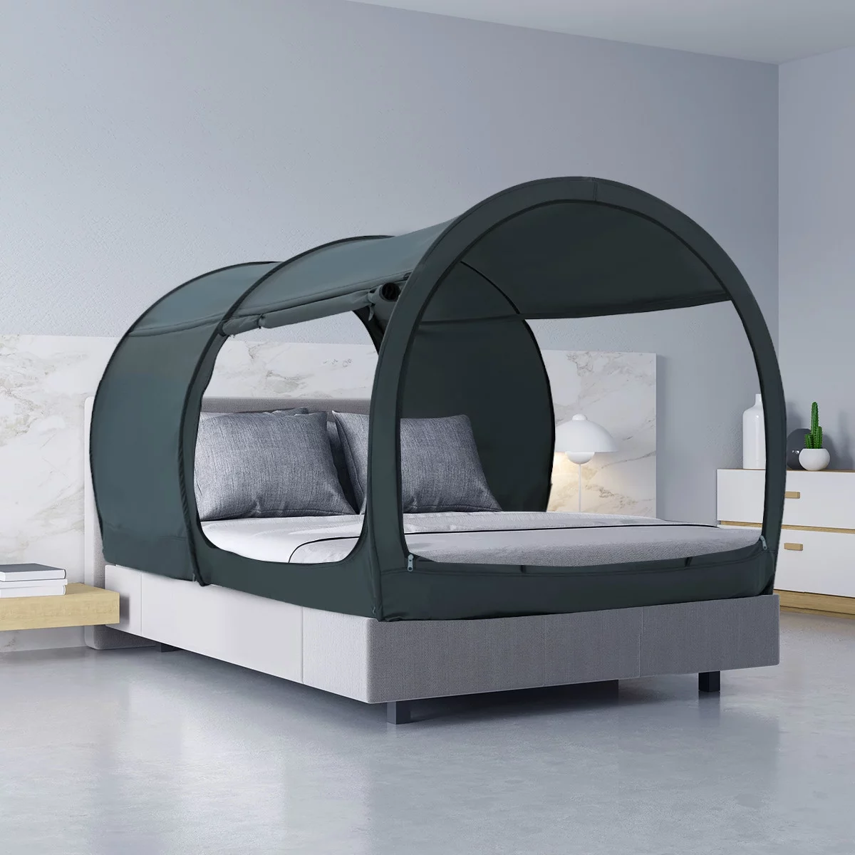 Alvantor Bed Tent Canopy Twin Size 4 Doors With Full Netting Pop up Privacy Space Charcoal Unisex