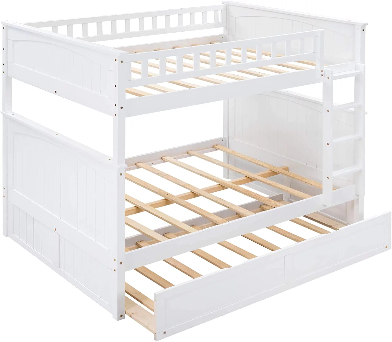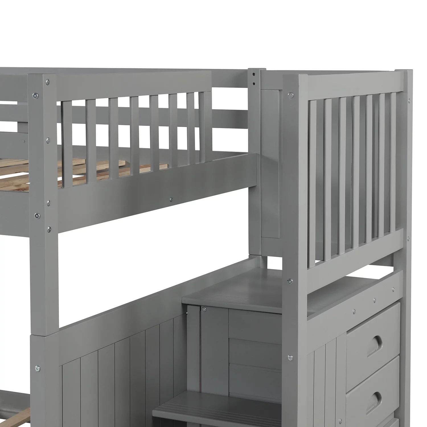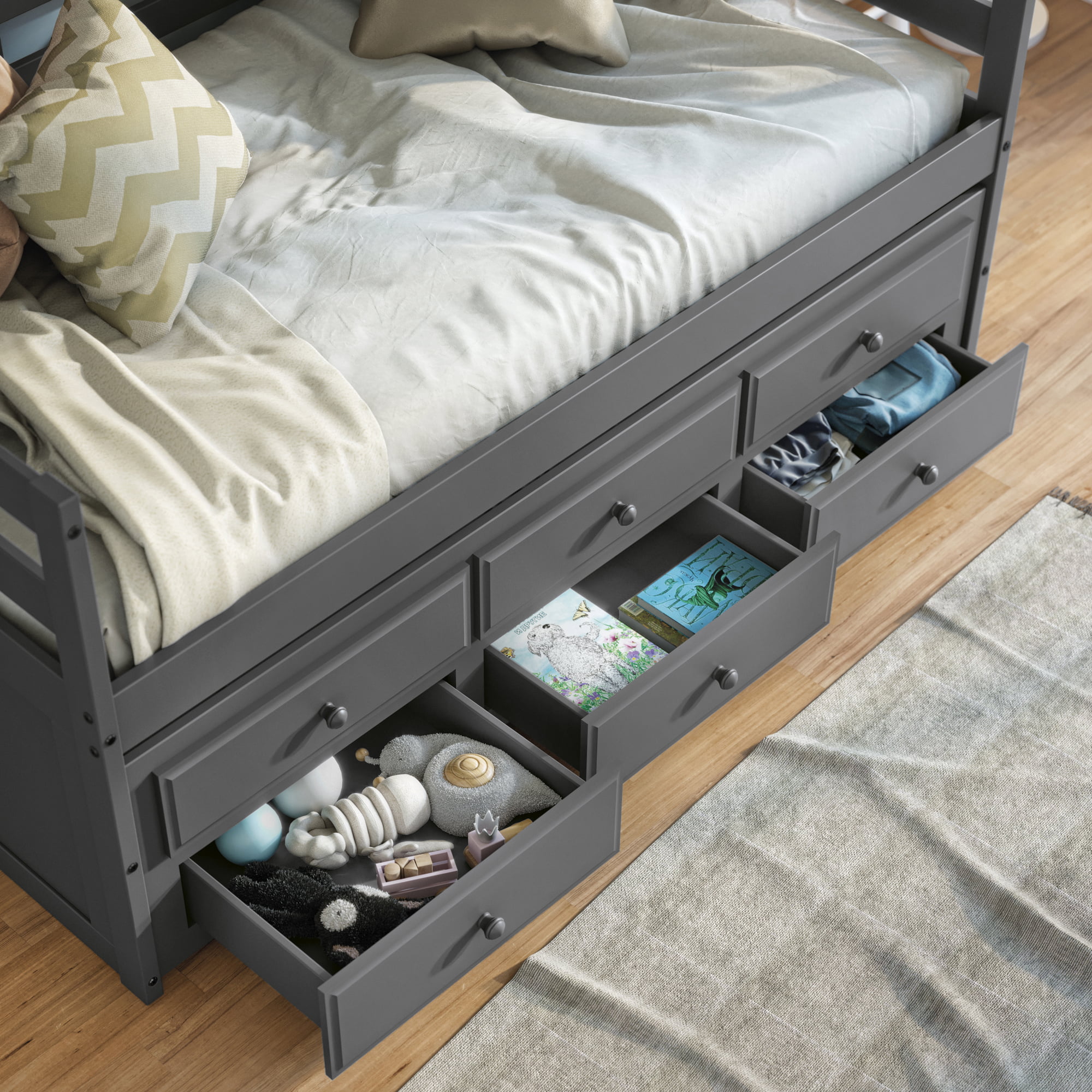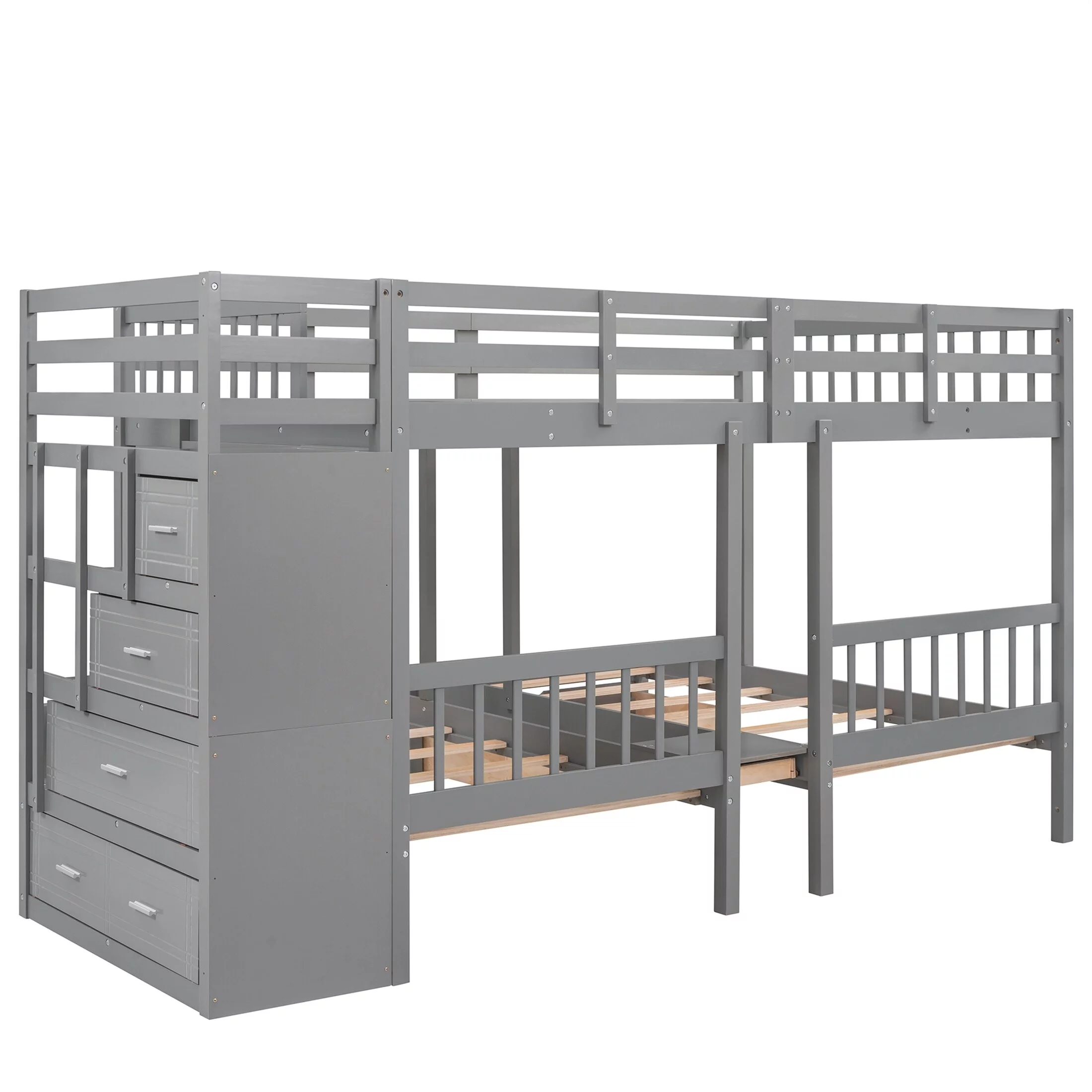YJTONWIN Full Over Twin & Twin Bunk Bed Wood Triple with Drawers Gray