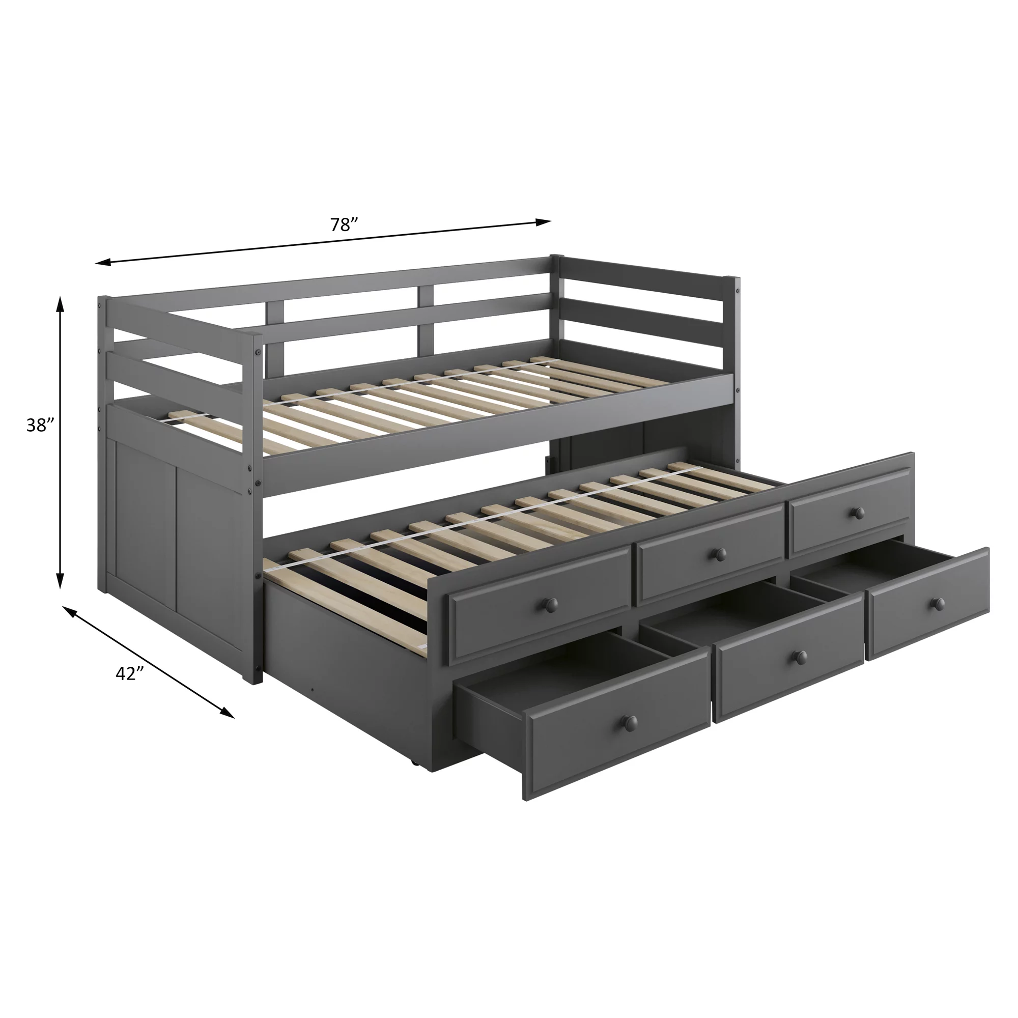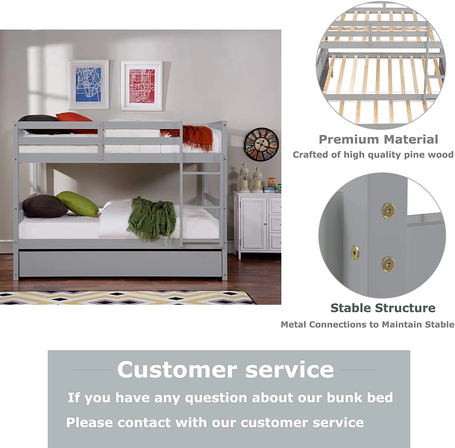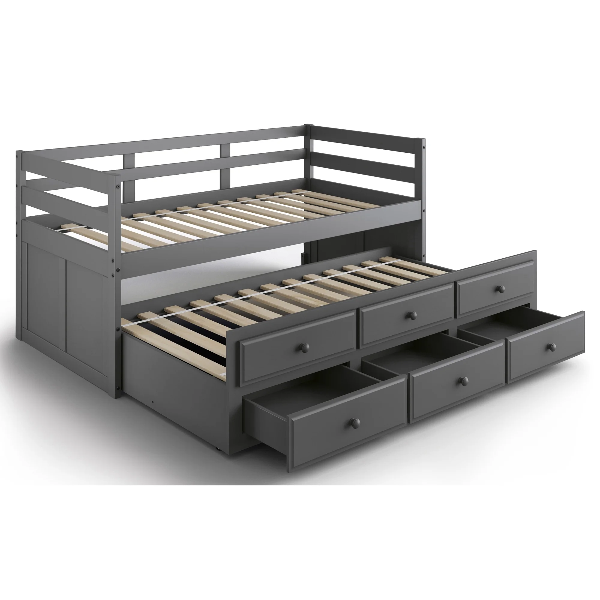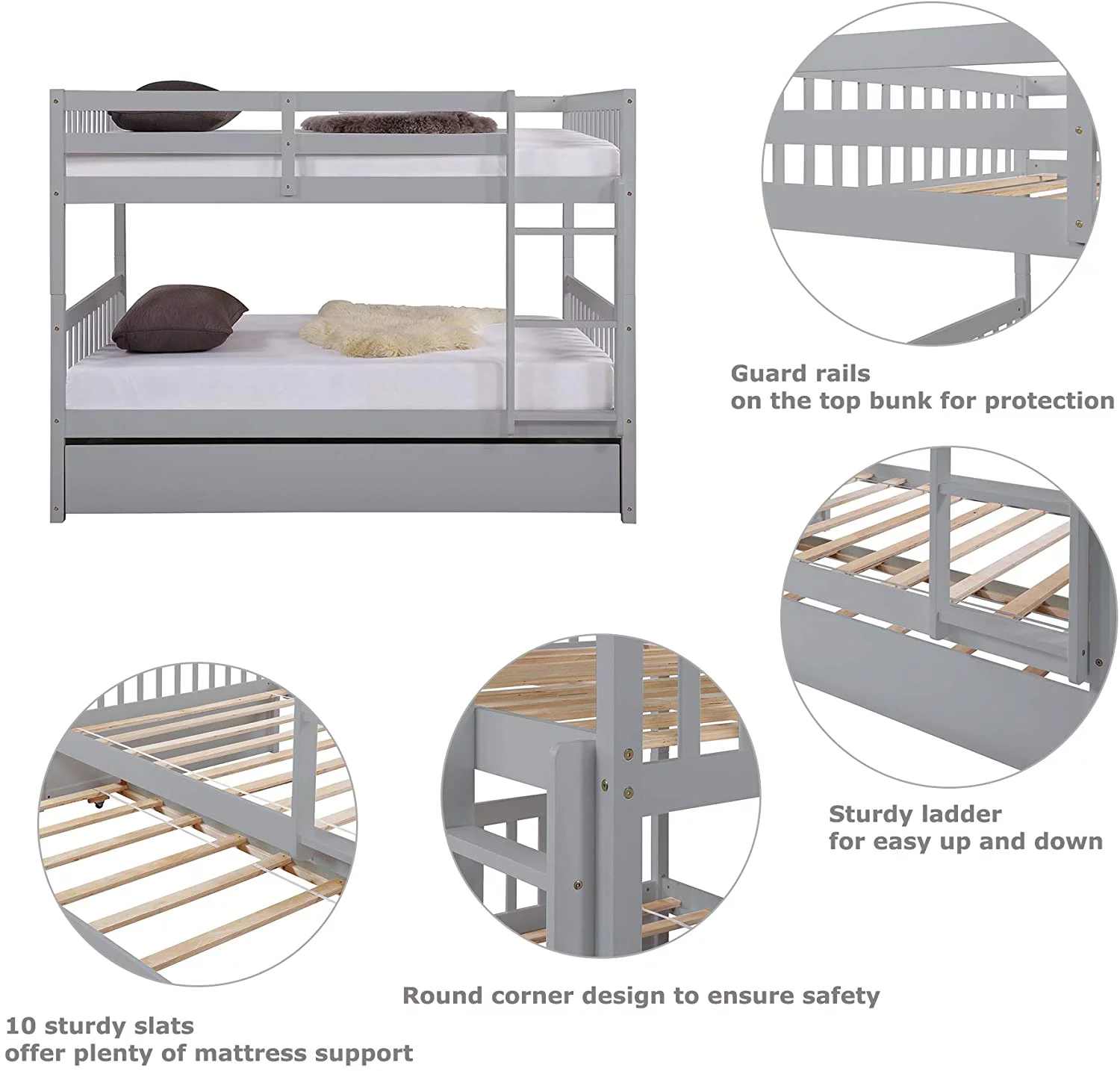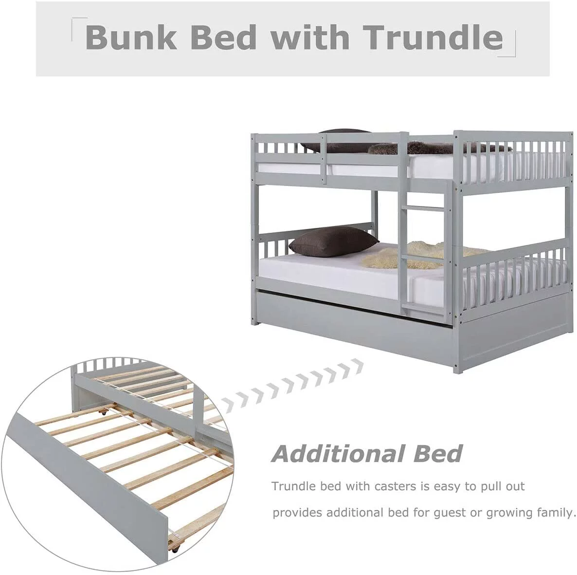 YJTONWIN Full Over Twin & Twin Bunk Bed Wood Triple with Drawers Gray