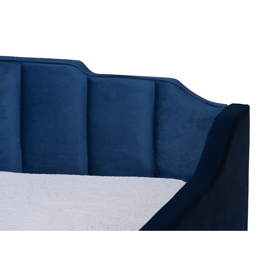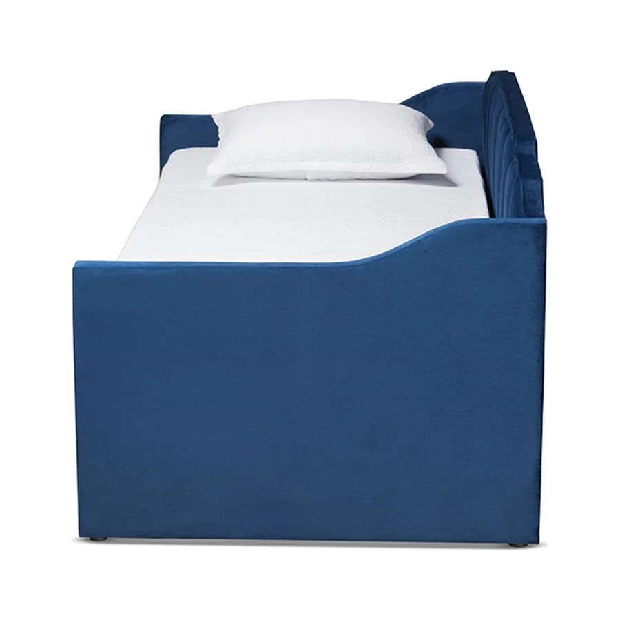 Baxton Studio Lennon Modern and Contemporary Navy Blue Velvet Fabric Upholstered Twin Size Daybed with Trundle