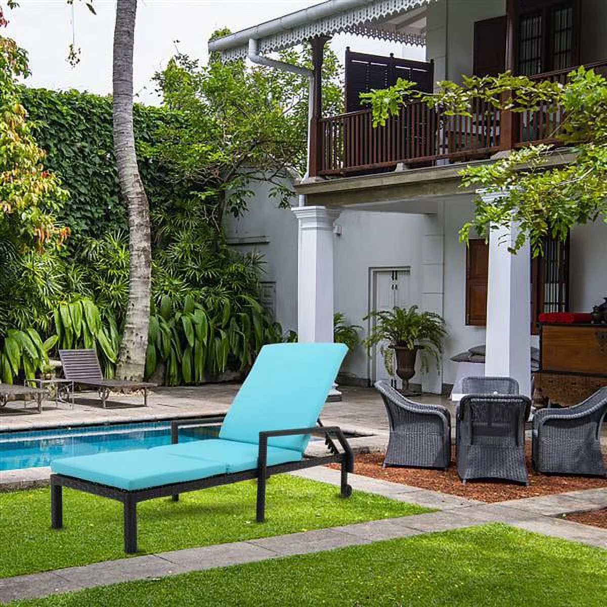 Height Adjustable Rattan Bed with Black Iron Fram and Wheels, Light Weight, Portable Bed, Blue