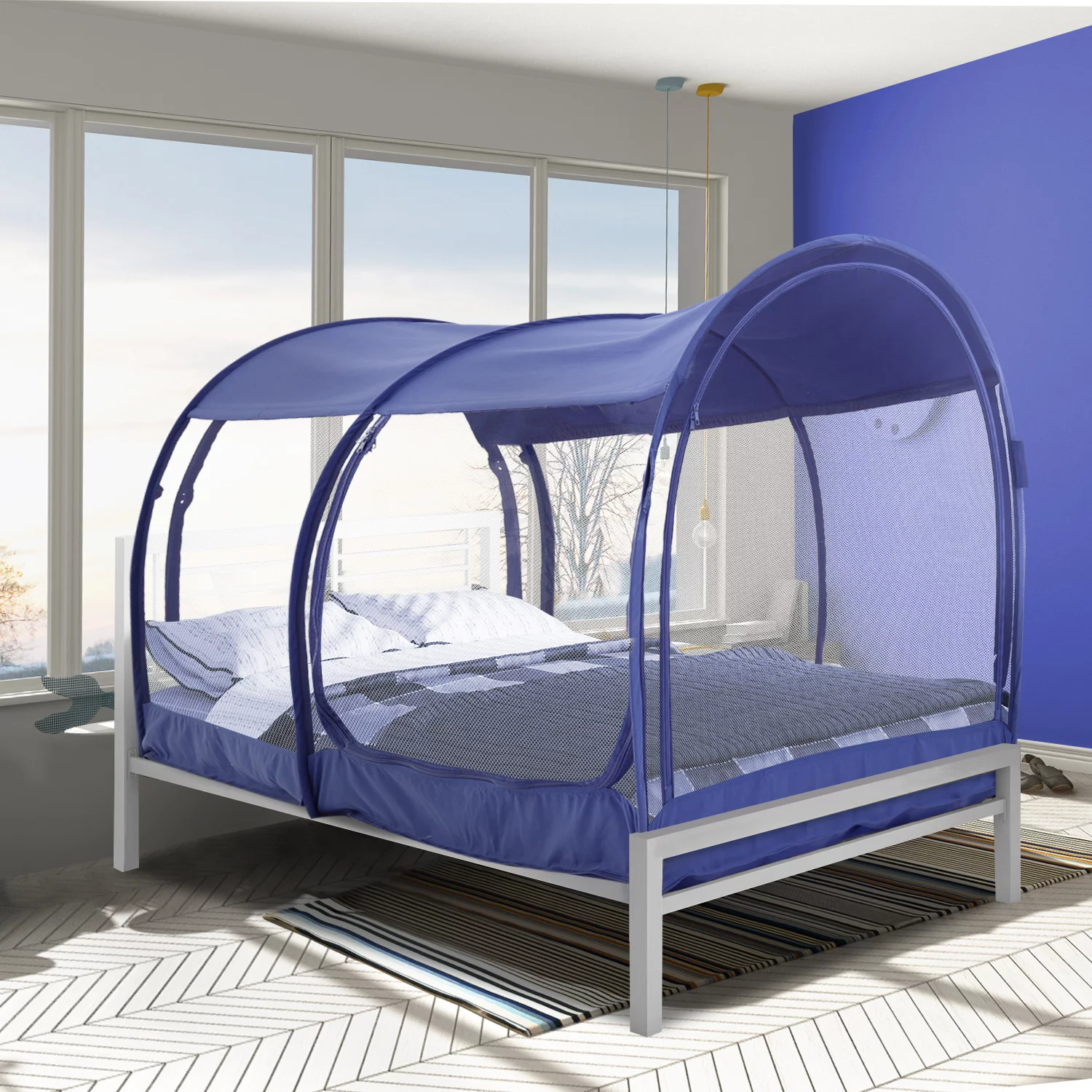 Alvantor Bed Tent Pop up Mosquito Net Sleeping Canopy Twin Size Navy Unisex