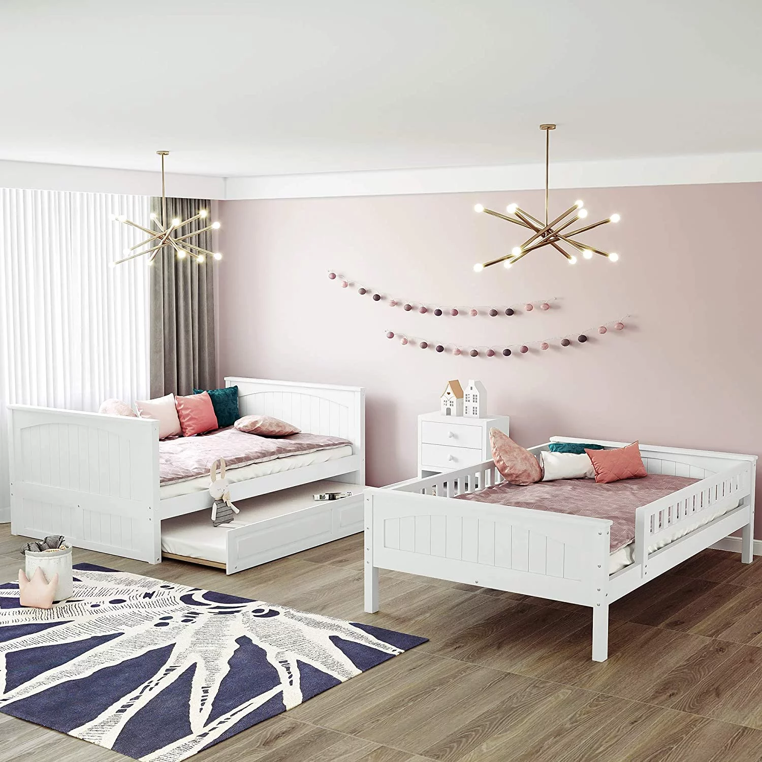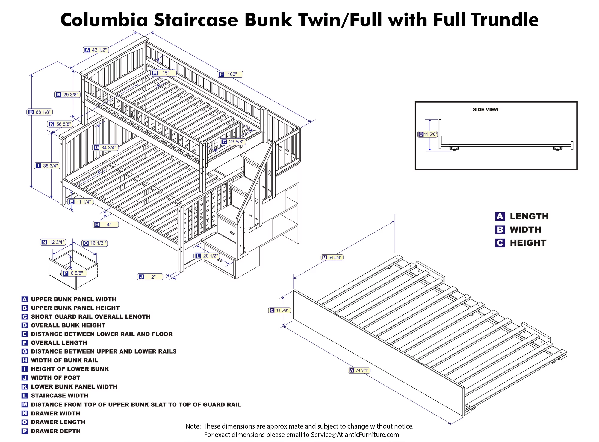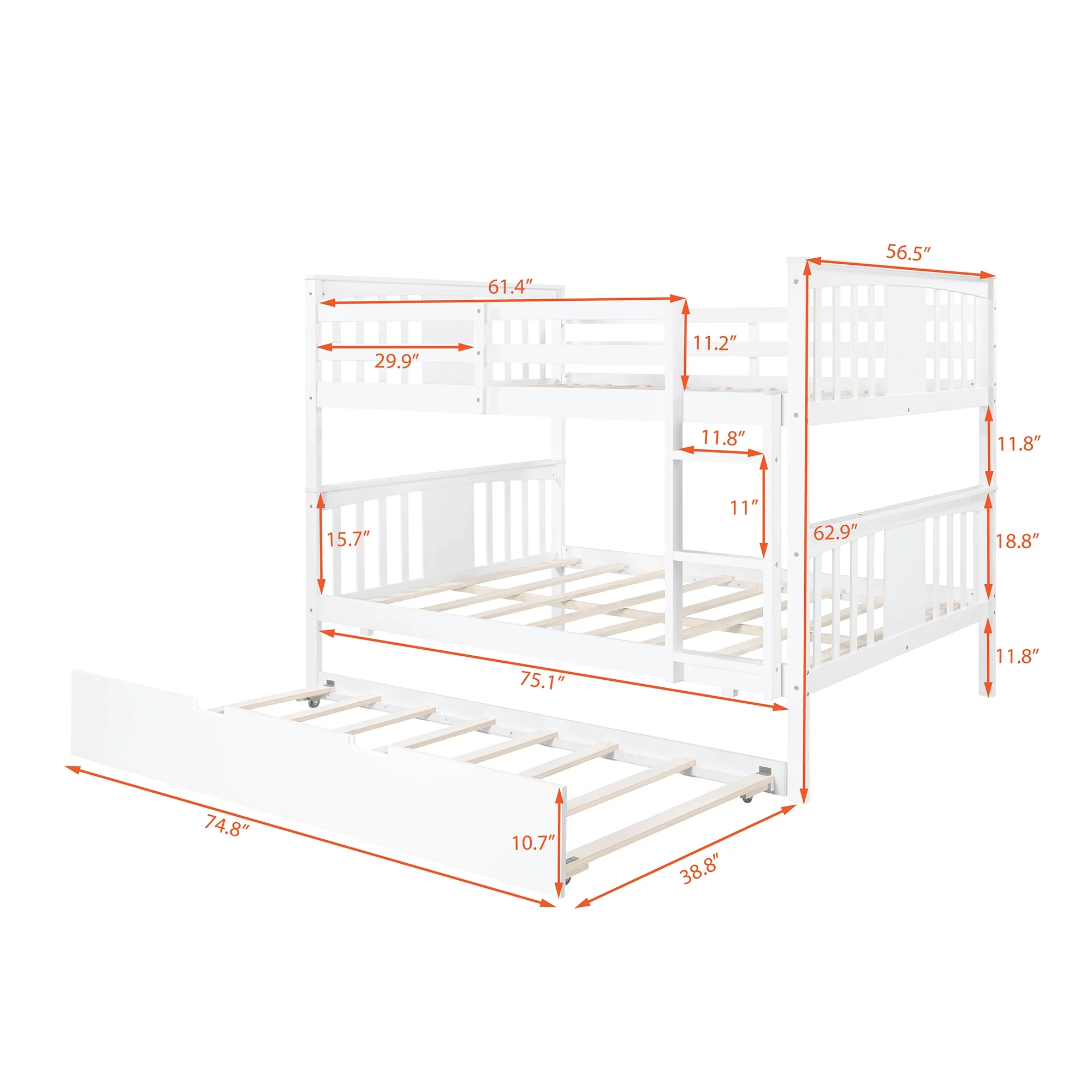 Twin over Full Bunk Bed with Twin Size Trundle and Storage Staircase