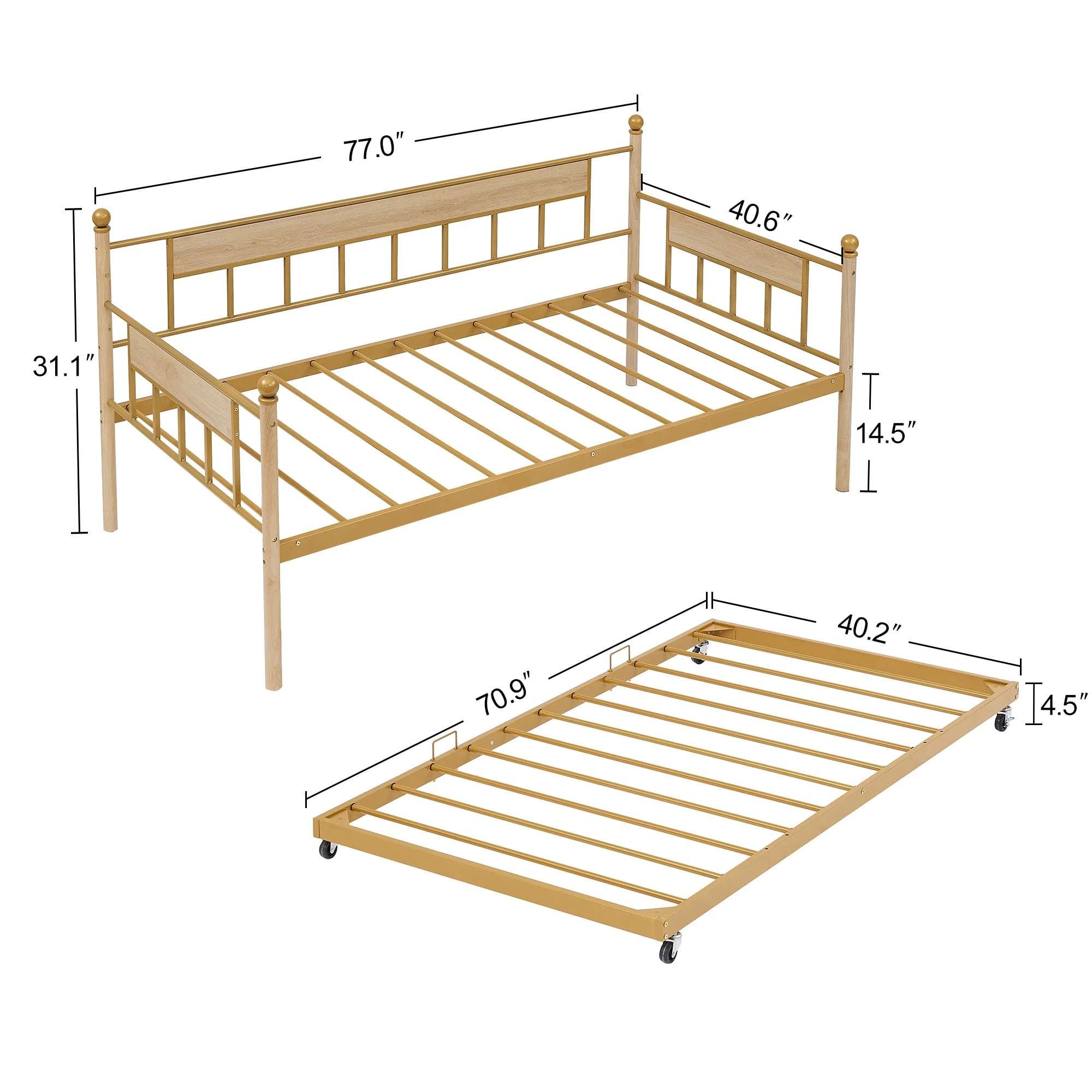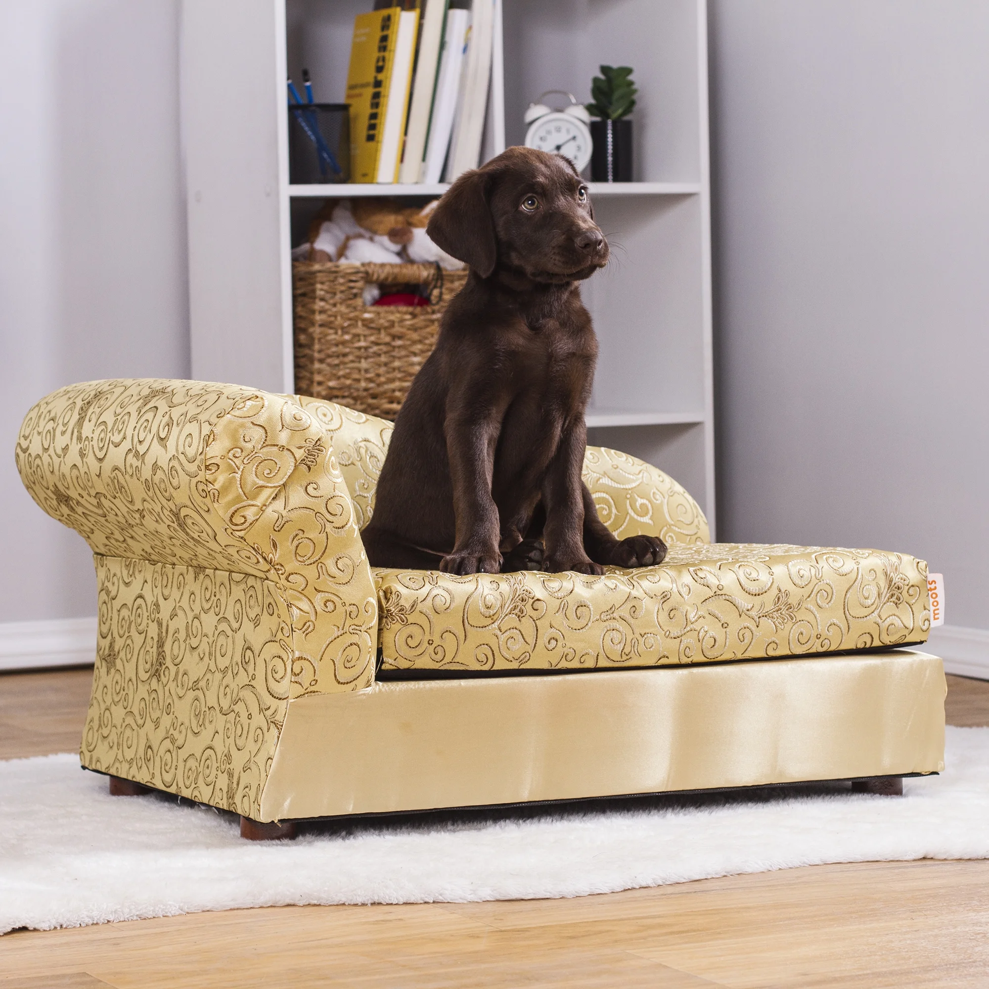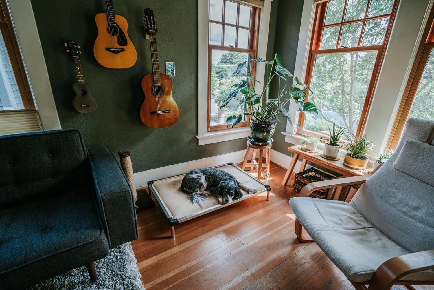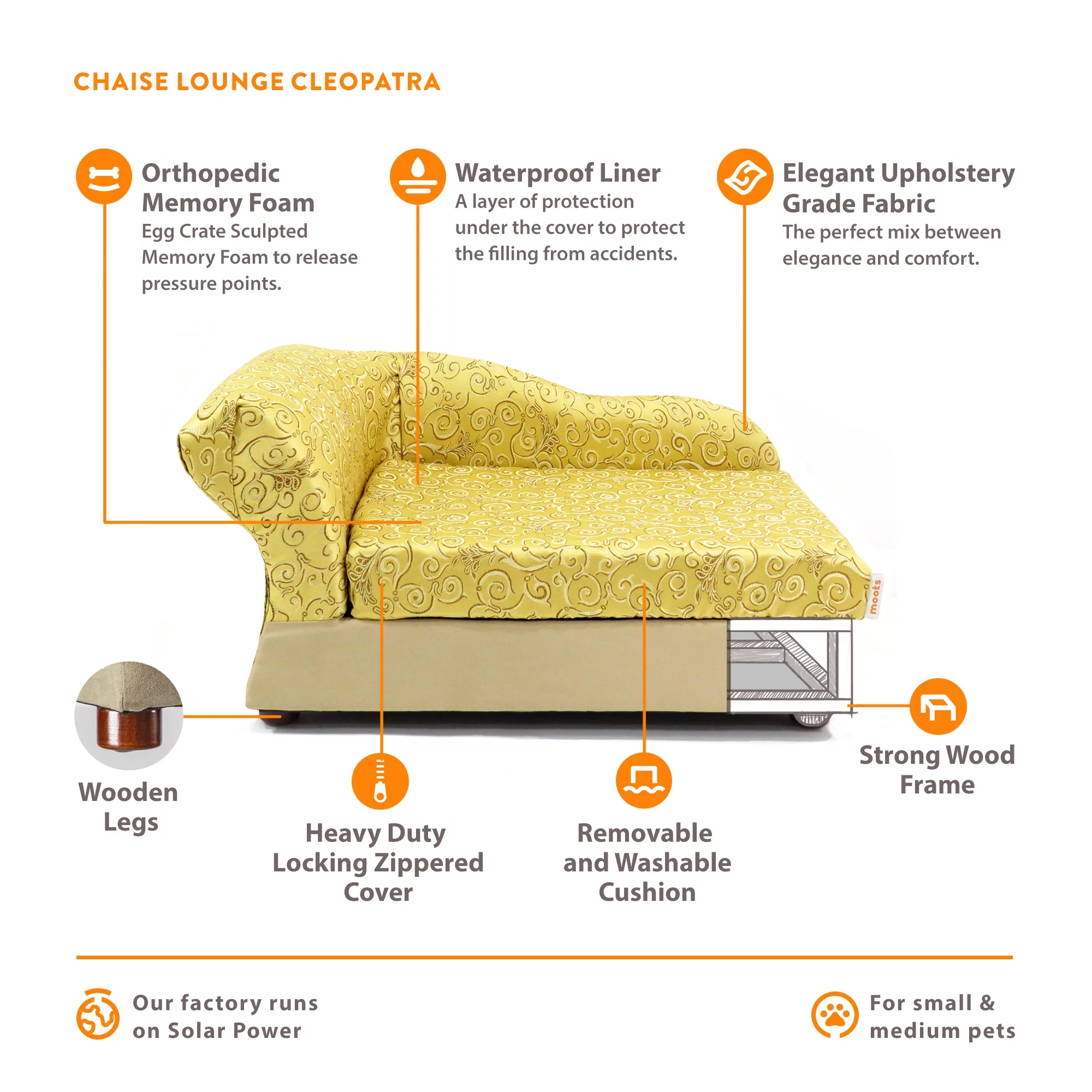 36 Inch Pet Bed Frame Natural Brown Wood Removable Cover Gray Upholstery