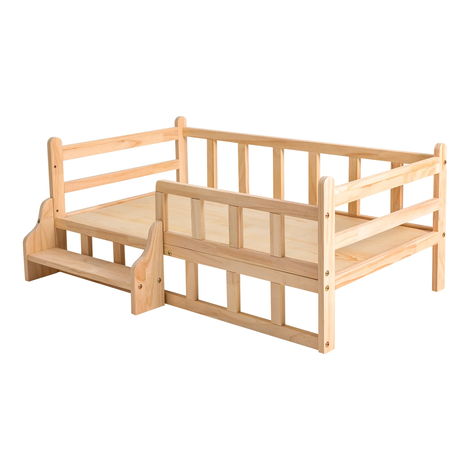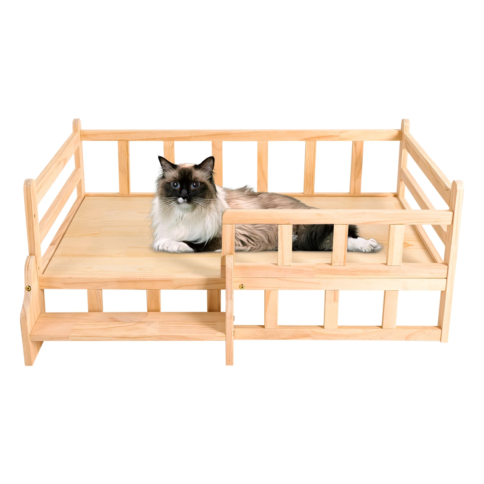 96*56cm Solid Pine Wood Pet Bed Frame Elevated Fence Dog Cat Wooden Bed Large