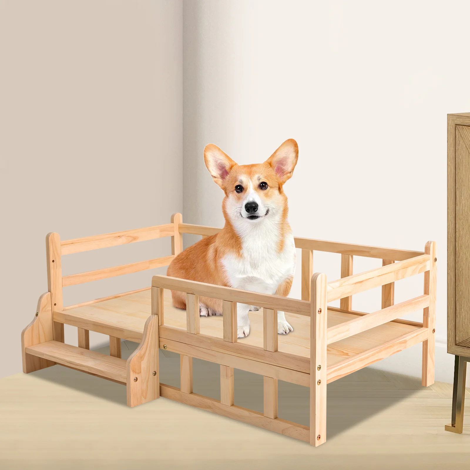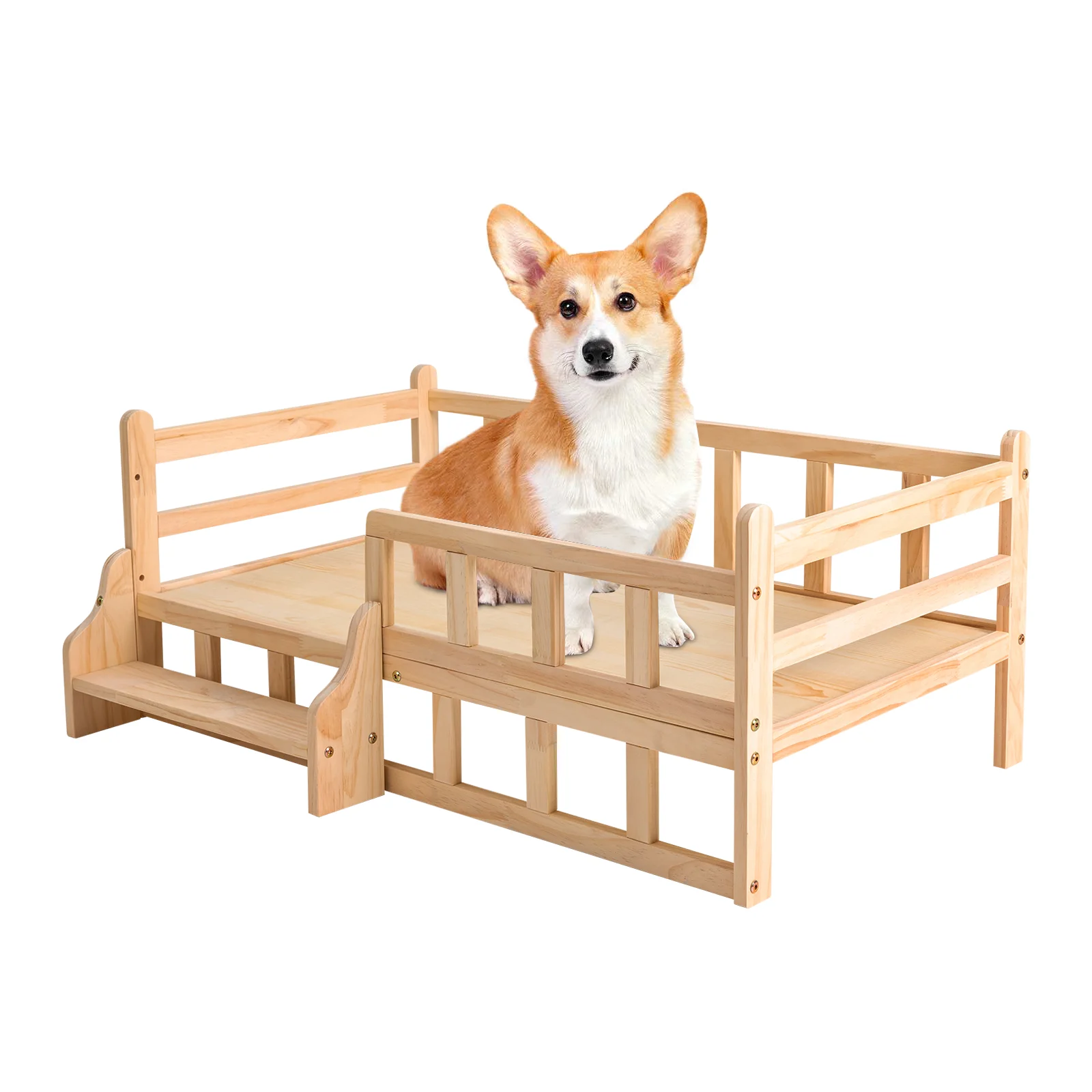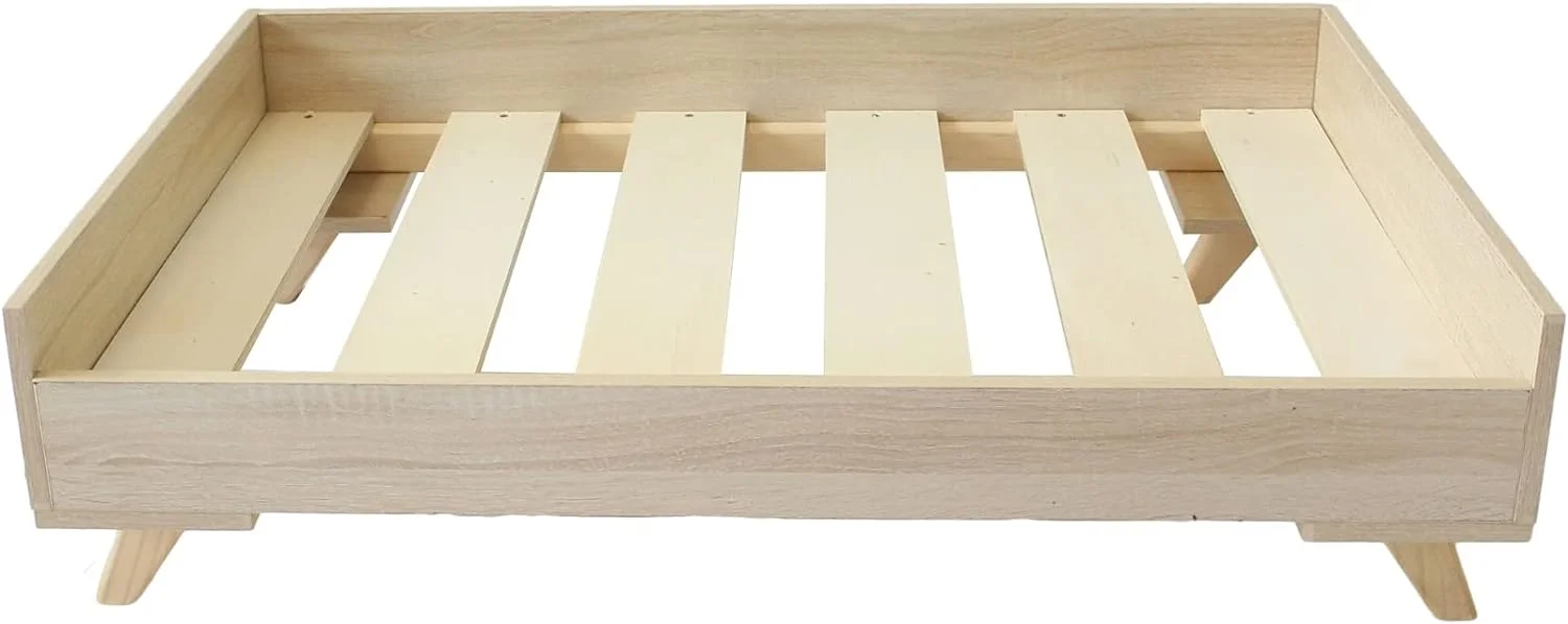 96*56cm Solid Pine Wood Dog Bed Frame Elevated Dog Cat Bed Wood Pet Bed