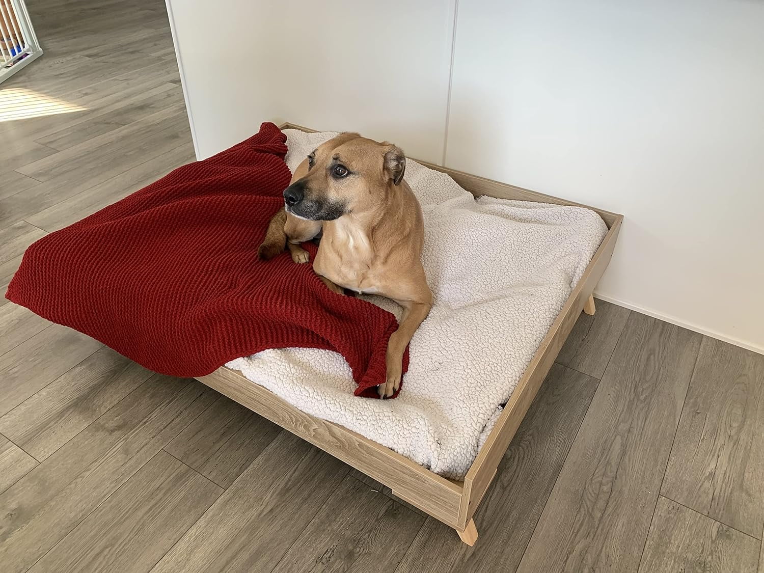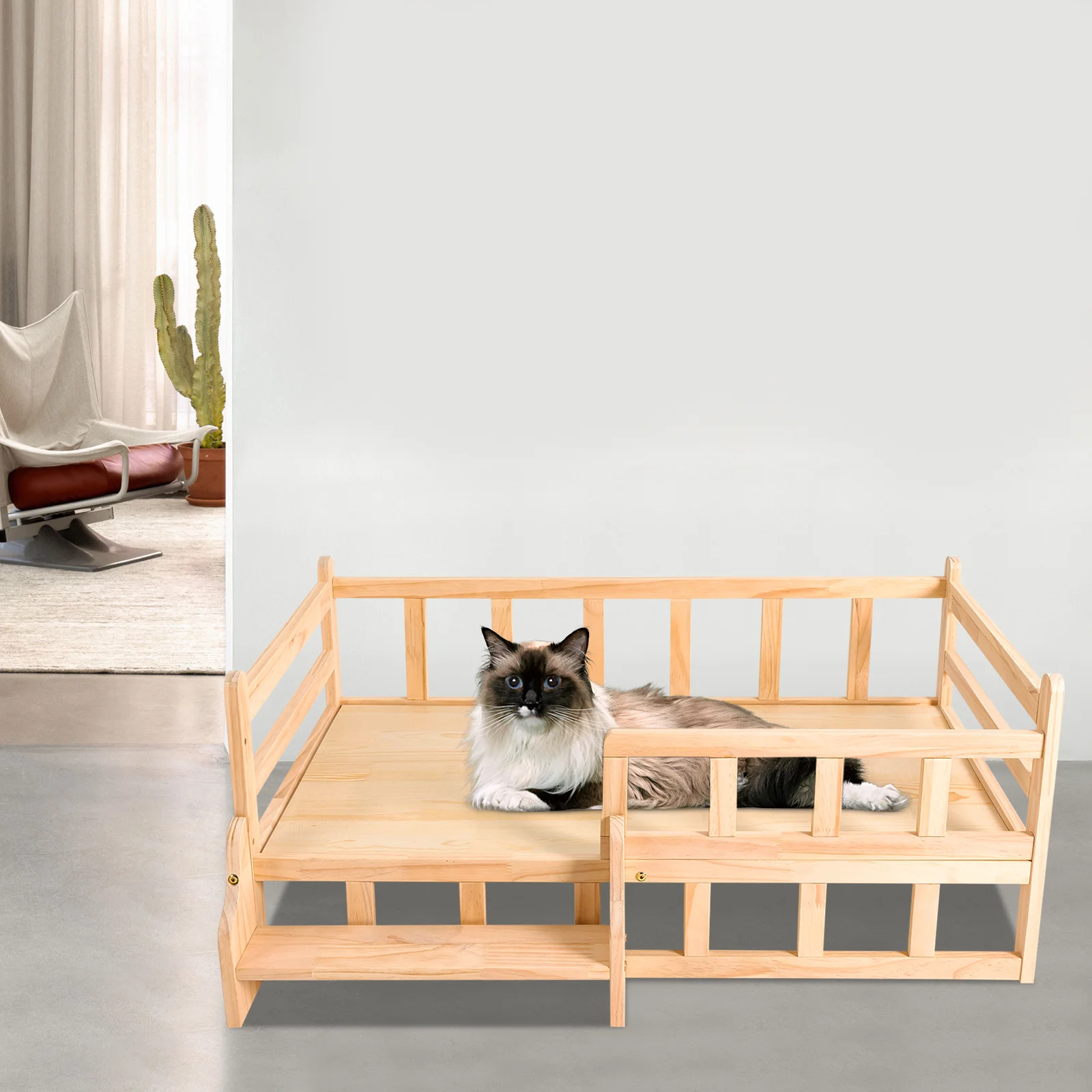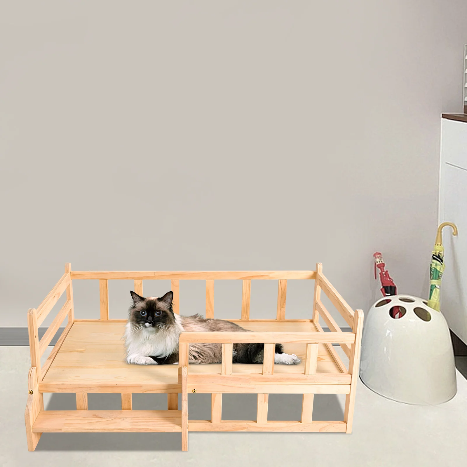 96*56cm Solid Pine Wood Dog Bed Frame Elevated Dog Cat Bed Wood Pet Bed