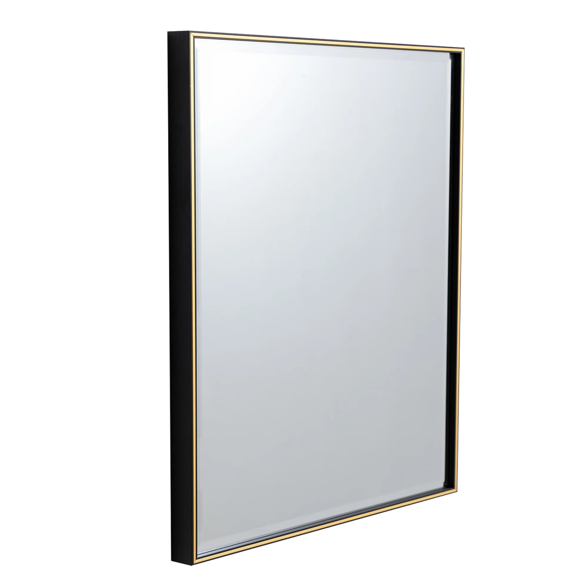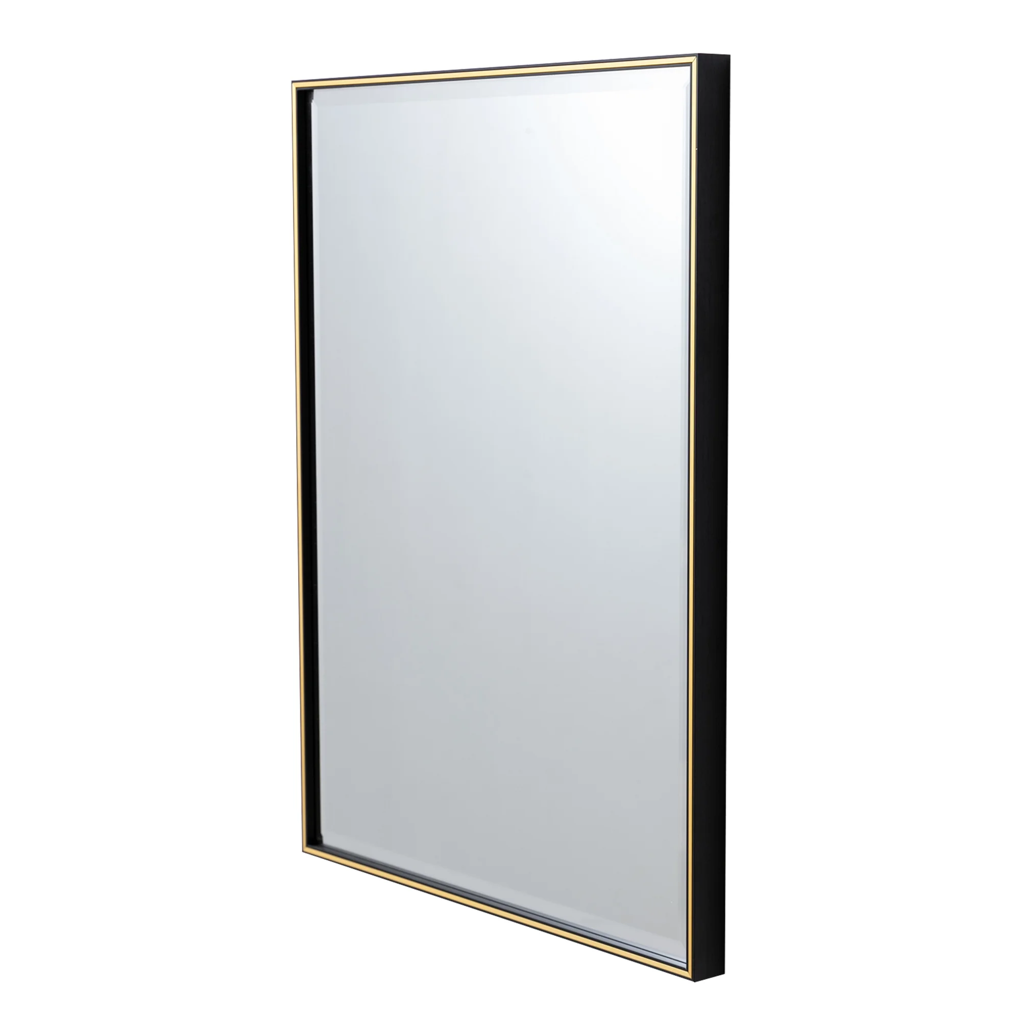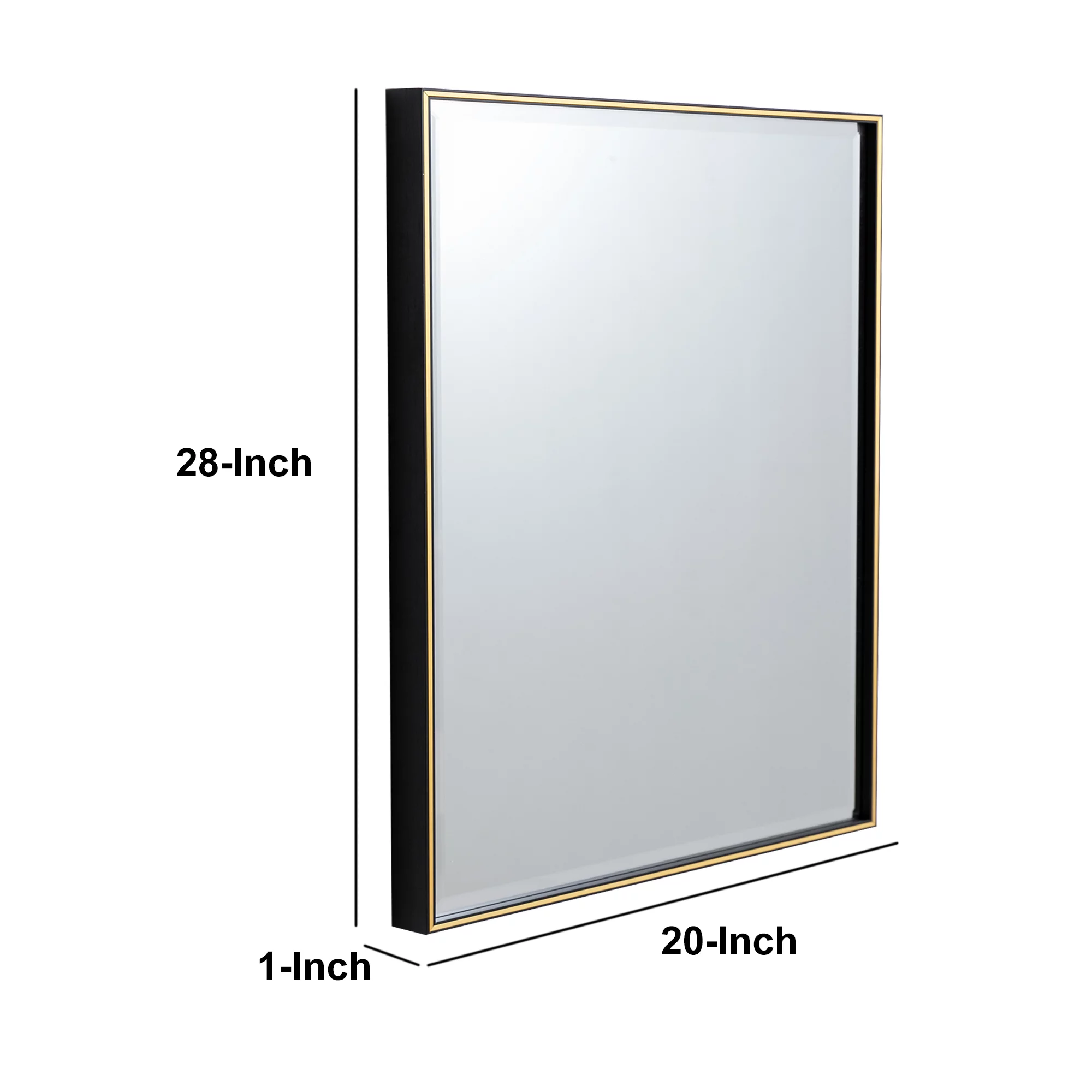 28 Inch Beveled Metal Frame Rectangular Wall Mirror, Black, Gold Accent