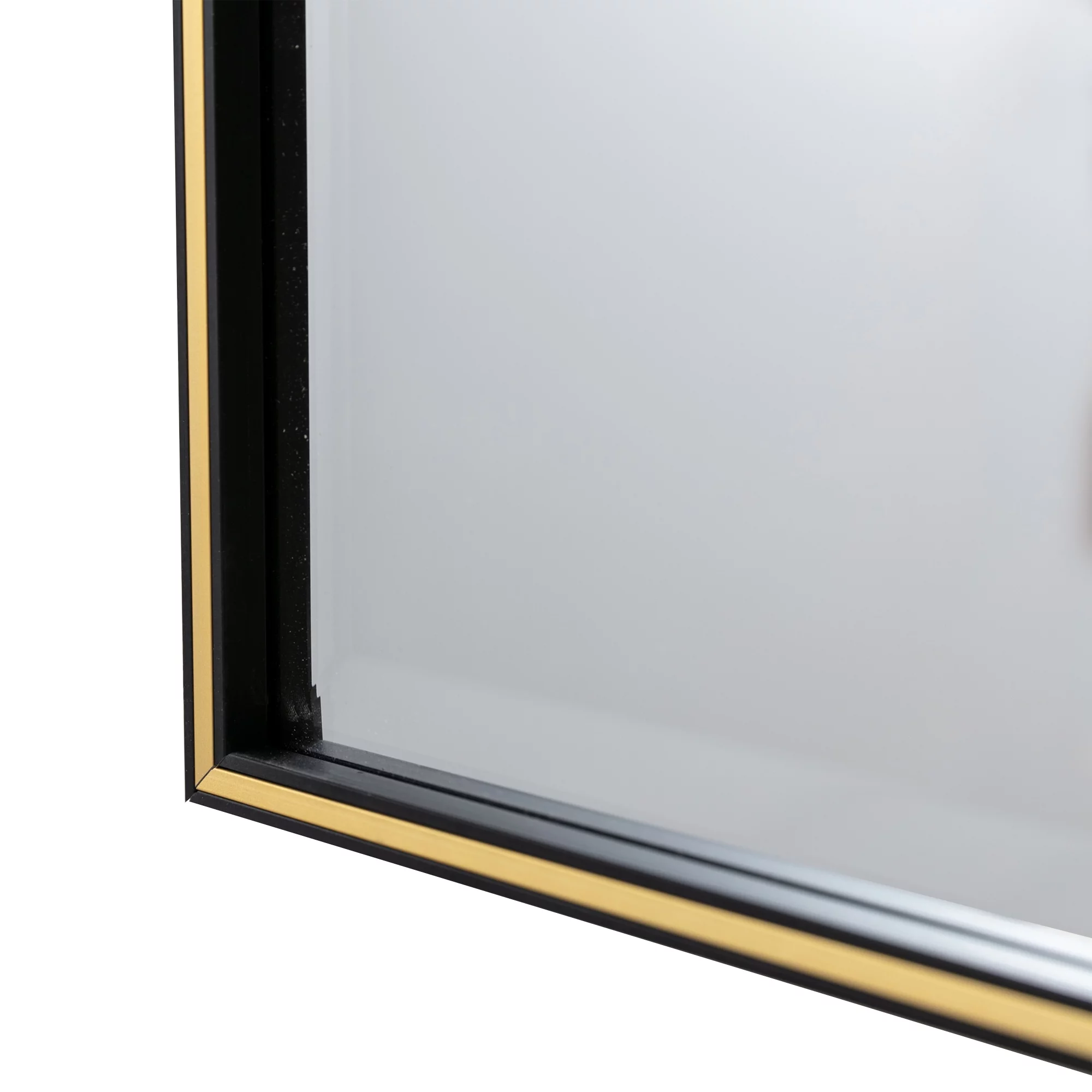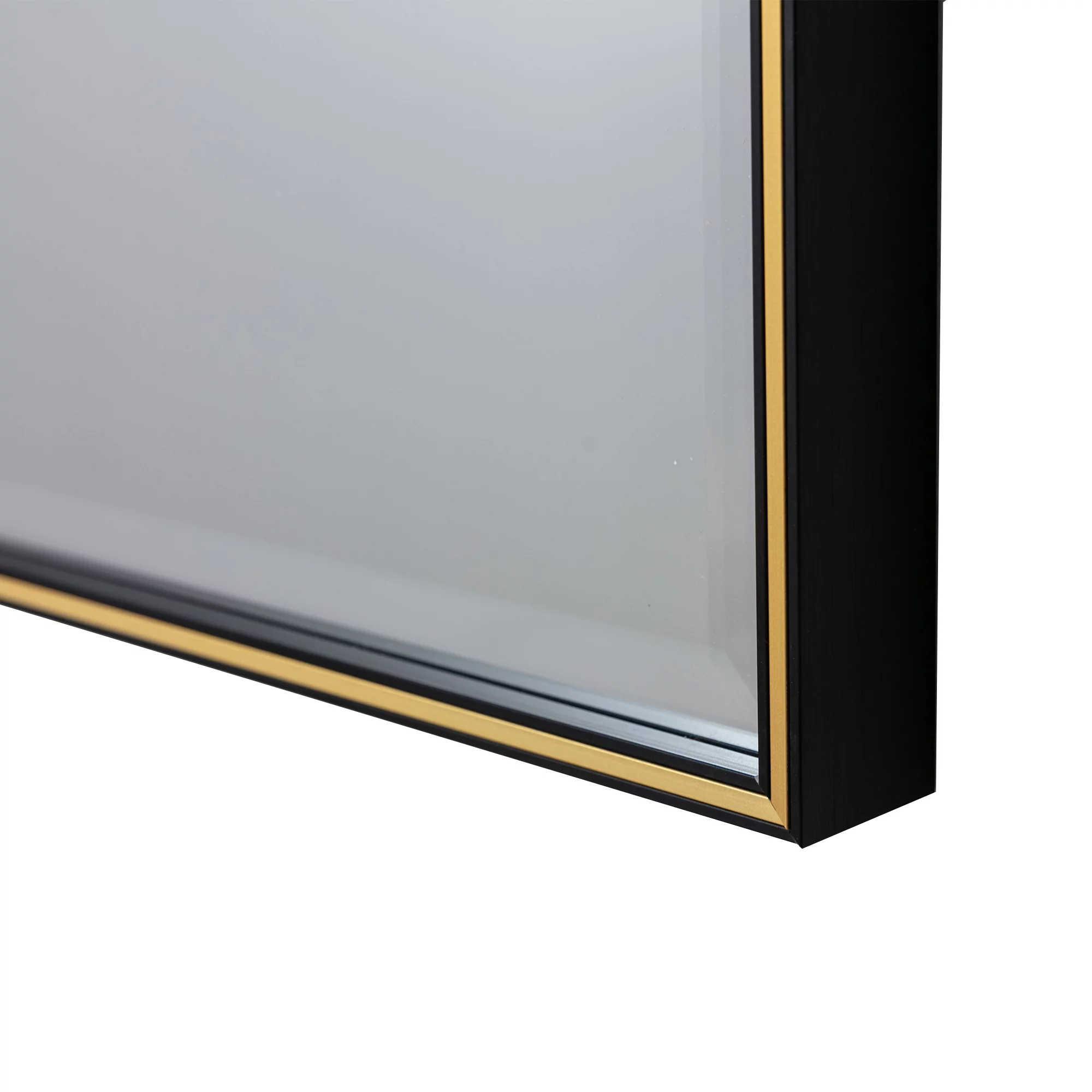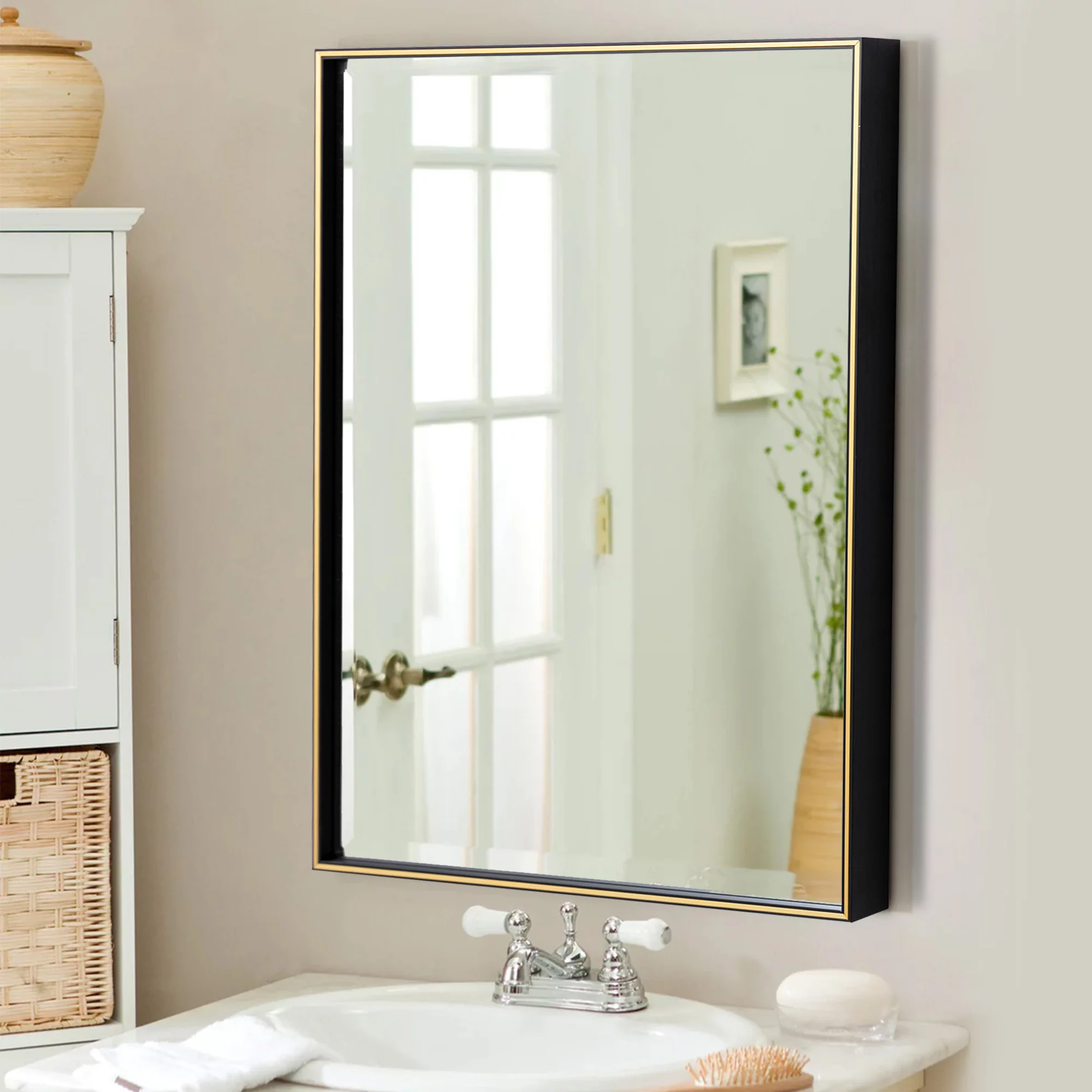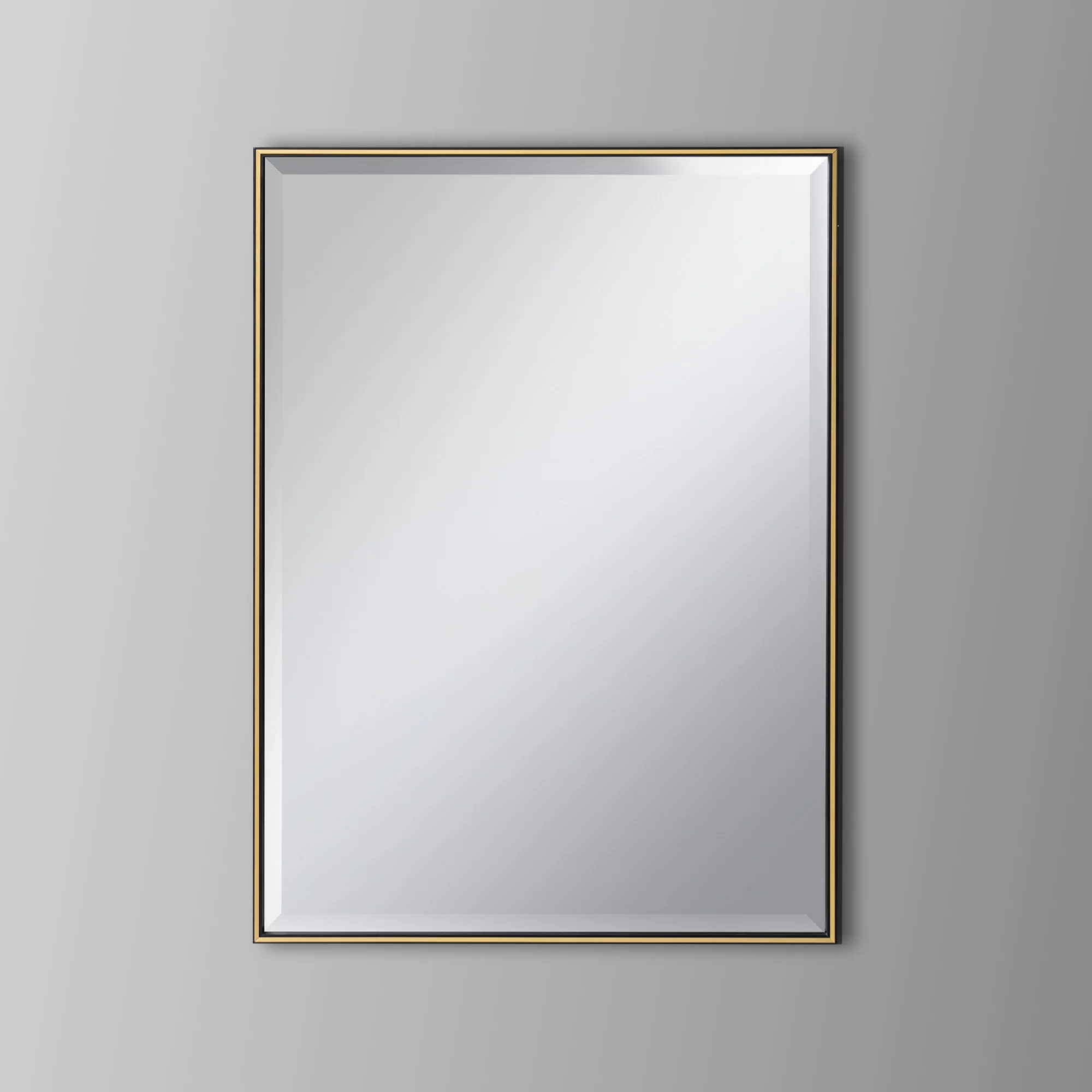 28 Inch Beveled Metal Frame Rectangular Wall Mirror, Black, Gold Accent