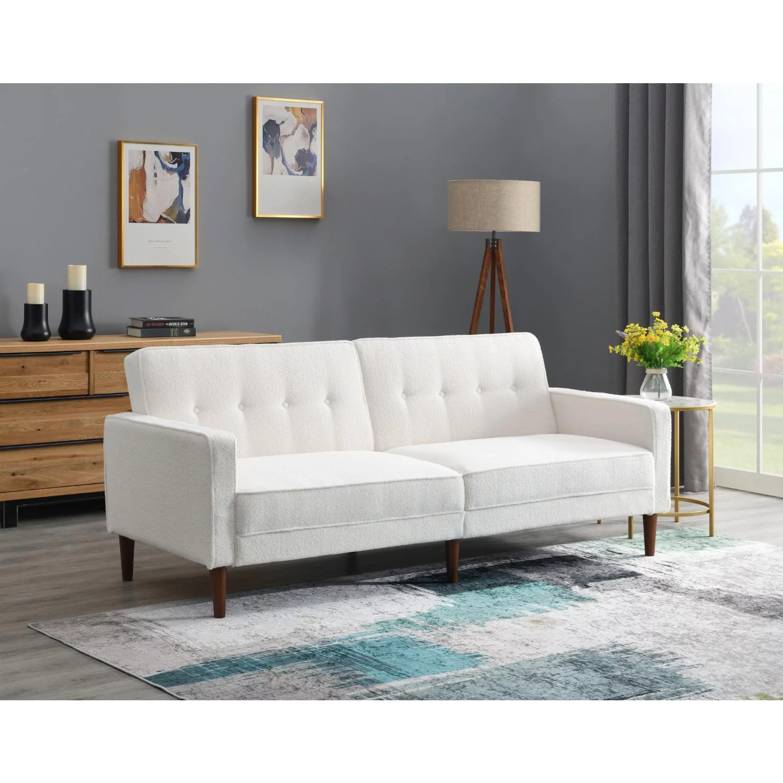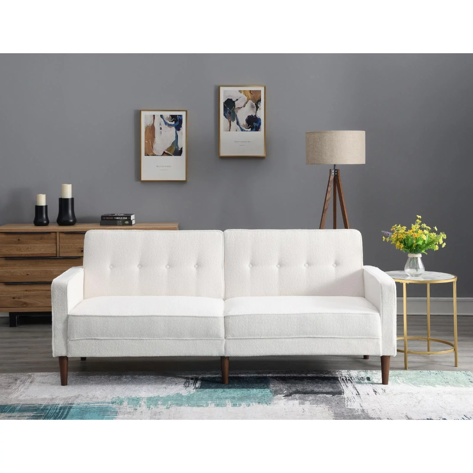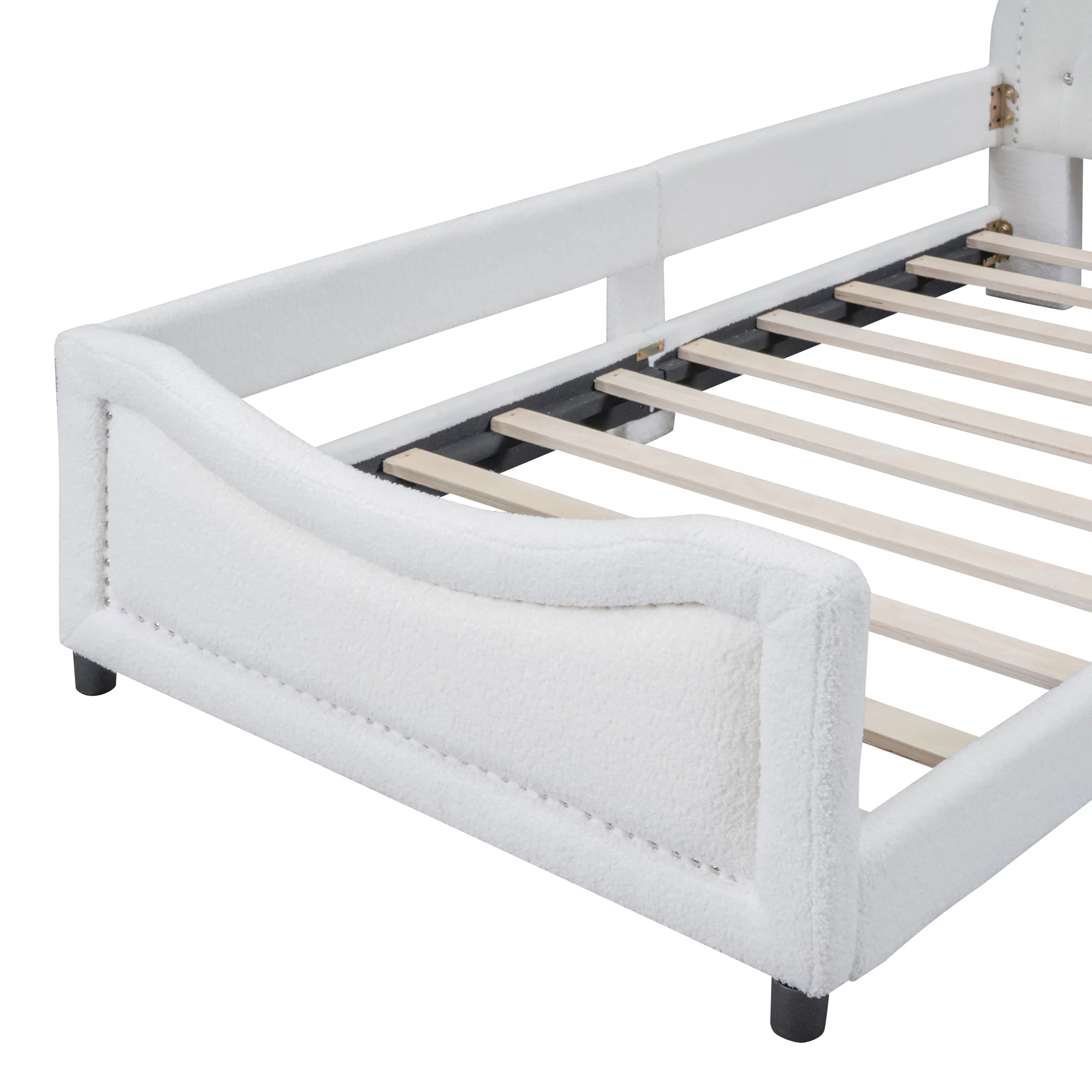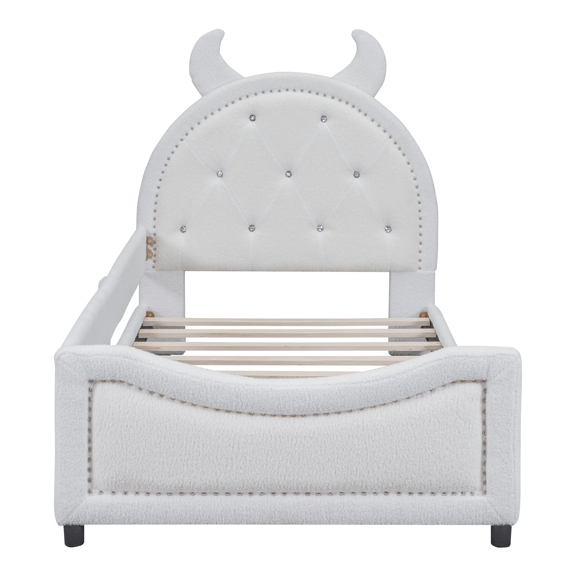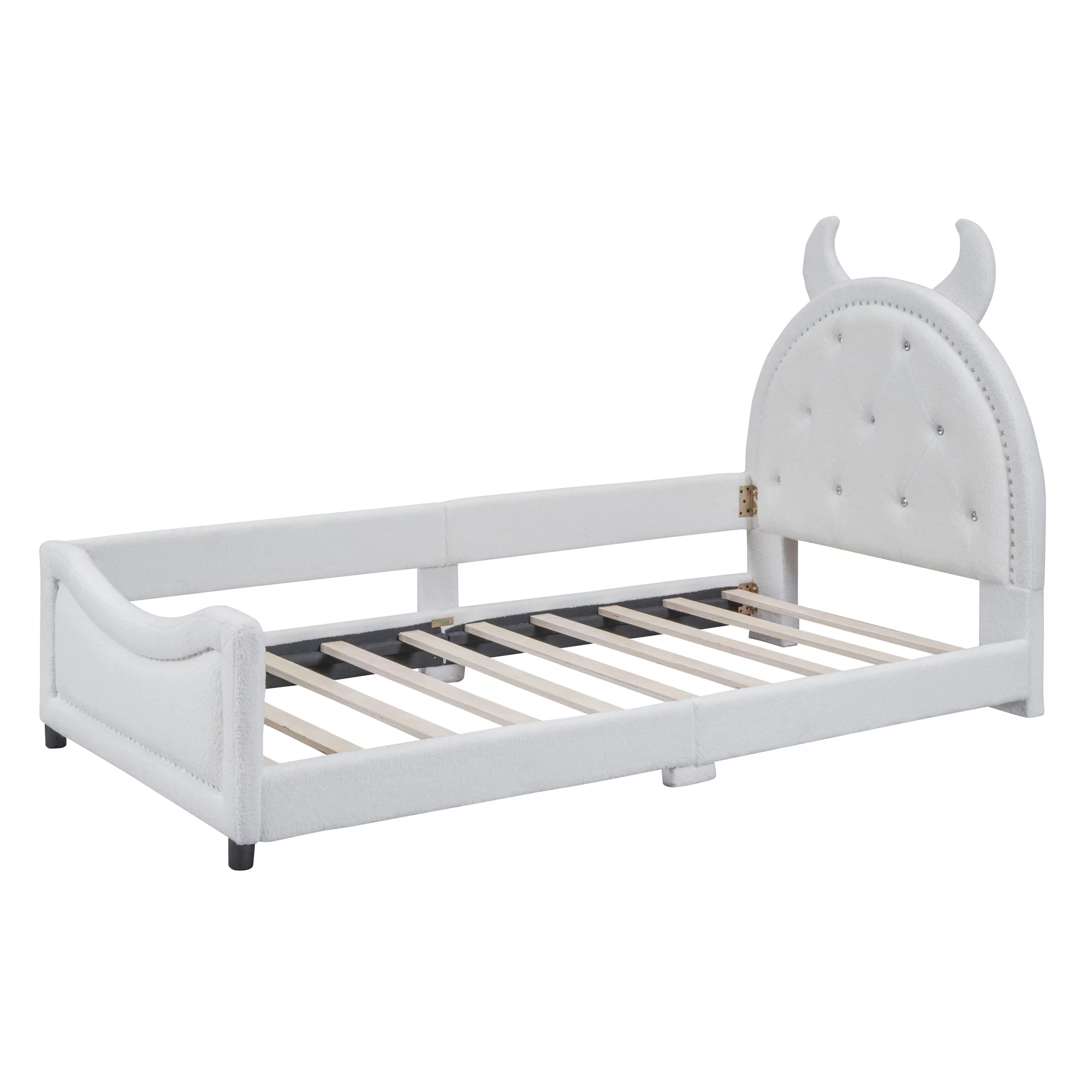 Churanty Teddy Fleece Twin Size Upholstered Daybed with OX Horn Shaped Headboard, White