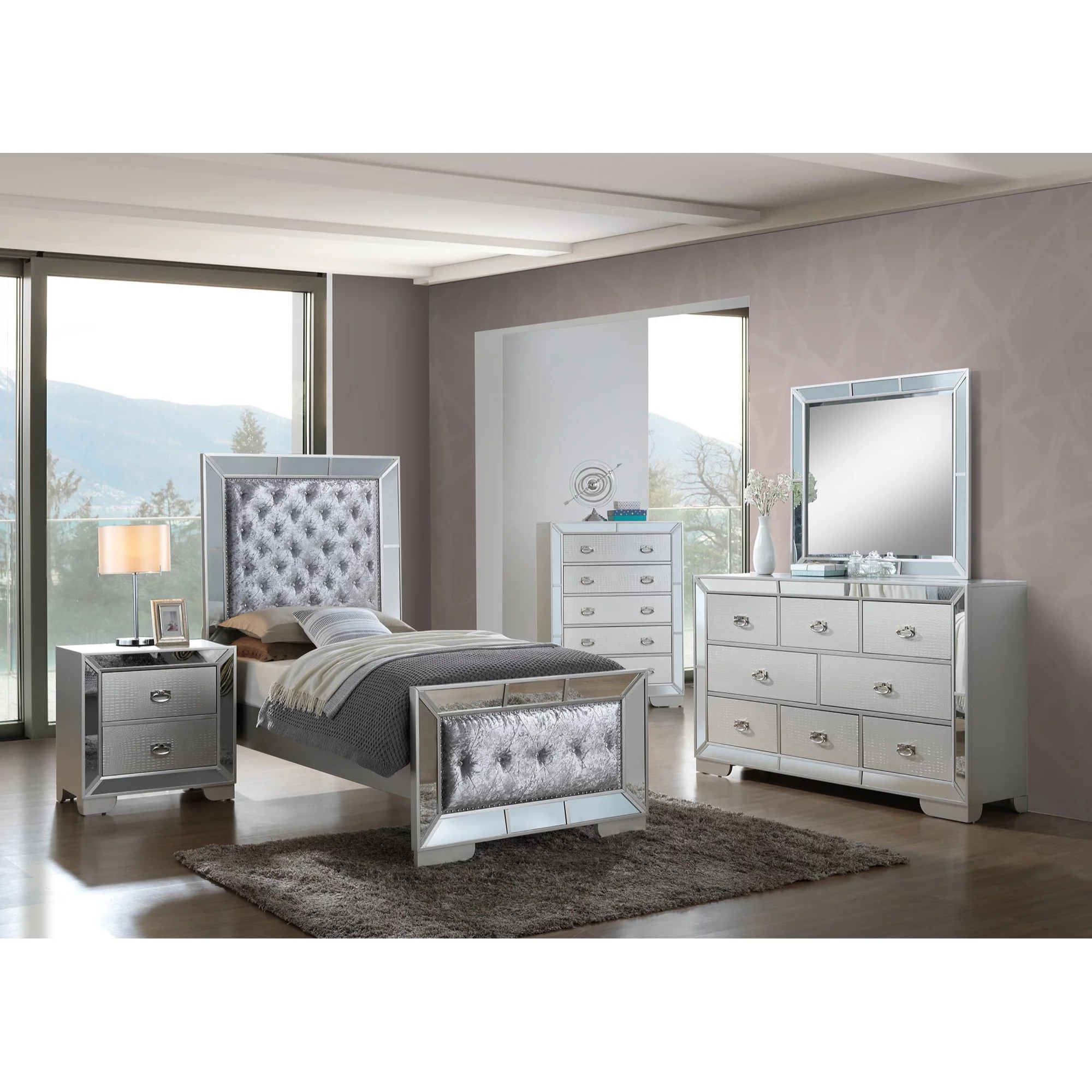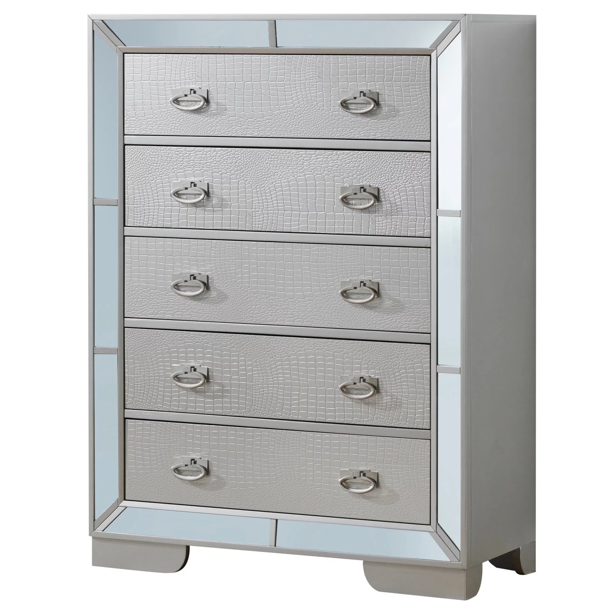 Passion Furniture Hollywood Hills Silver Champagne 5-Drawer Chest of Drawers - 32 x 21 x 58 in.